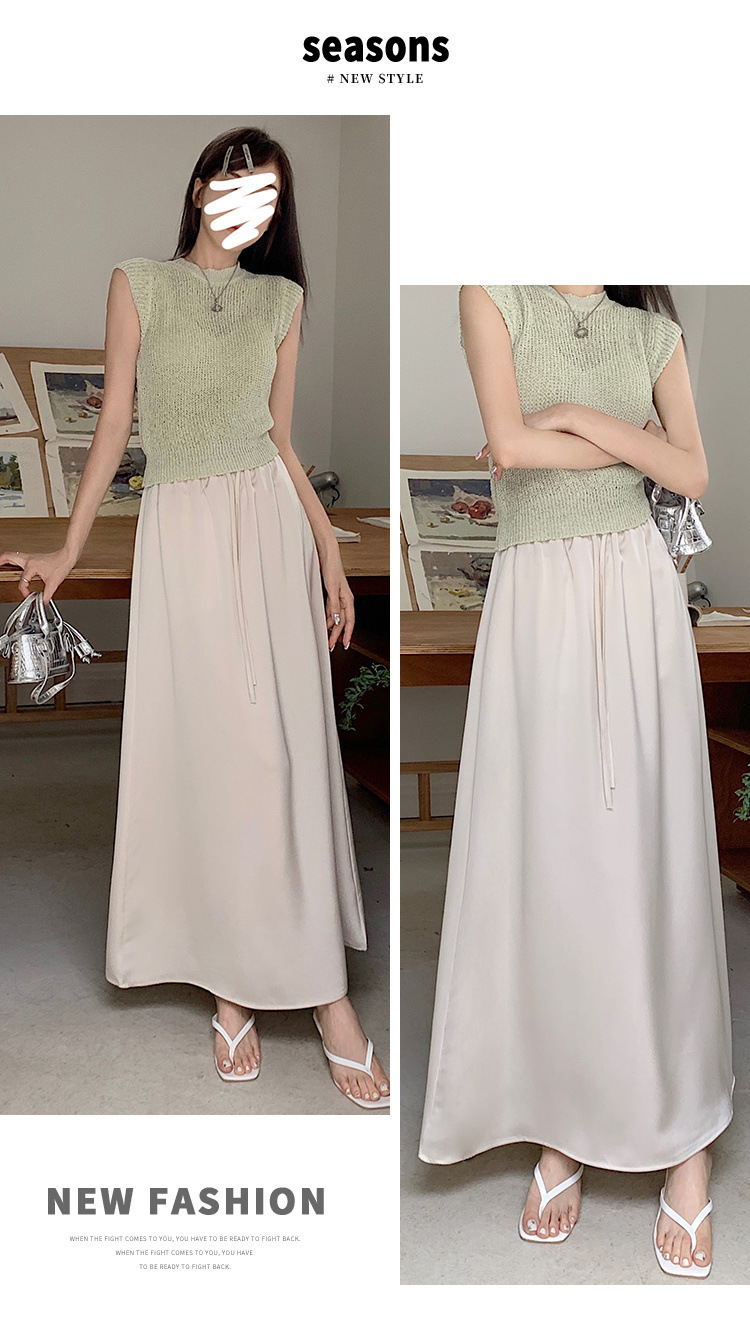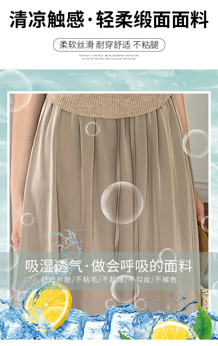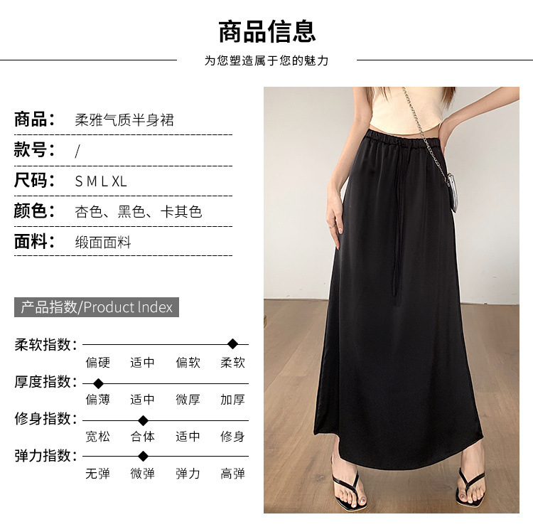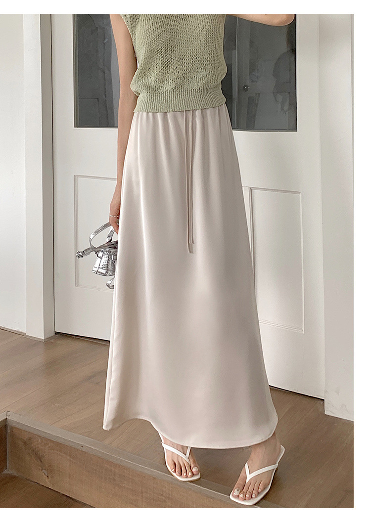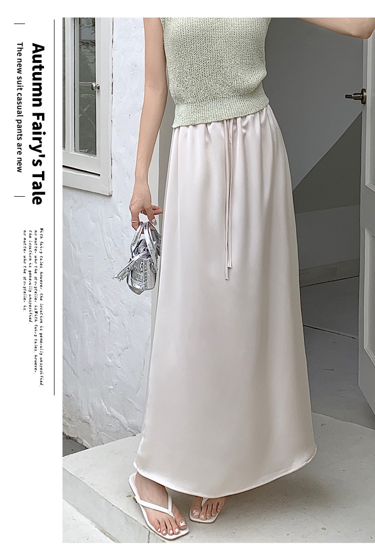 고급 Acetic Acid Satin 치마 여성 여름 중간 길이의 높은 허리 슬리밍 교수형 스타일 우아한 대형 치마스토어 가기