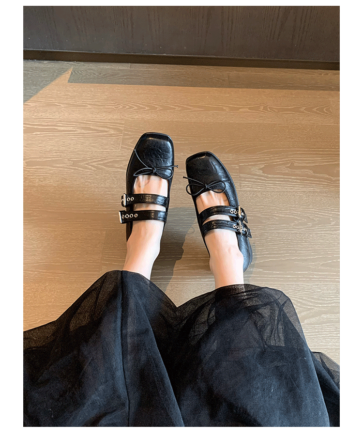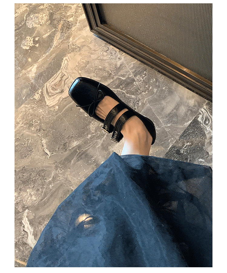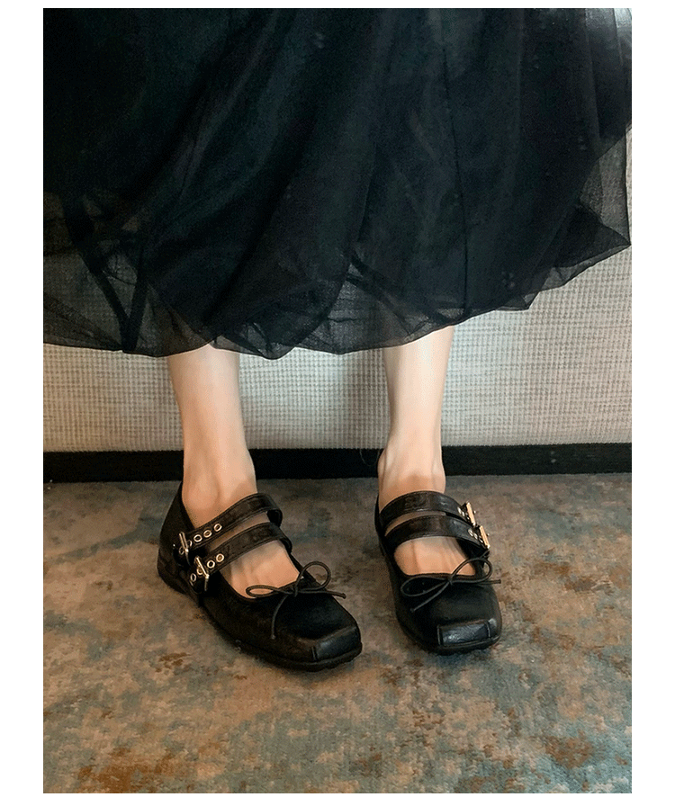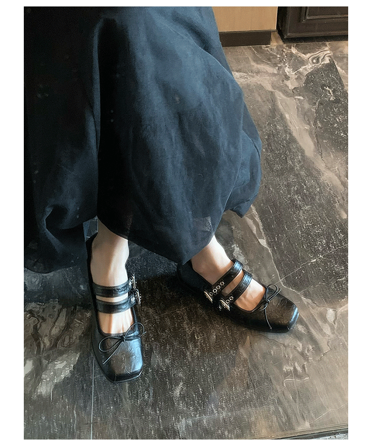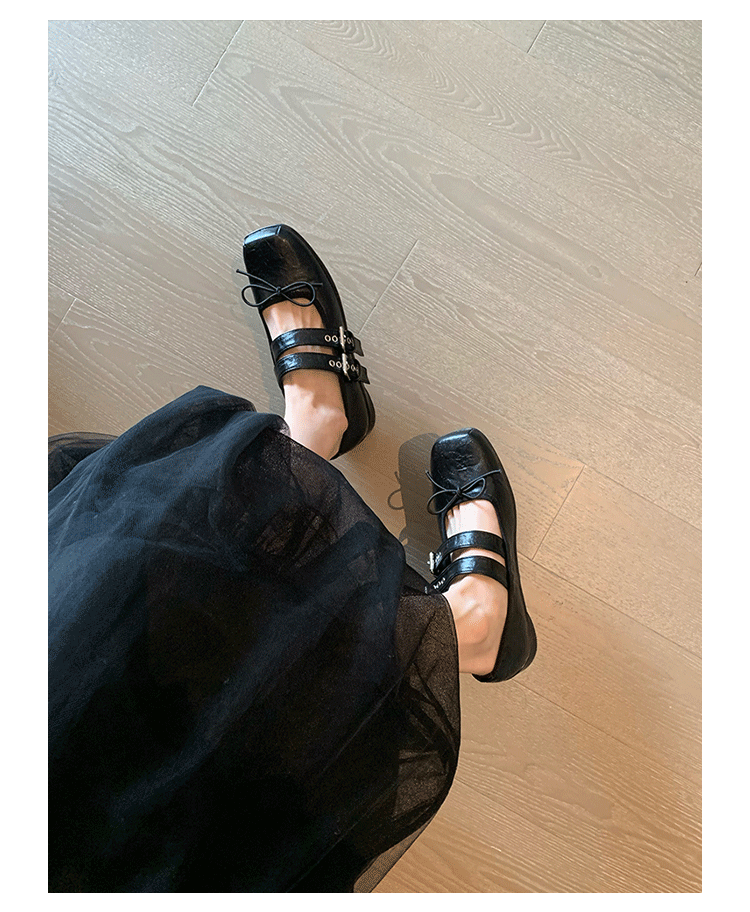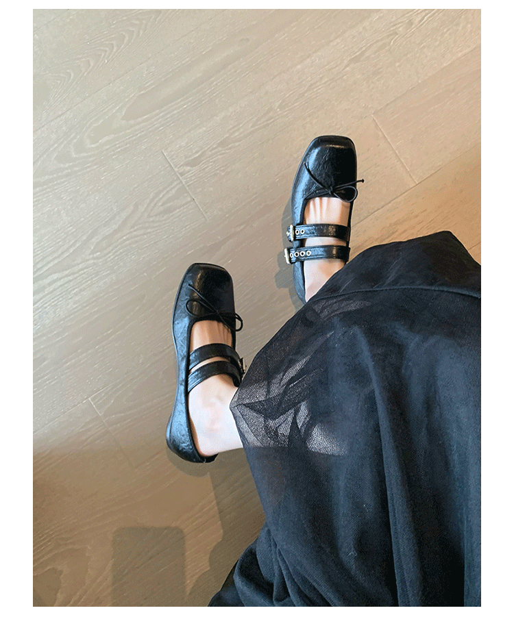 여성 버클 메리 제인 신발 2025 봄과 가을 새로운 활 스퀘어 헤드 플랫 바닥 얕은 입 신발 Jk 작은 가죽 신발스토어 가기