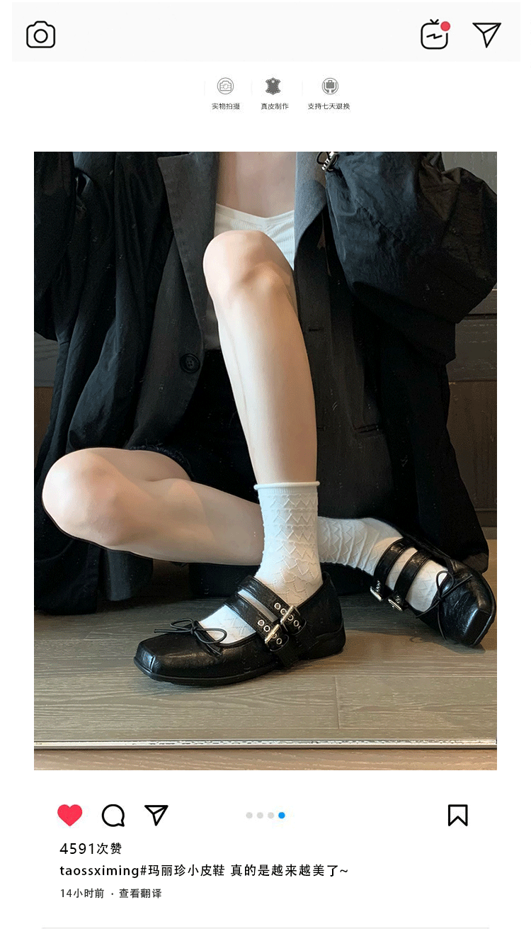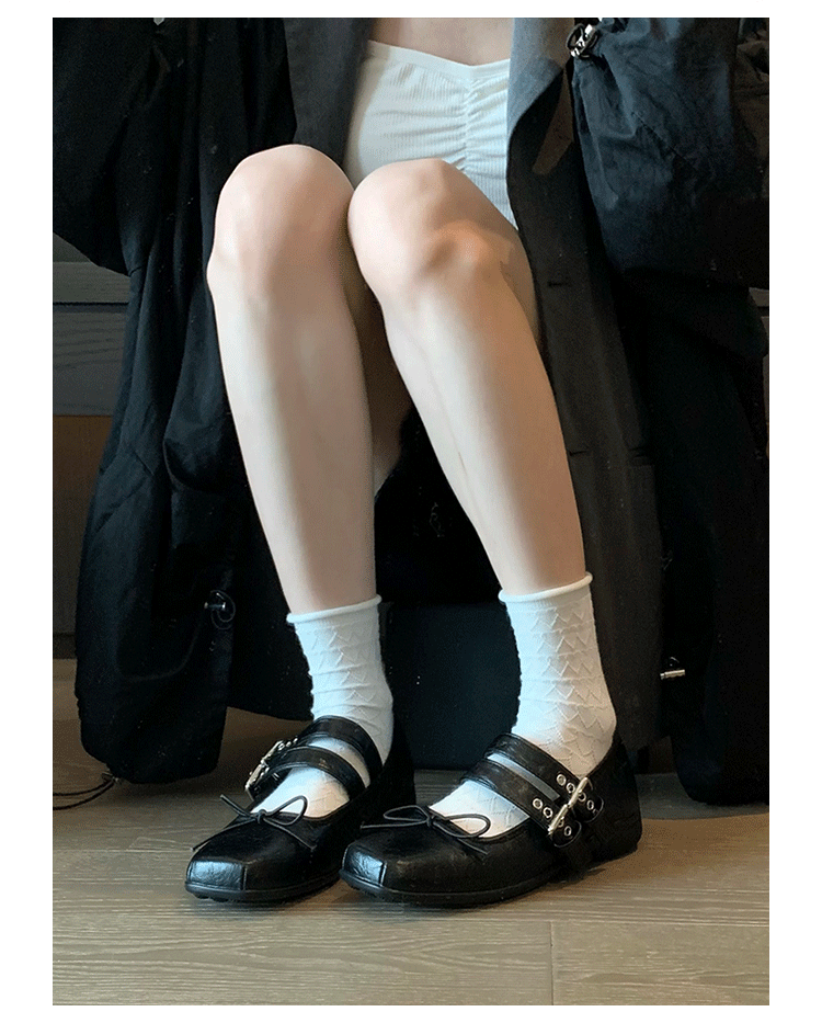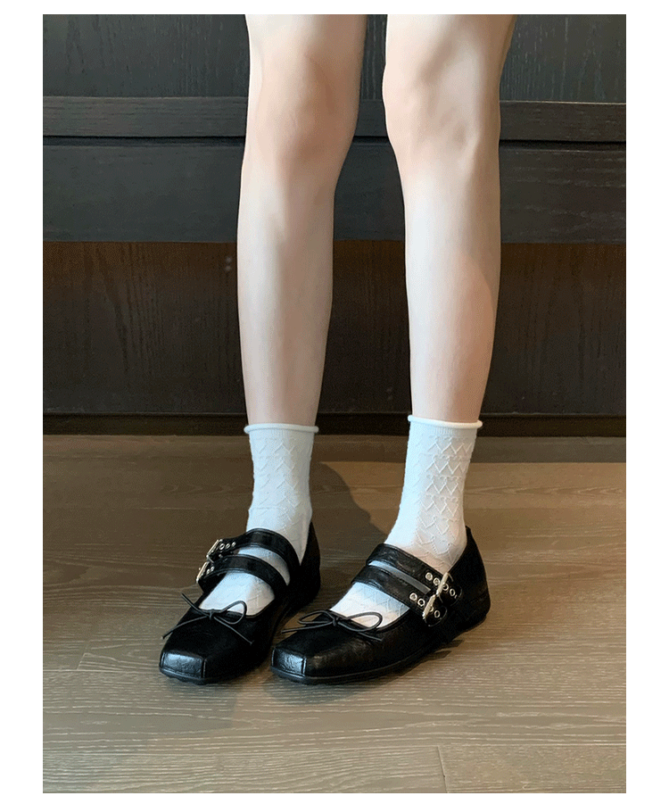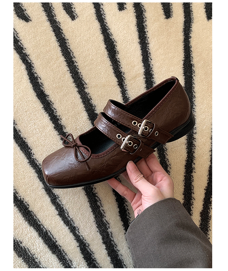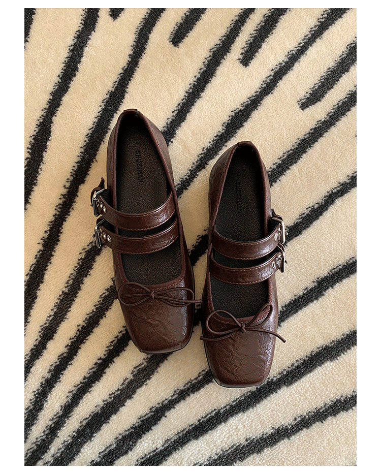 여성 버클 메리 제인 신발 2025 봄과 가을 새로운 활 스퀘어 헤드 플랫 바닥 얕은 입 신발 Jk 작은 가죽 신발스토어 가기