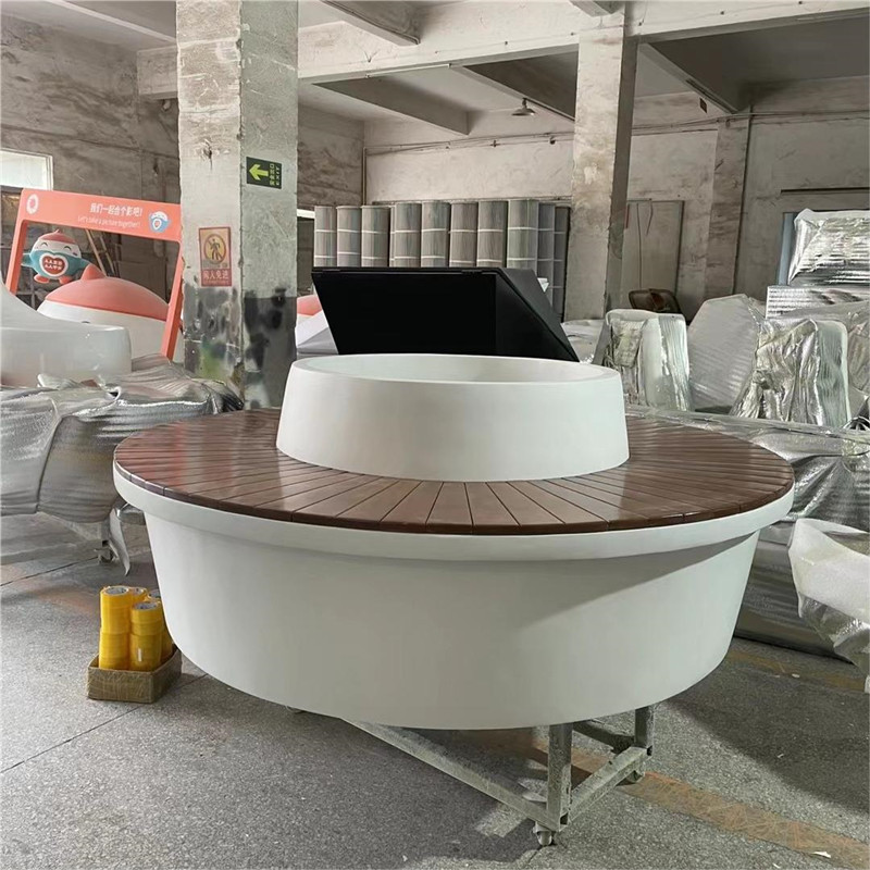 유리 섬유 강화 플라스틱 레저 의자 단단한 나무 의자 야외 부식 방지 나무 조합 꽃 냄비 좌석 쇼핑몰이 창조적 인 모양의 의자를 기다리고 있습니다.스토어 가기