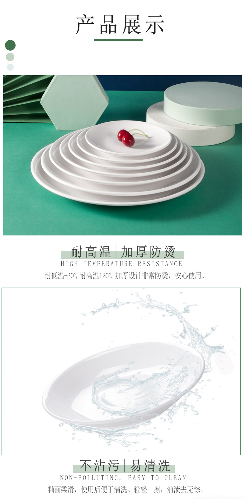 하오이라이 멜라민 접시 흰색 상업용 인조 도자기 식기 뷔페 접시 원형 평평한 접시 얕은 접시 플라스틱 원형 접시 도매