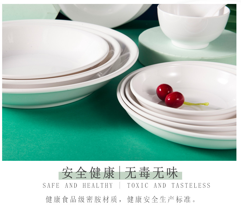 하오이라이 멜라민 접시 흰색 상업용 인조 도자기 식기 뷔페 접시 원형 평평한 접시 얕은 접시 플라스틱 원형 접시 도매스토어 가기