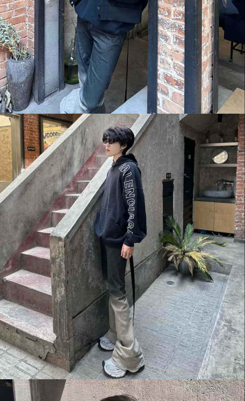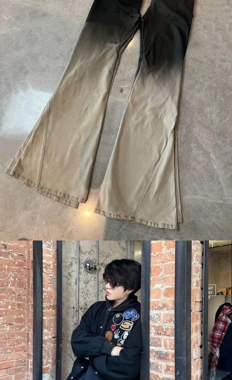 미국식 하이 스트리트 워시 그라디언트 스트림 마이크로 플레어 진 남성 올 매치 스택 레그는 긴 슬림 핏 스트레이트 팬츠를 보여줍니다.스토어 가기