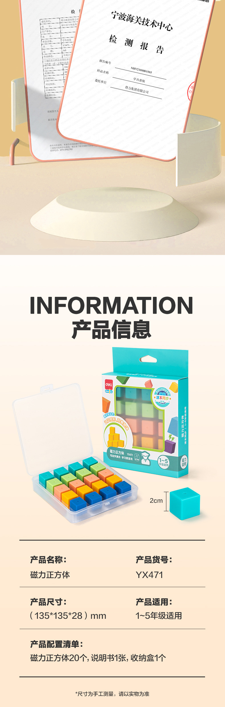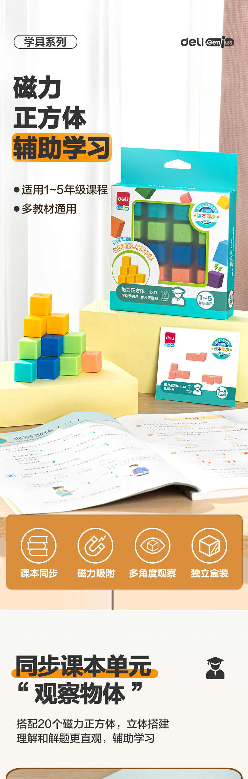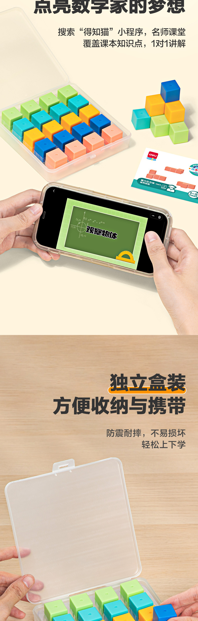 델리 YX471 자기 큐브 기하학 그래픽 자기 투시 모델 빌딩 블록 수학 교육 보조스토어 가기