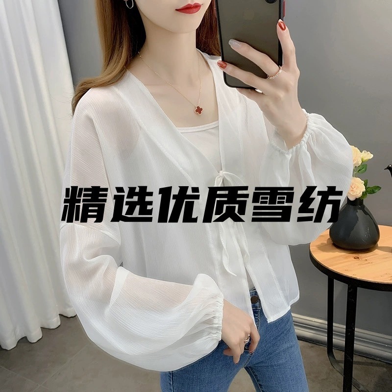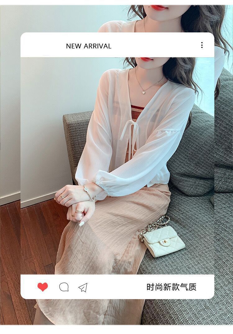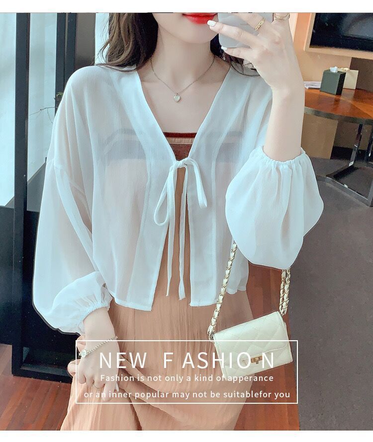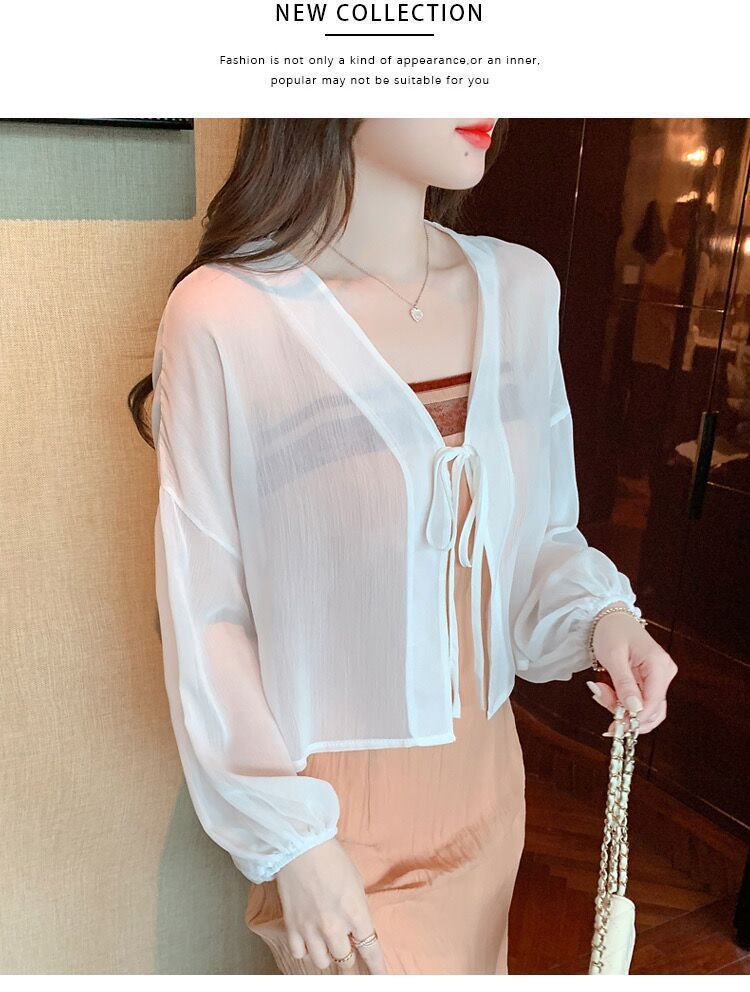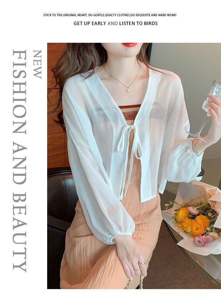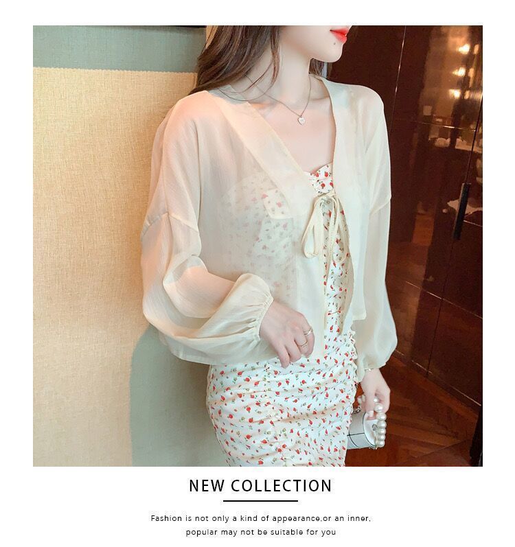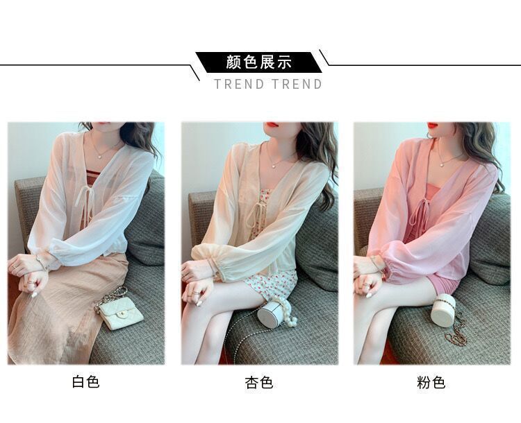여자 여름 새로운 느슨한 올매치 작은 목도리 외부 블라우스, 슬링 스커트 쉬폰 선 스크린 카디건 재킷스토어 가기