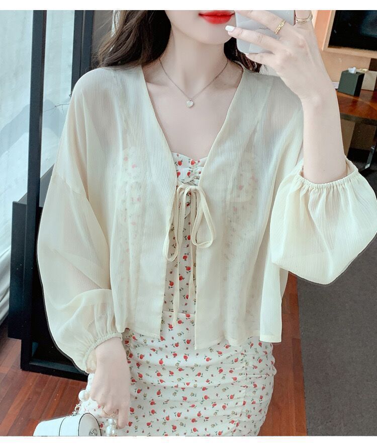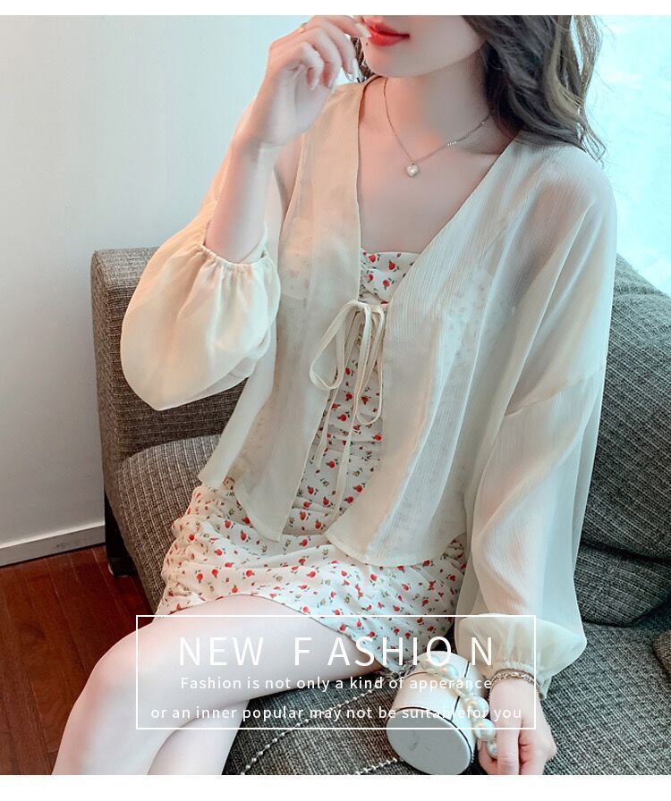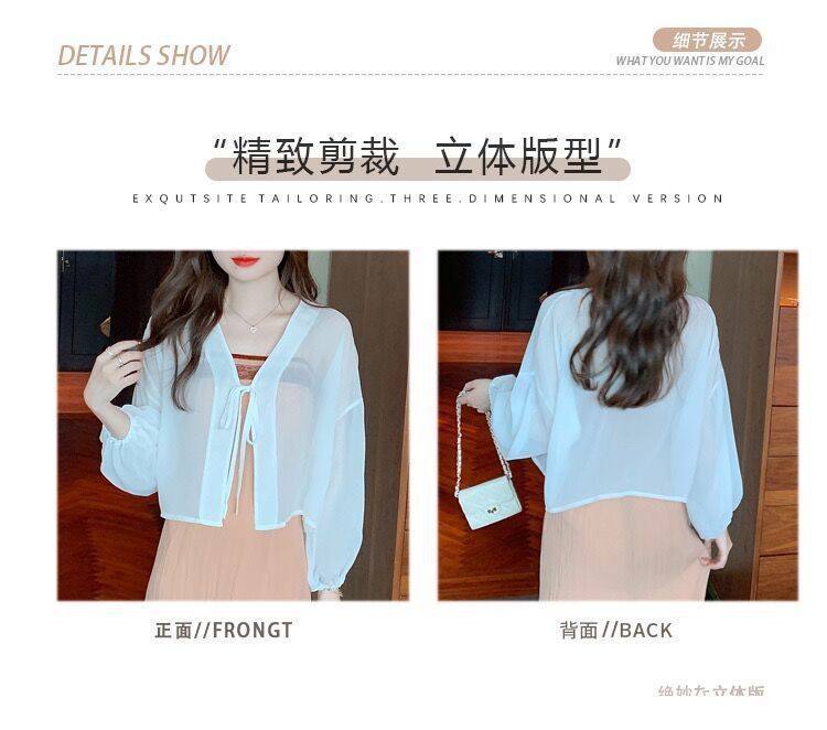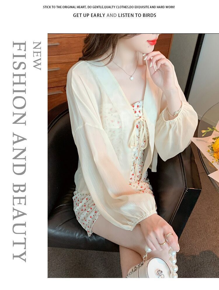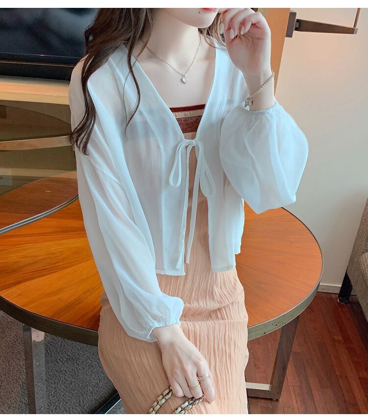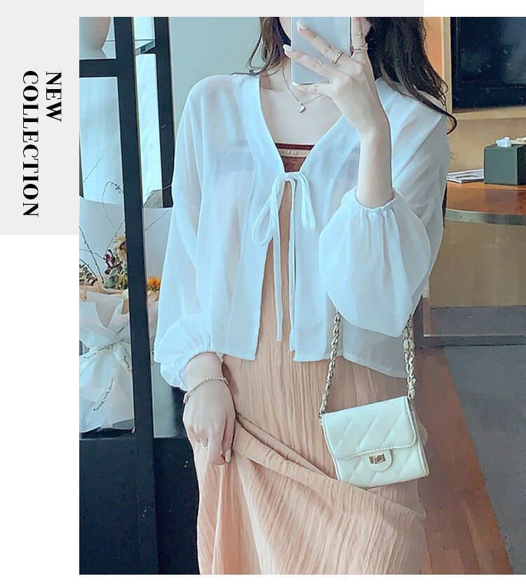 여자 여름 새로운 느슨한 올매치 작은 목도리 외부 블라우스, 슬링 스커트 쉬폰 선 스크린 카디건 재킷스토어 가기