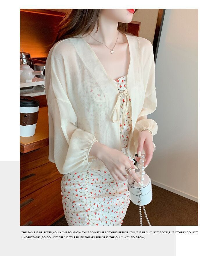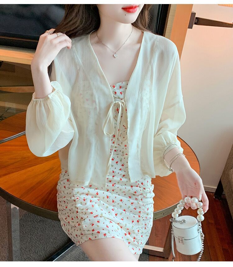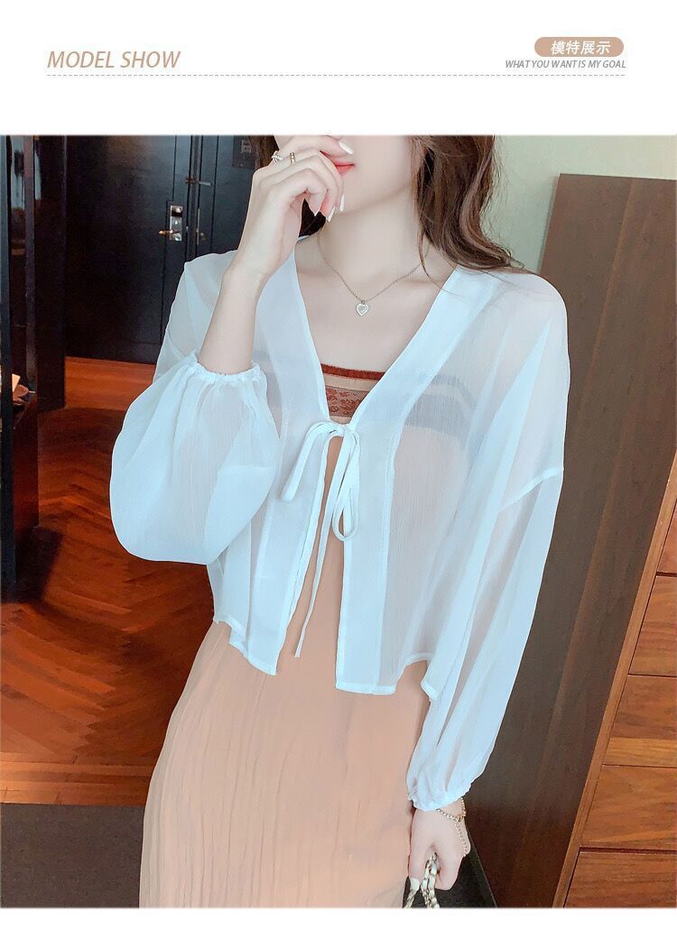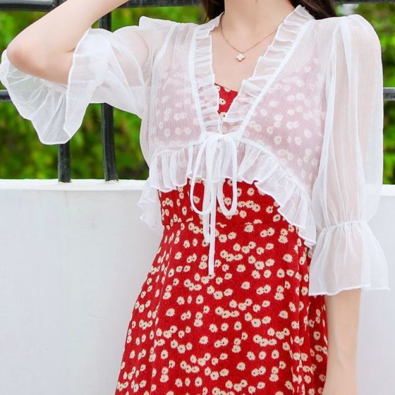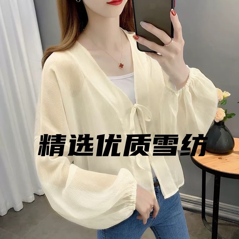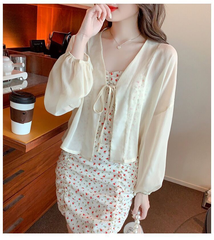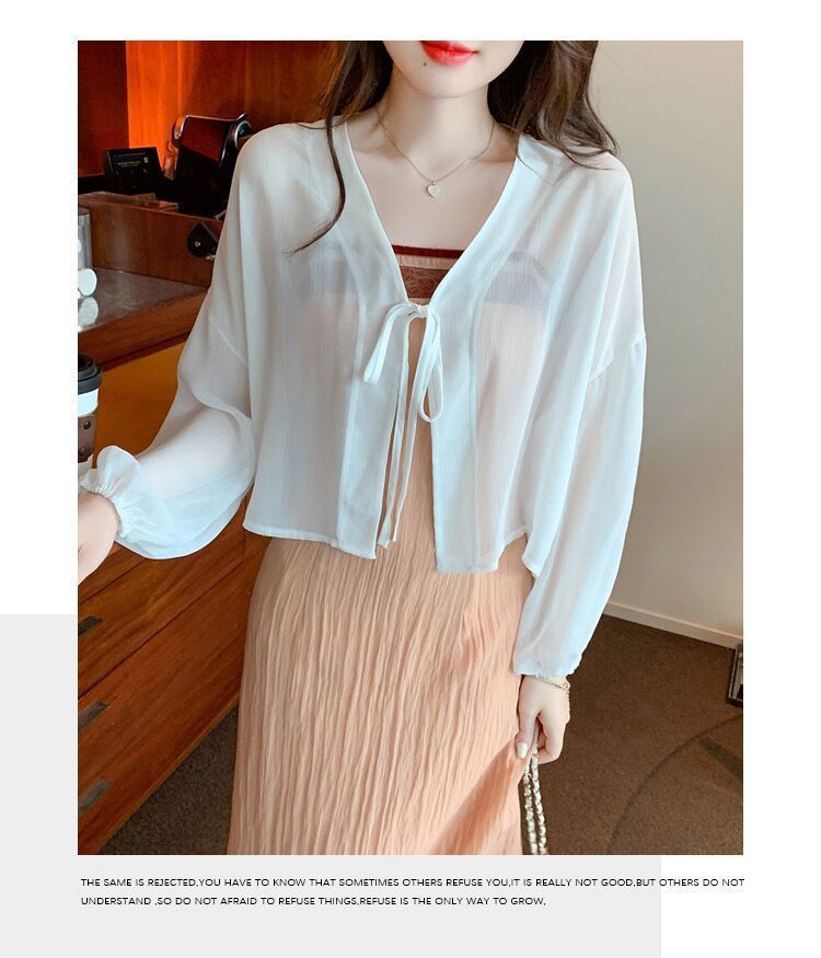 여자 여름 새로운 느슨한 올매치 작은 목도리 외부 블라우스, 슬링 스커트 쉬폰 선 스크린 카디건 재킷스토어 가기