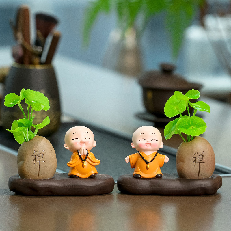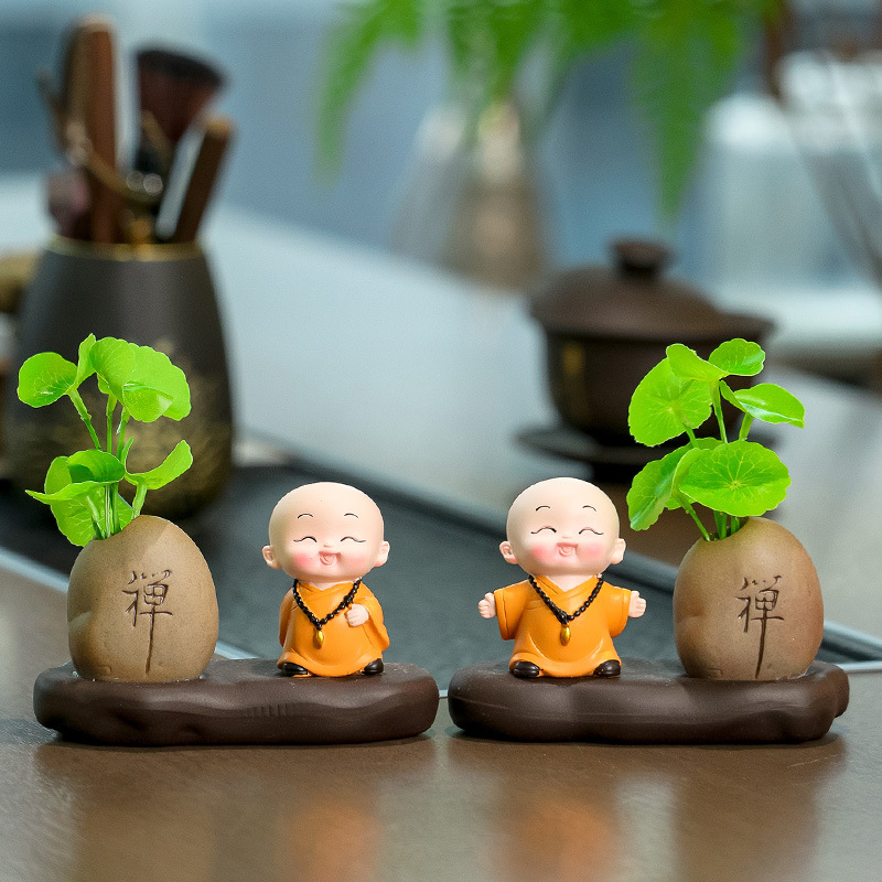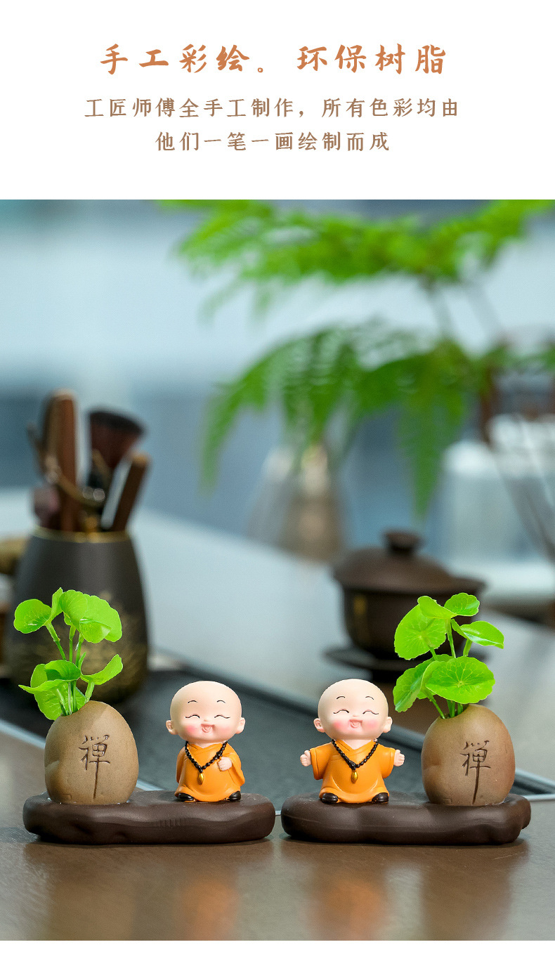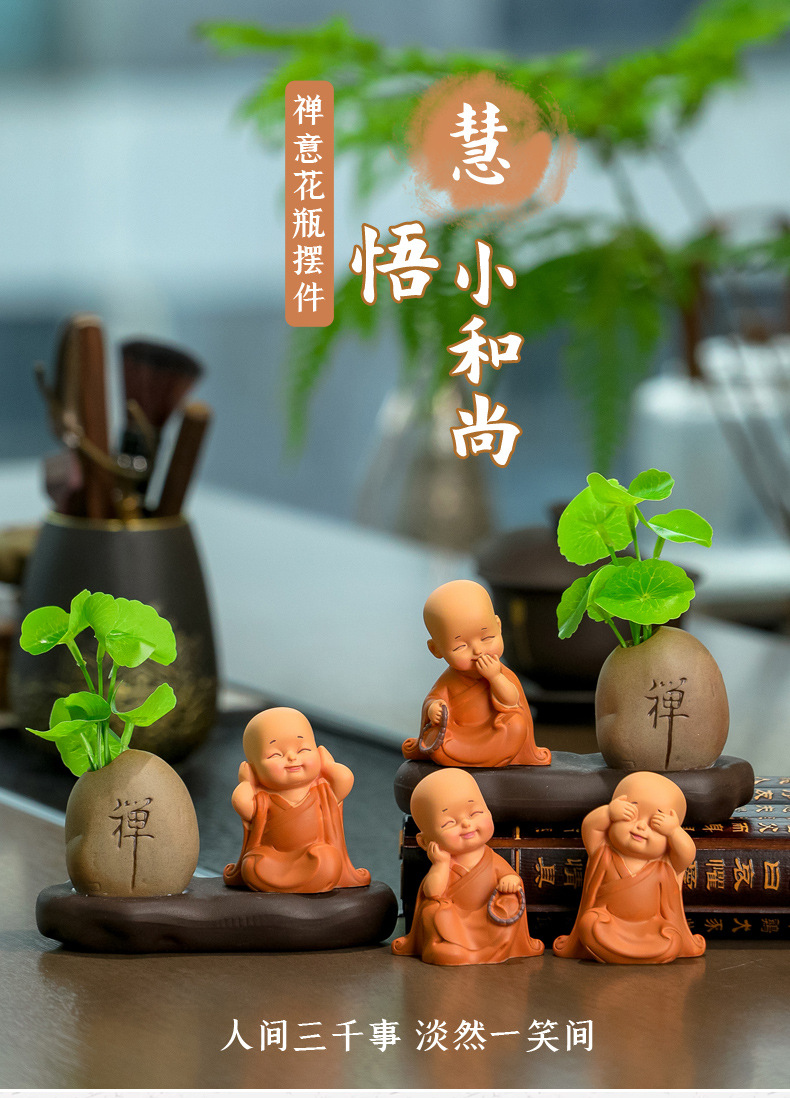 창조적 인 마이크로 풍경 세라믹 꽃병 선 작은 스님 장식 장식품 데스크탑 꽃 꽃병 배열 꽃병