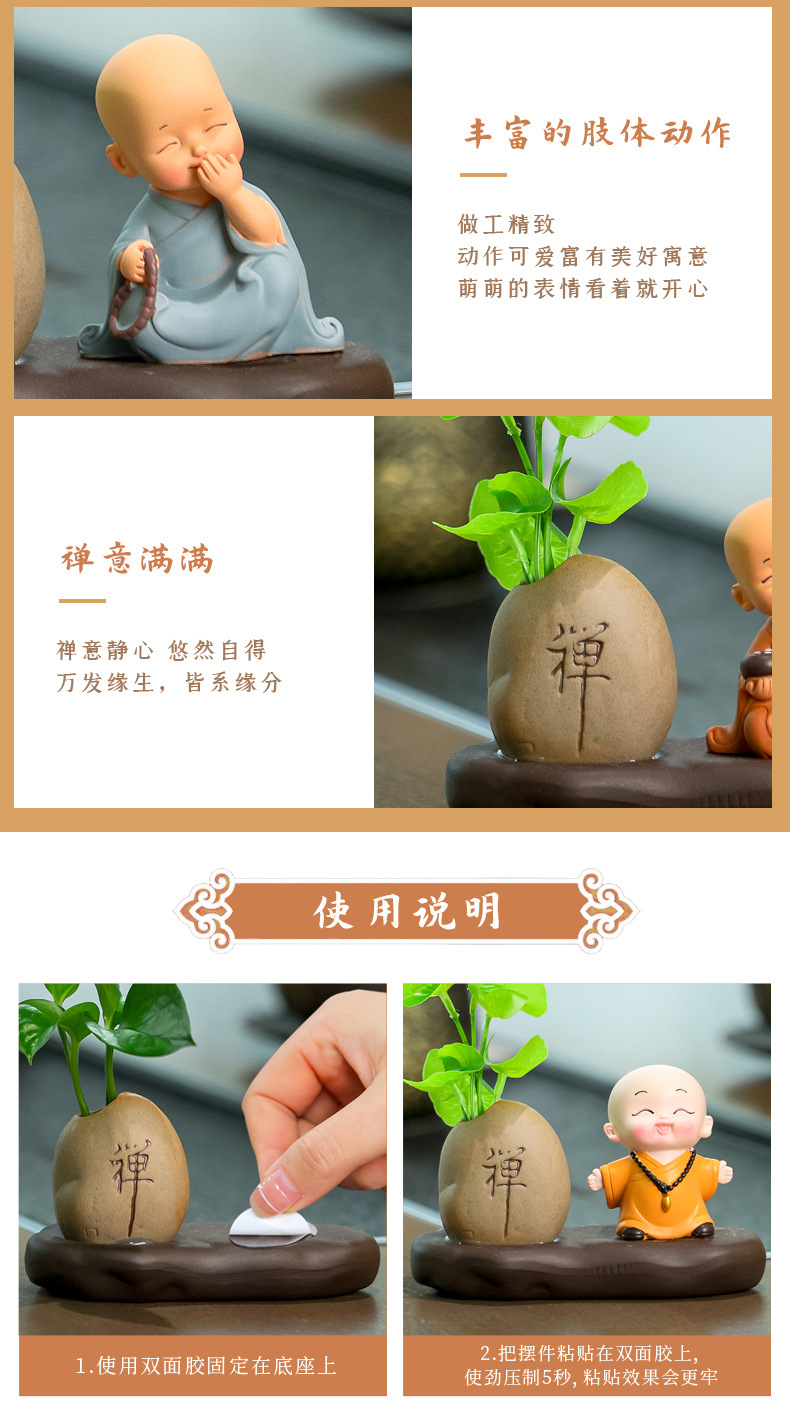 창조적 인 마이크로 풍경 세라믹 꽃병 선 작은 스님 장식 장식품 데스크탑 꽃 꽃병 배열 꽃병스토어 가기