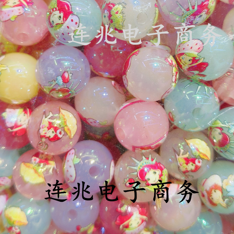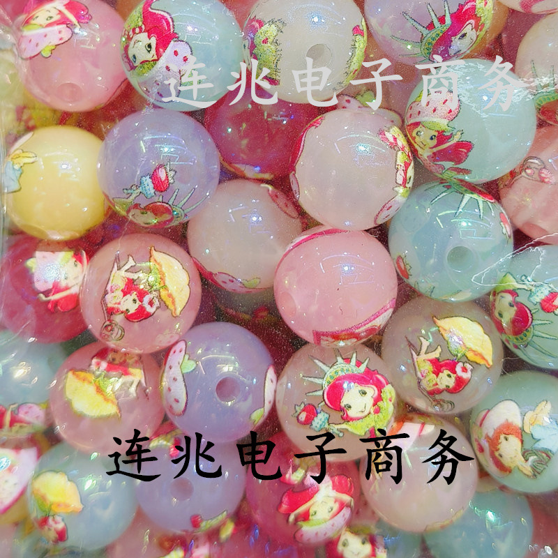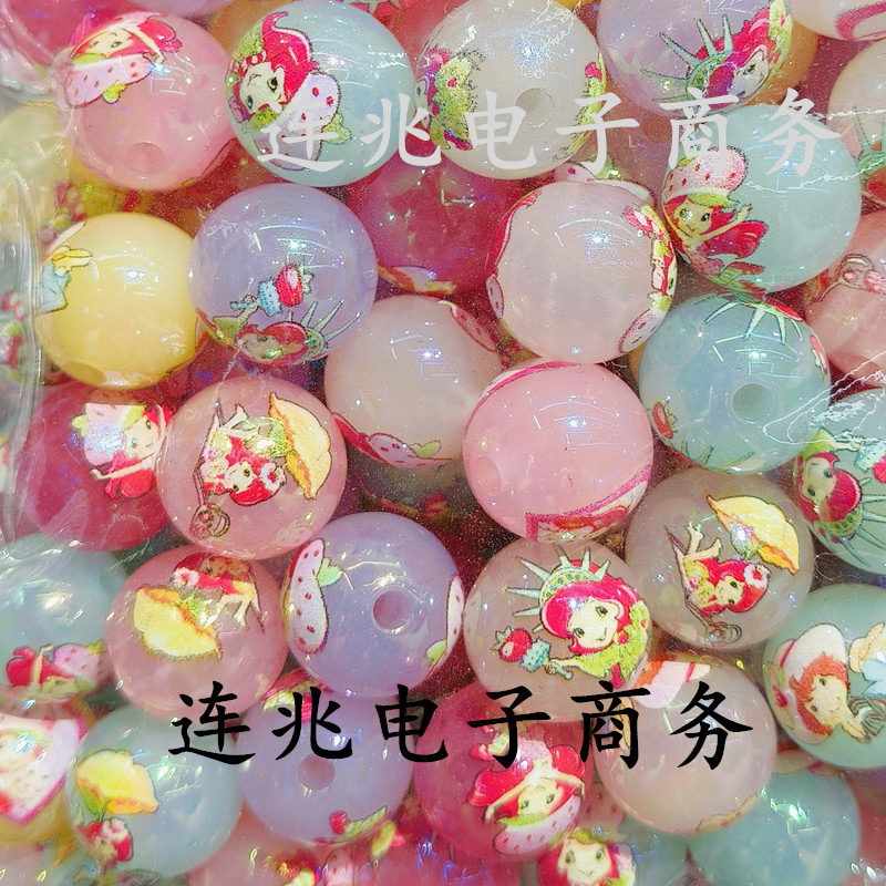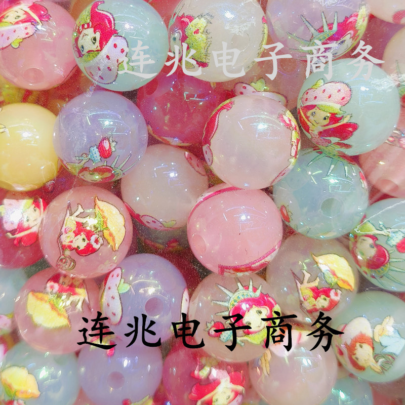 아크릴 인쇄 딸기 소녀 라운드 구슬 16 수직 구멍 DIY 쉐이크 톤 라이브 전화 로프 키 체인 펜 매칭스토어 가기