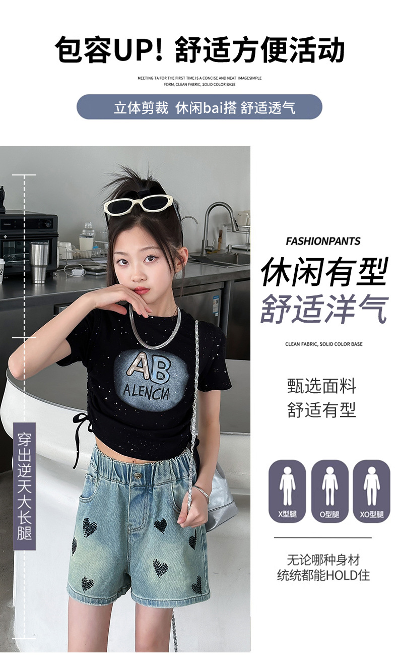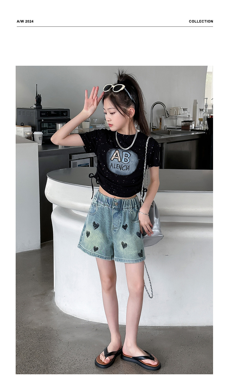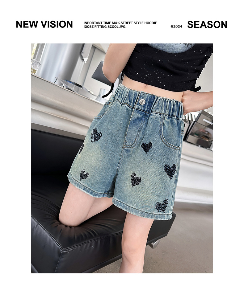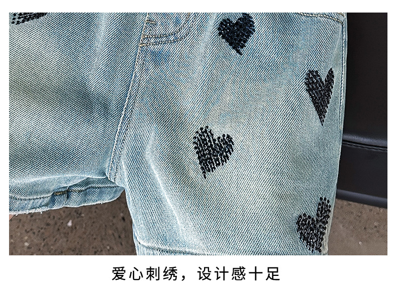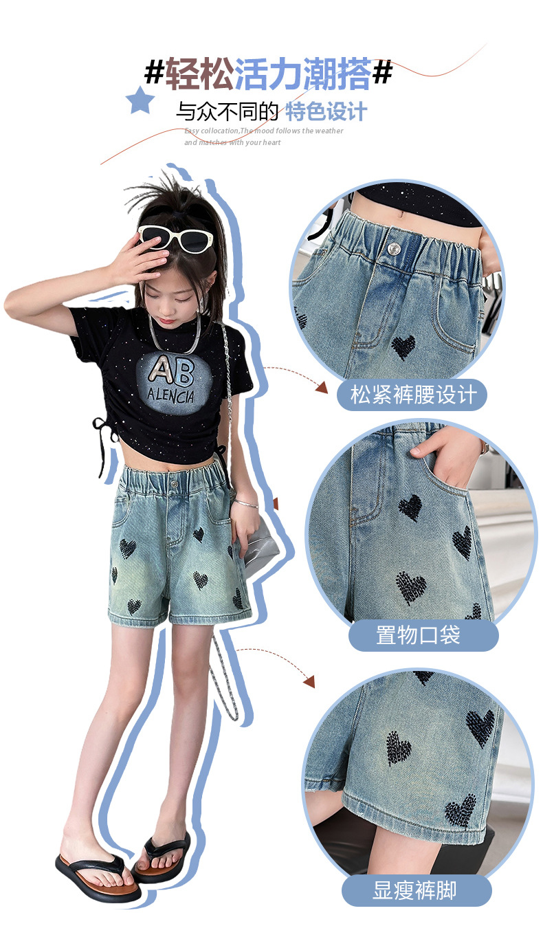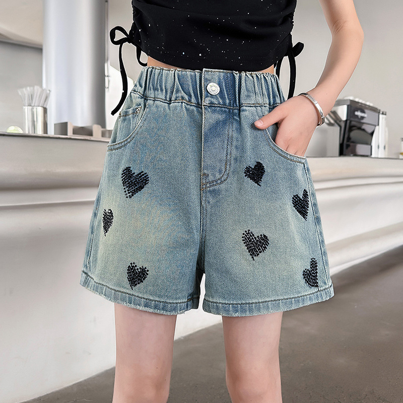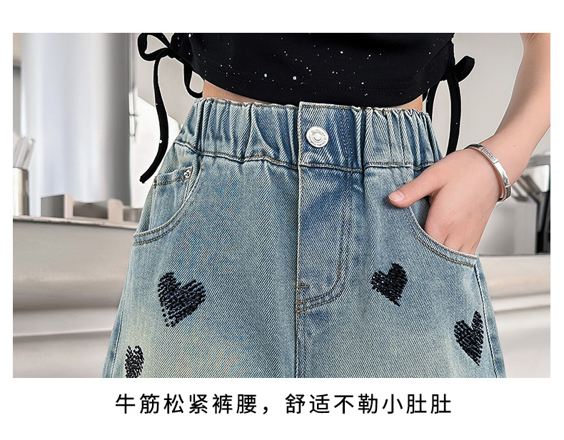 소녀 여름 데님 반바지 2025 새로운 소녀 세련된 패션 사랑 바지 어린이 여름 캐주얼 바지