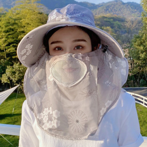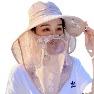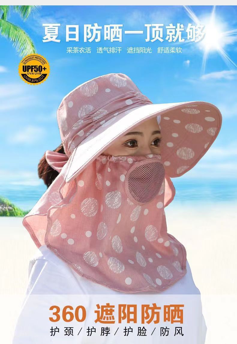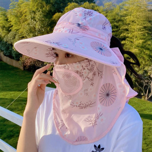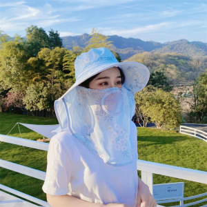 야외 큰 챙이 모자 여성 여름 목도리 통합 어부의 모자 햇살 마스크를 타고 안티 자외선 태양 모자 차 따기 모자스토어 가기