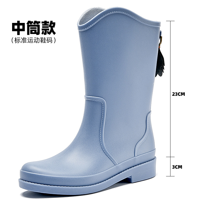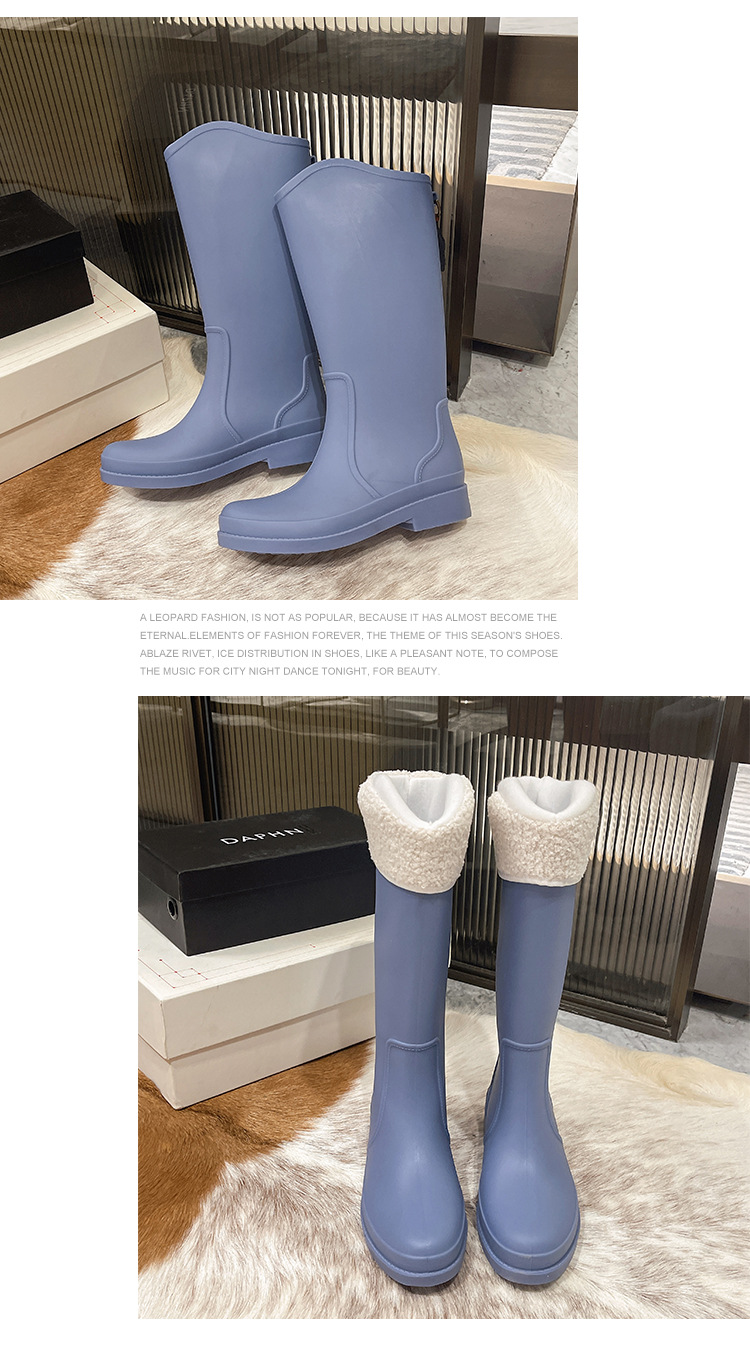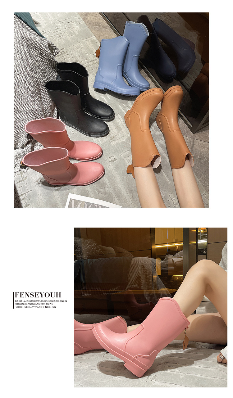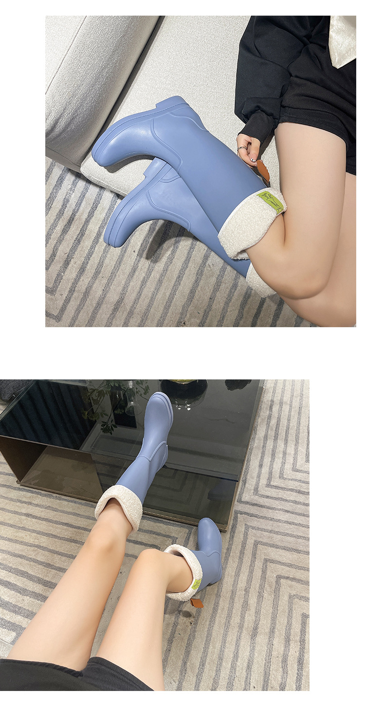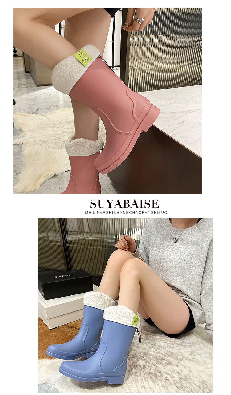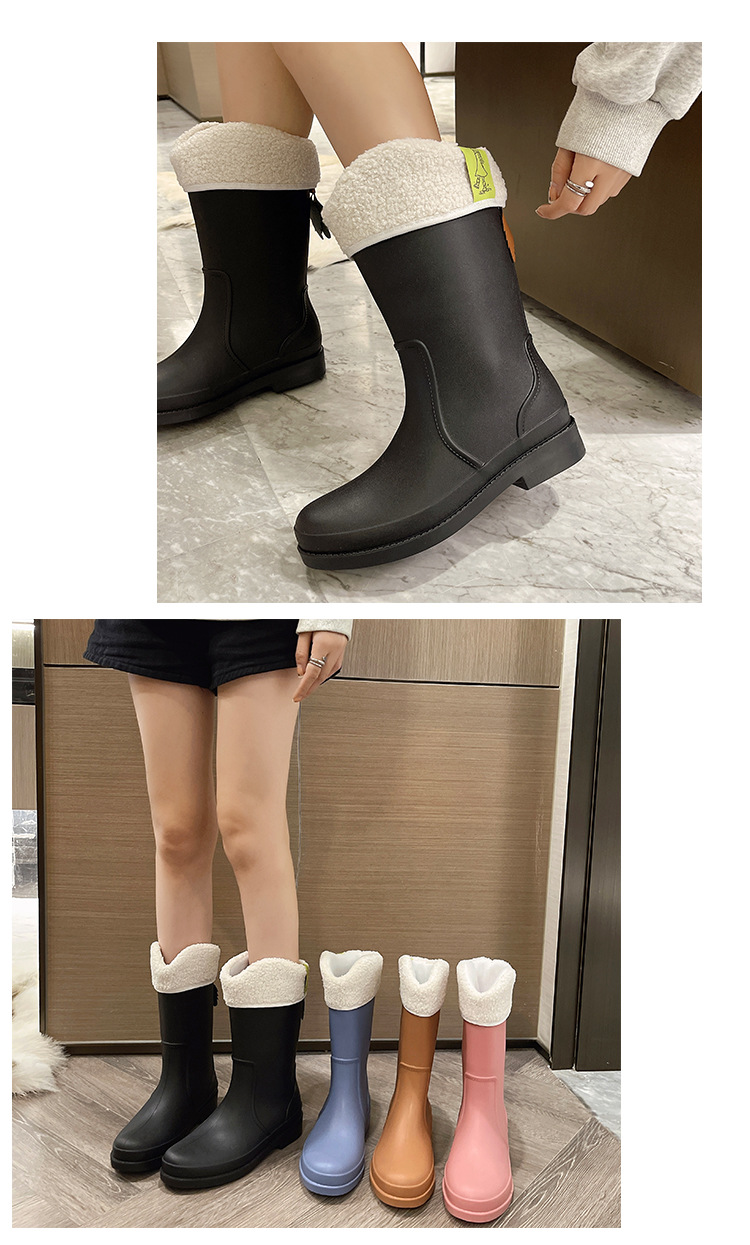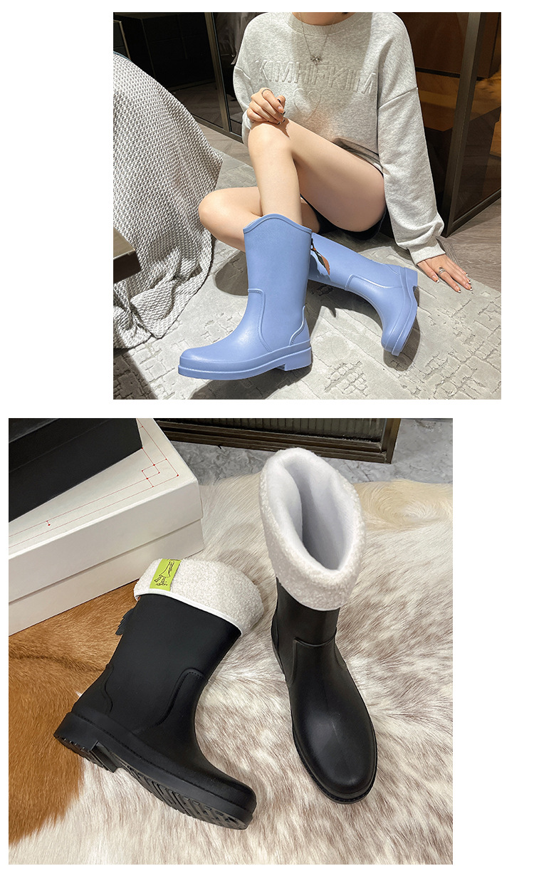 한국 스타일 유행 높은 배럴 방수 신발 캐주얼 코튼 미드 세트 고무 신발 모든 경기 여성의 물 신발 낮은 발 뒤꿈치 경량 워터 부츠