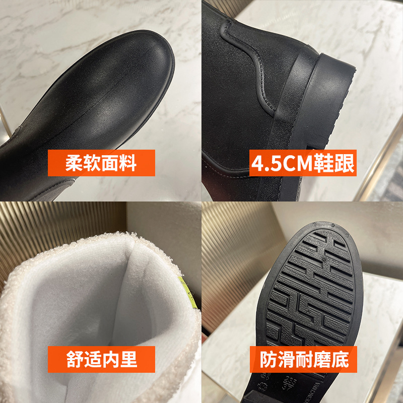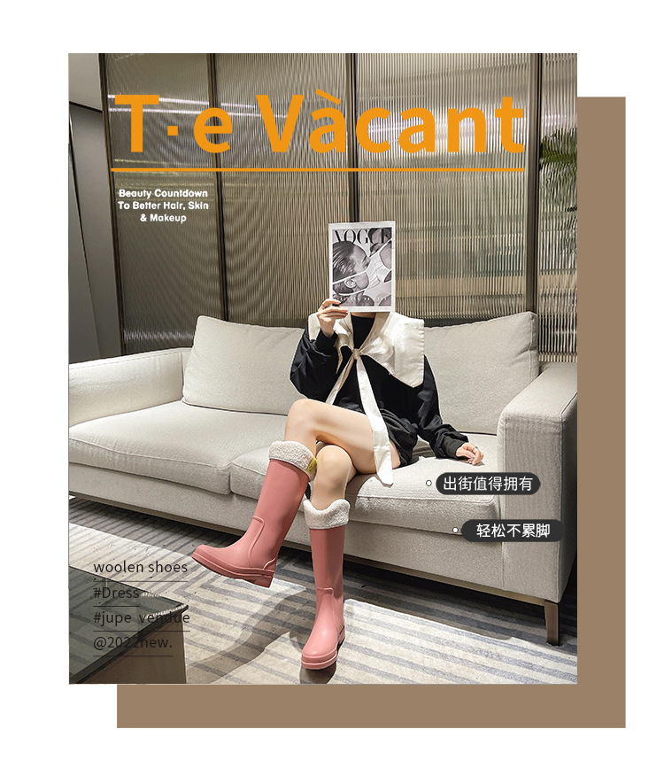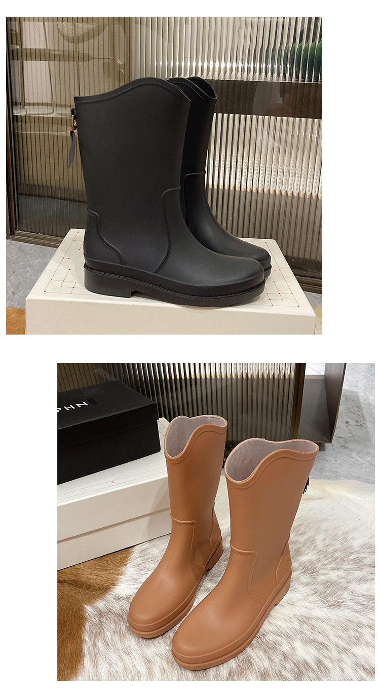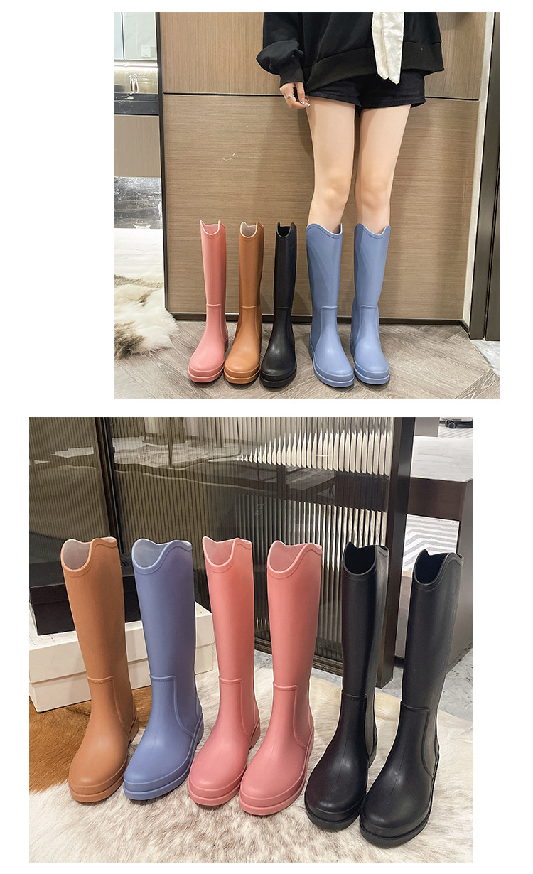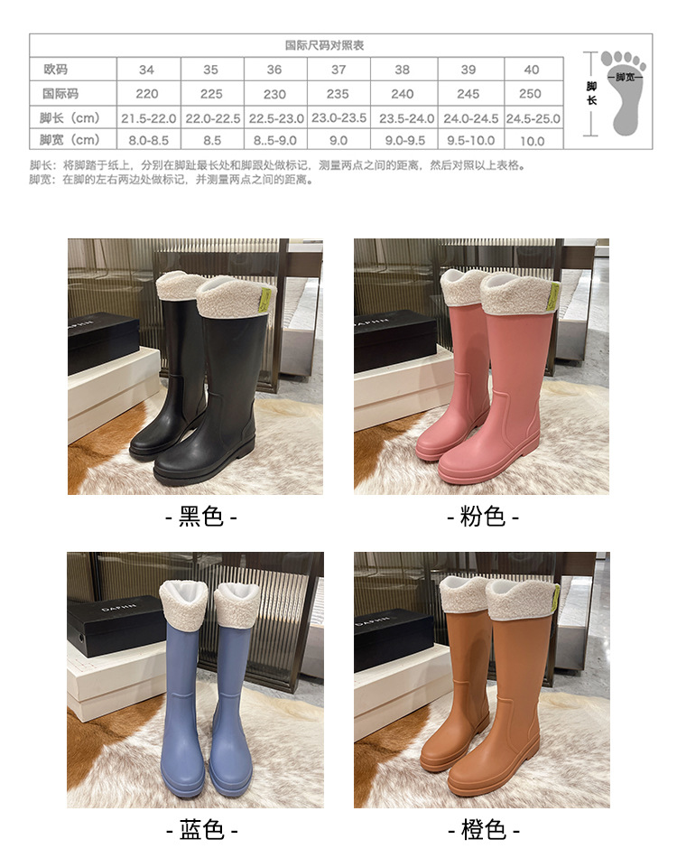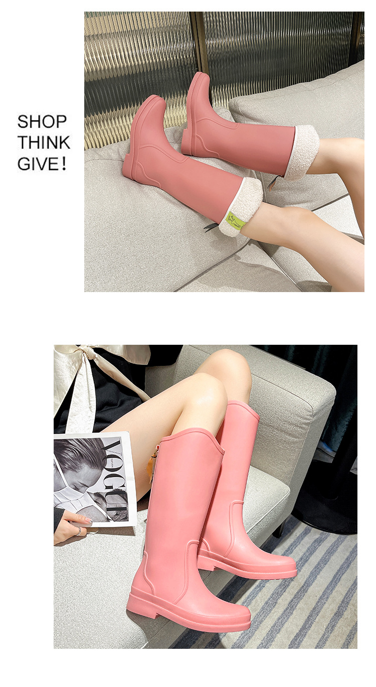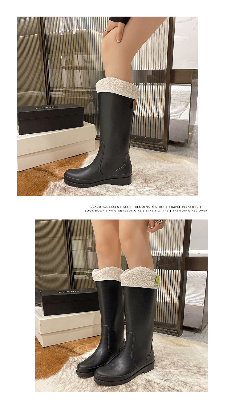 한국 스타일 유행 높은 배럴 방수 신발 캐주얼 코튼 미드 세트 고무 신발 모든 경기 여성의 물 신발 낮은 발 뒤꿈치 경량 워터 부츠
