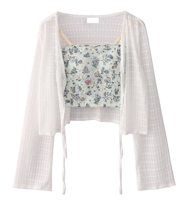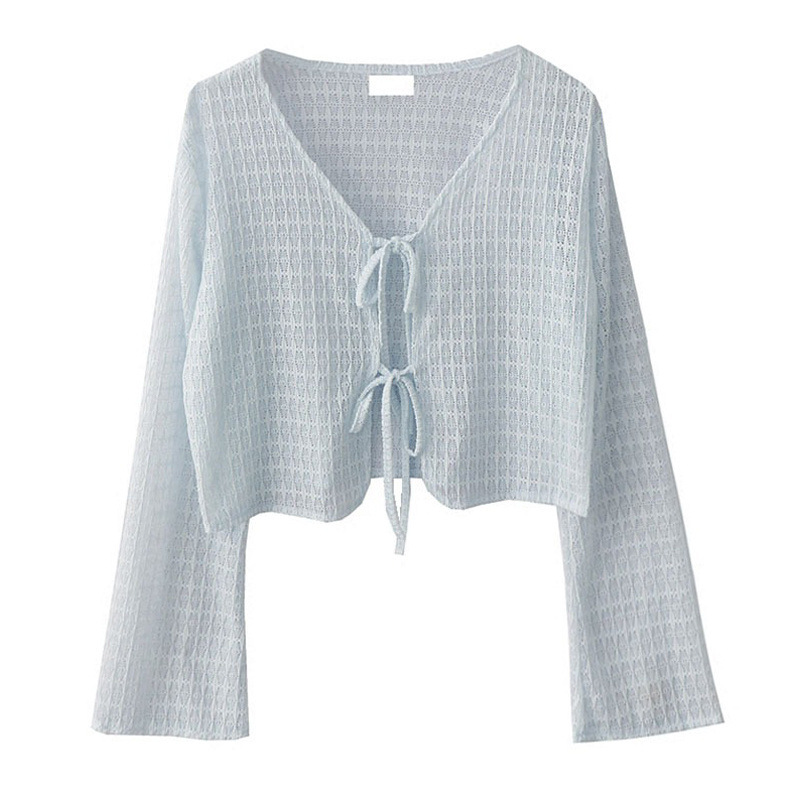 블루 카디건 블라우스 여성용 여름 얇은 니트 선 스크린 의류 슬립 스커트스토어 가기