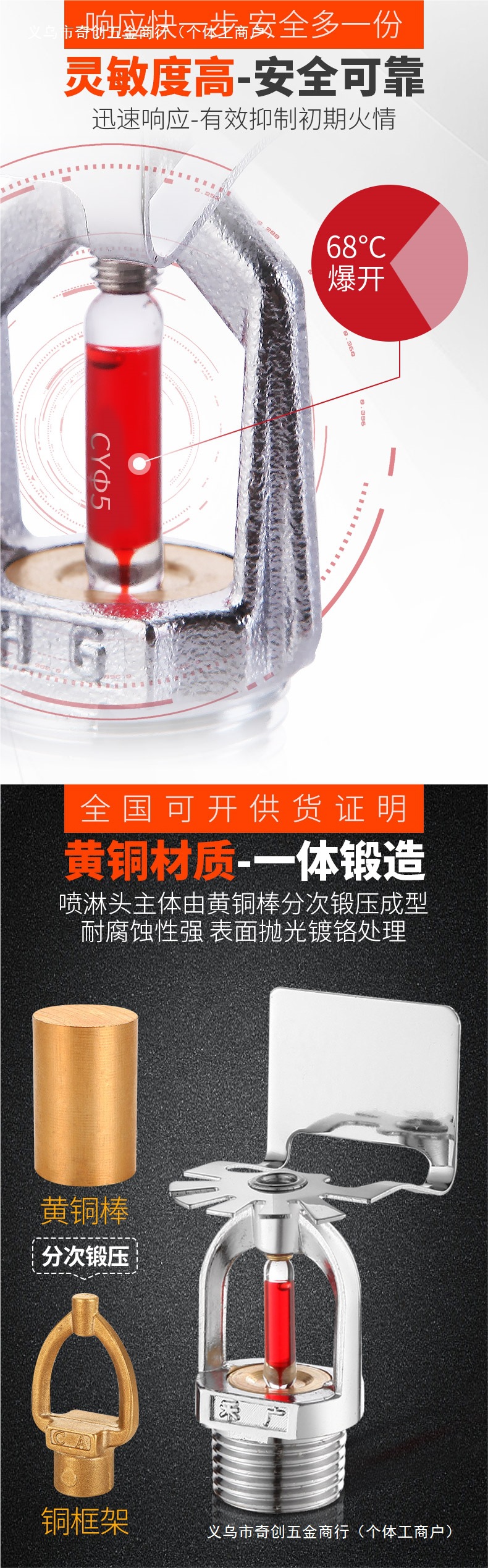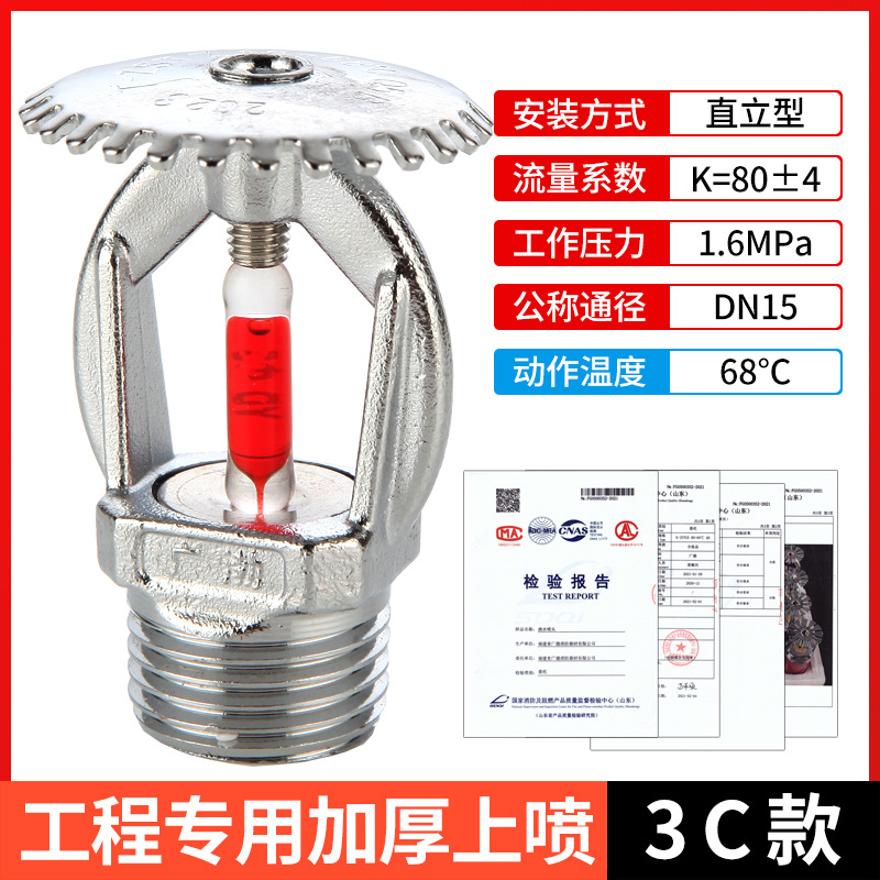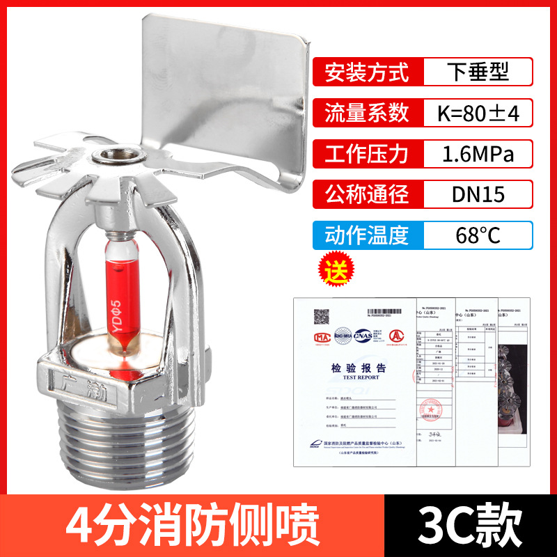 모든 구리 화재 스프링클러 68 도 아래로 스프레이 스프레이 노즐 화재 스프레이 직립 스프레이 헤드 3C 인증스토어 가기