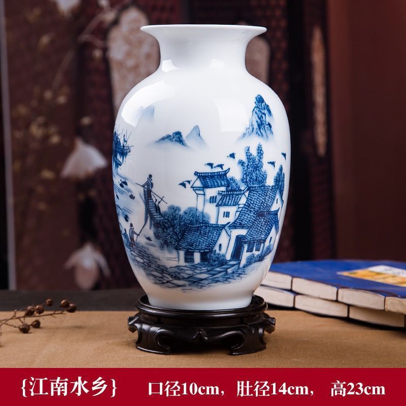Jingdezhen 새로운 중국 스타일 꽃병 세라믹 꽃 냄비 복고풍 도자기 냄비 말린 꽃 거실 꽃-배열 현대 간단한 장식스토어 가기