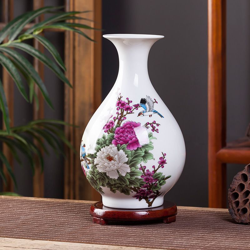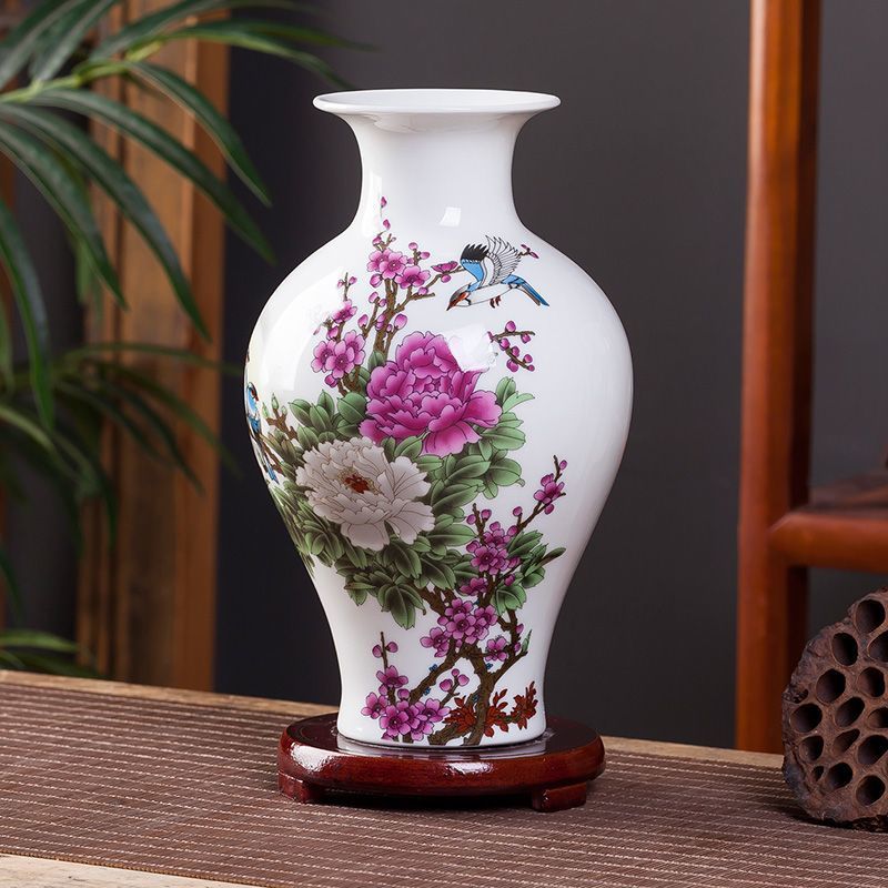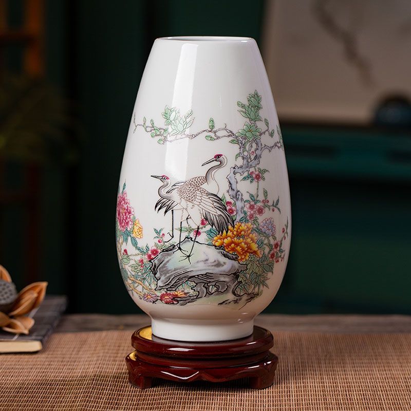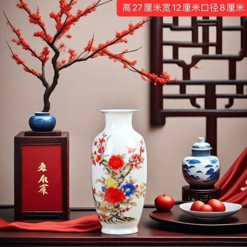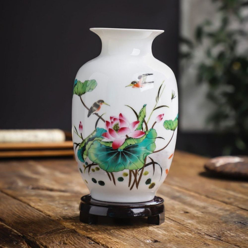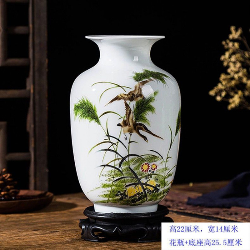 Jingdezhen 새로운 중국 스타일 꽃병 세라믹 꽃 냄비 복고풍 도자기 냄비 말린 꽃 거실 꽃-배열 현대 간단한 장식