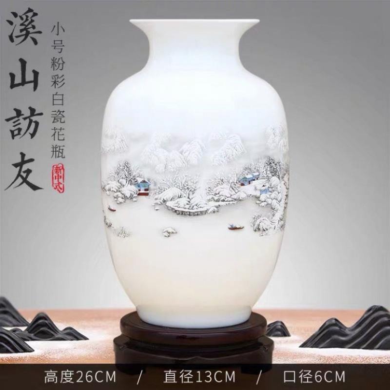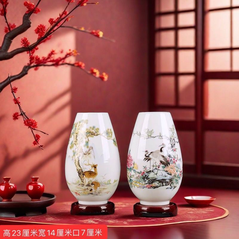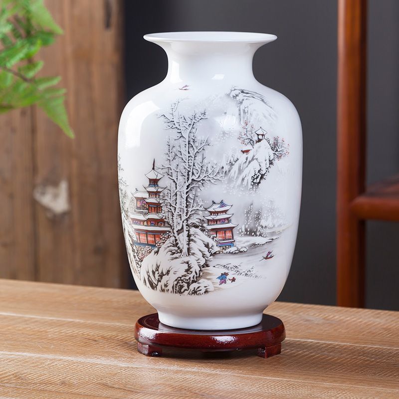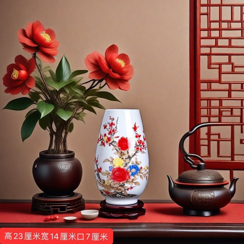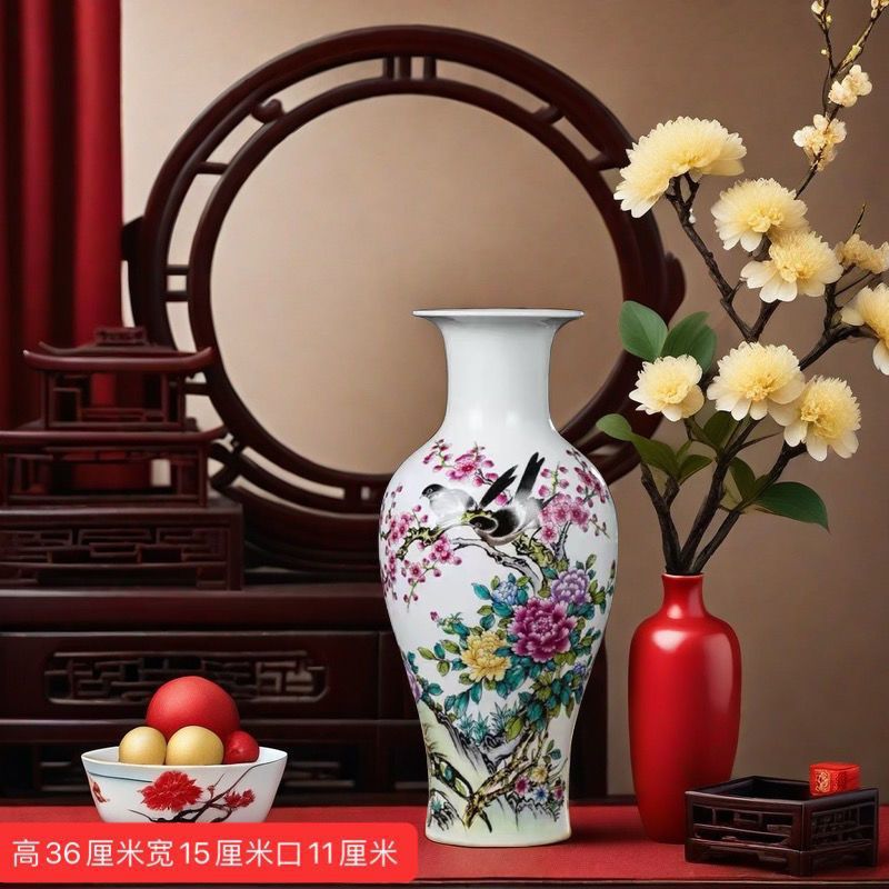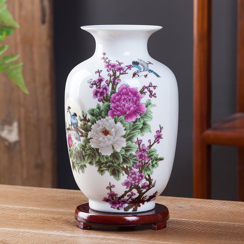 Jingdezhen 새로운 중국 스타일 꽃병 세라믹 꽃 냄비 복고풍 도자기 냄비 말린 꽃 거실 꽃-배열 현대 간단한 장식
