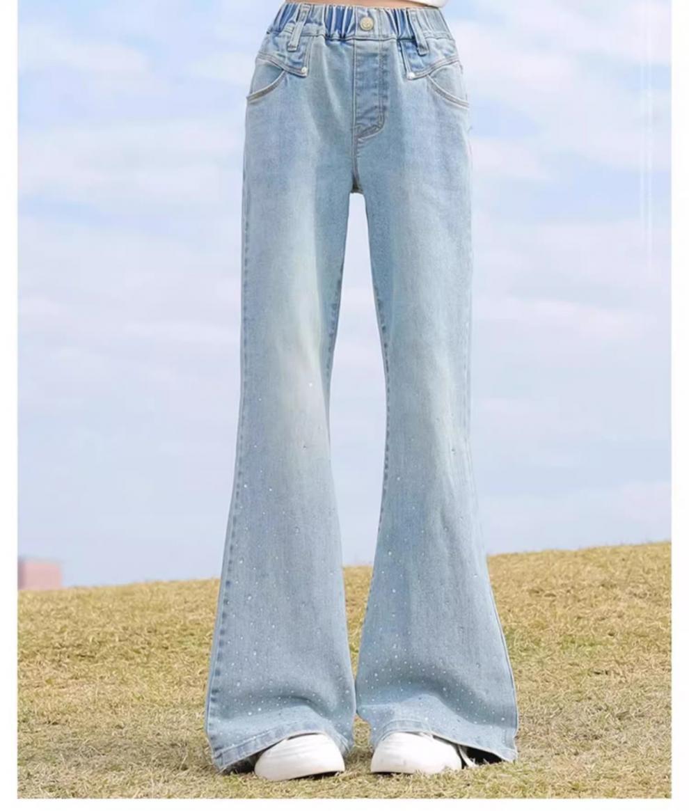 소녀의 봄과 가을 세트 가을 어린이 2025 새로운 유행 서양식 스웨트 셔츠 겨울 큰 어린이 뿔 청바지
