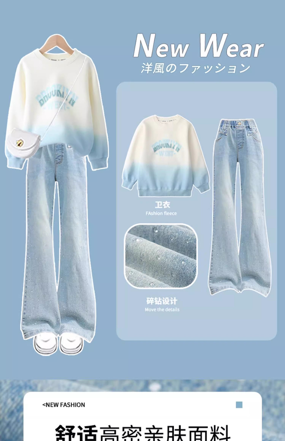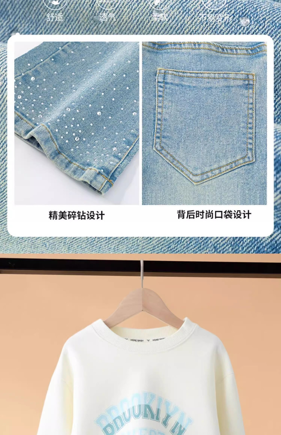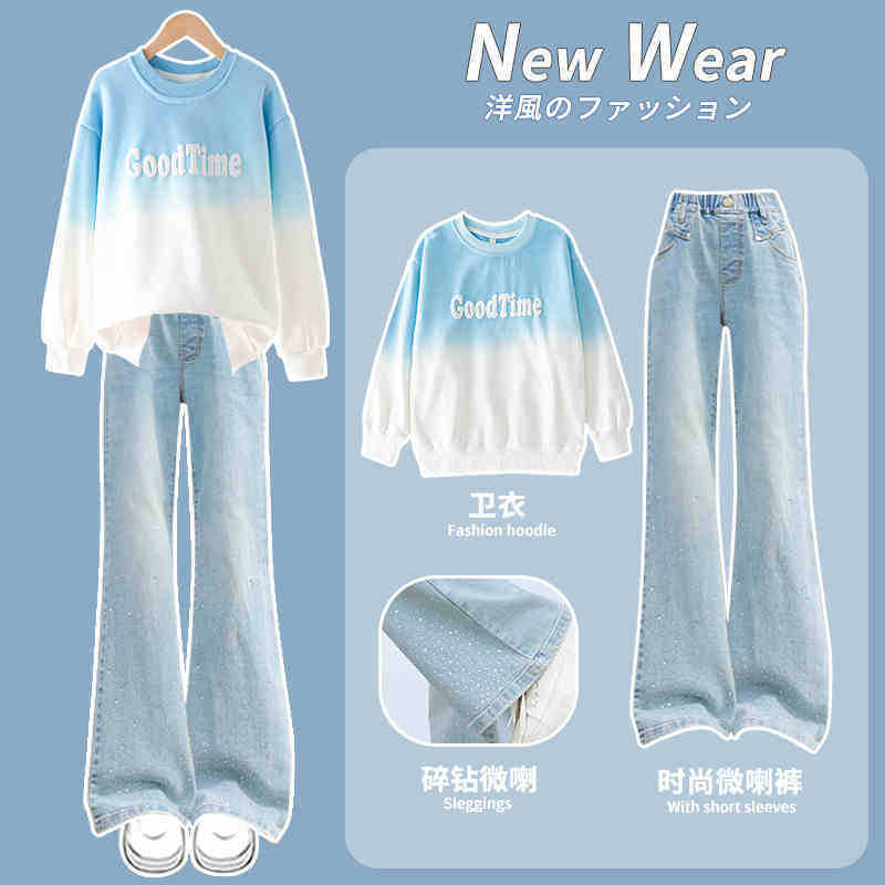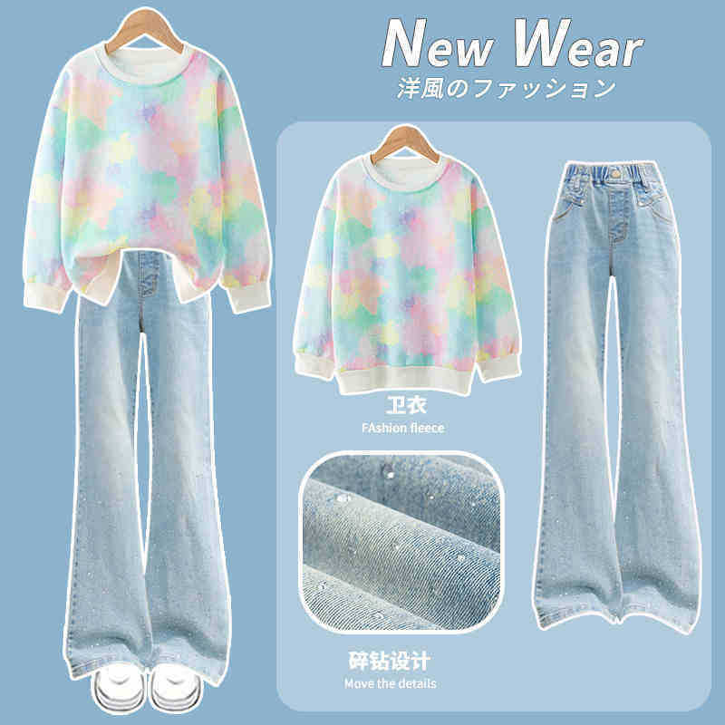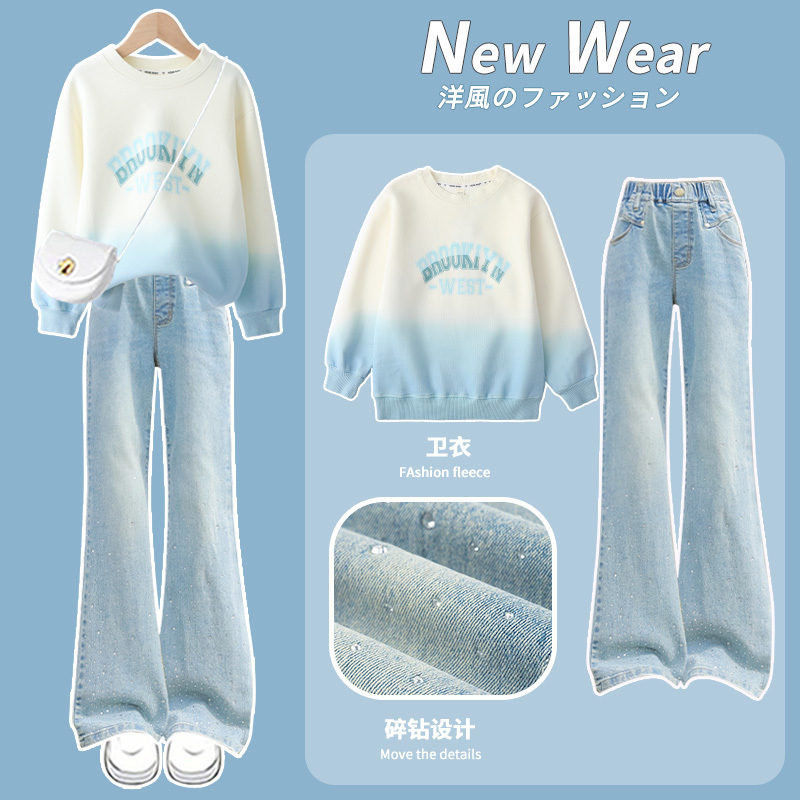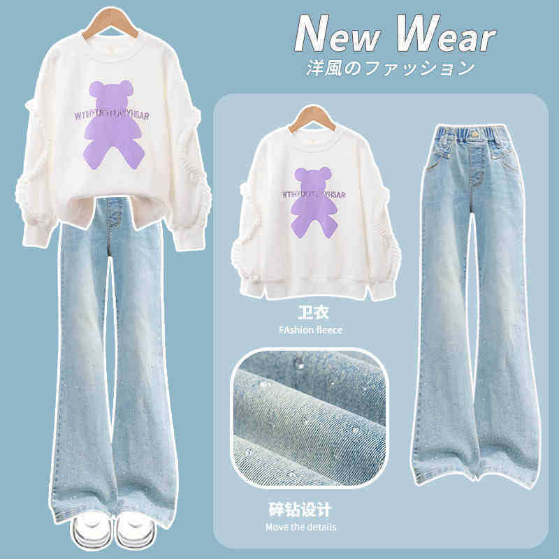 소녀의 봄과 가을 세트 가을 어린이 2025 새로운 유행 서양식 스웨트 셔츠 겨울 큰 어린이 뿔 청바지스토어 가기
