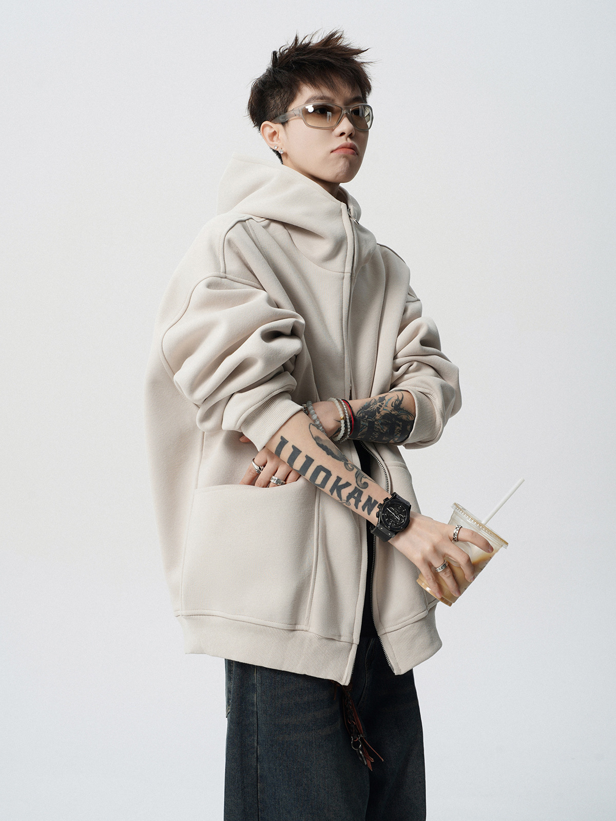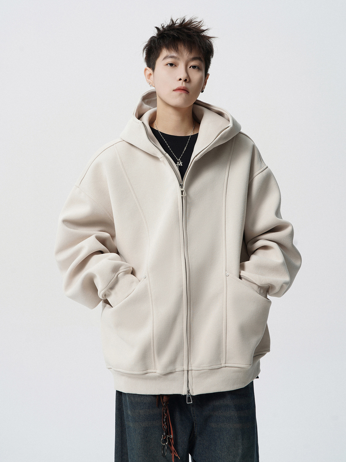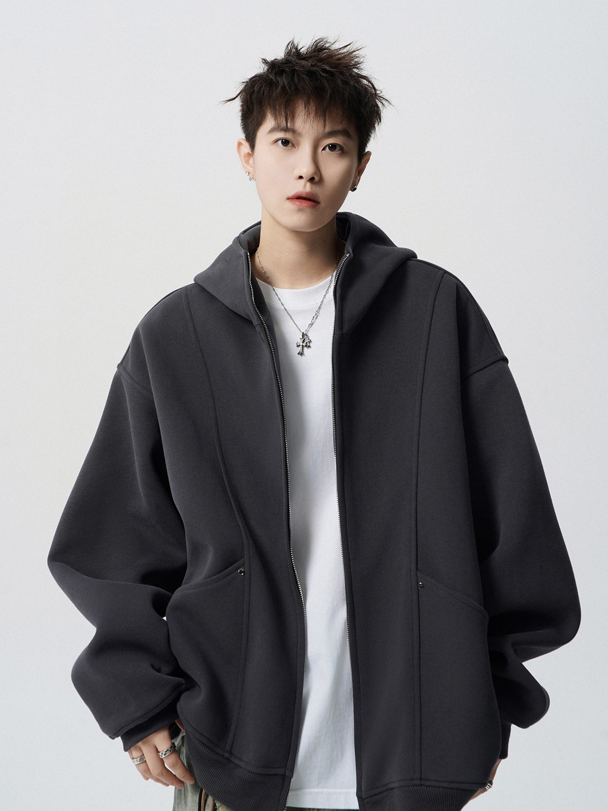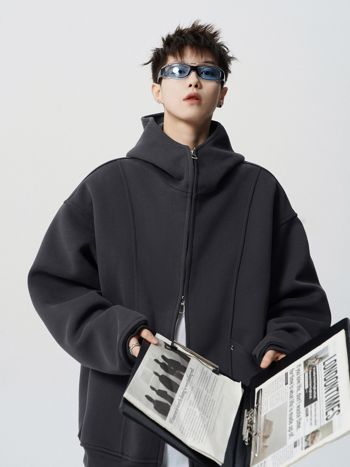 헤비 다크 그레이 후드 자켓 남자 겨울 미국 스타일 Laid-back 두꺼운 커플 재킷 트렌디 한 브랜드 디자인 센스 스웨터 카디건스토어 가기