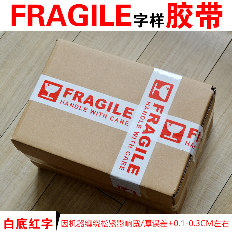 FRAGILE 테이프 영어 유형 제품 수출 테이프 흰색 하단 스칼렛 편지 경고 포장 스티커 테이프스토어 가기