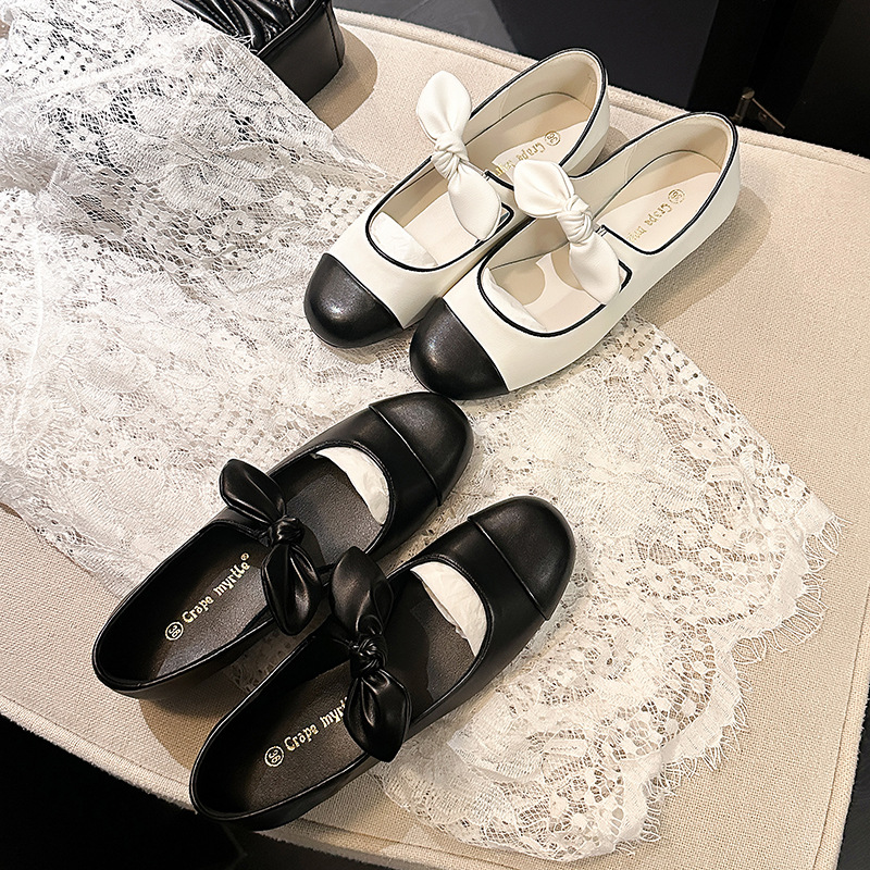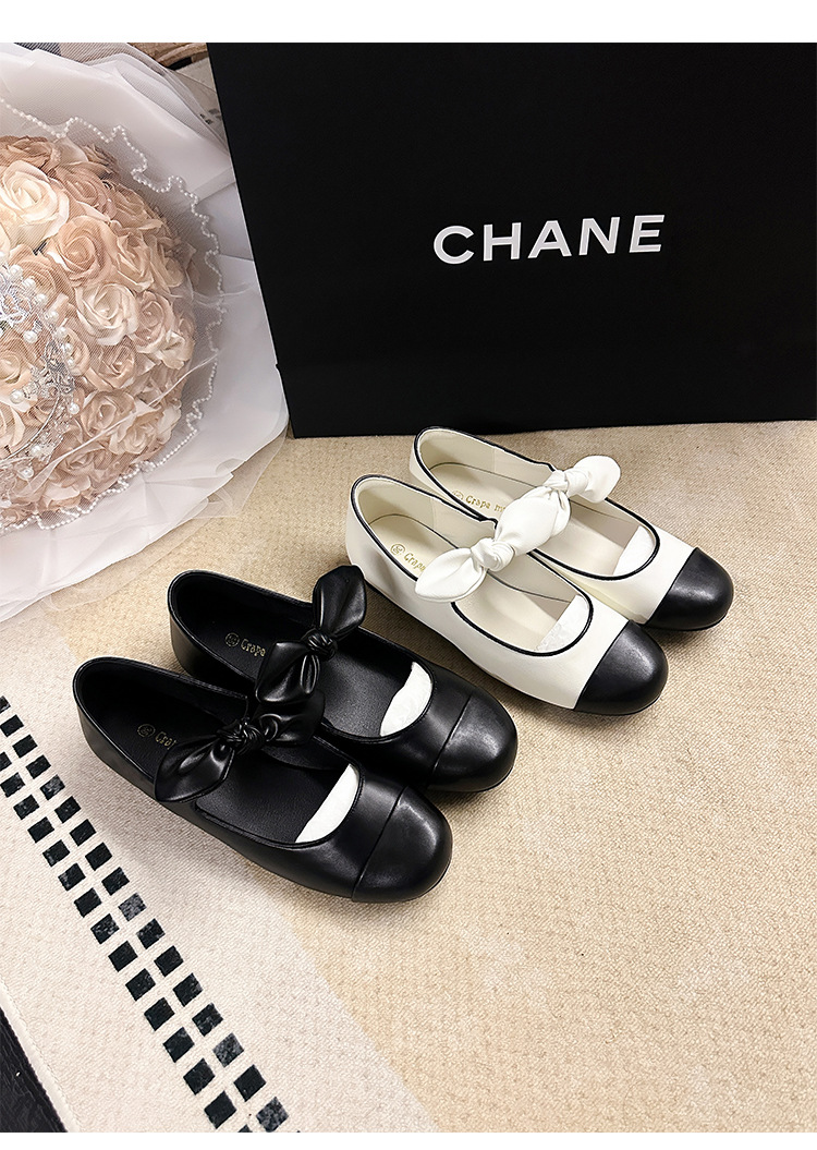 소프트 가죽 2025 이른 봄 새로운 스타일 샤넬 스타일 라운드 토 활 플랫 발레 신발 여성 메리 제인