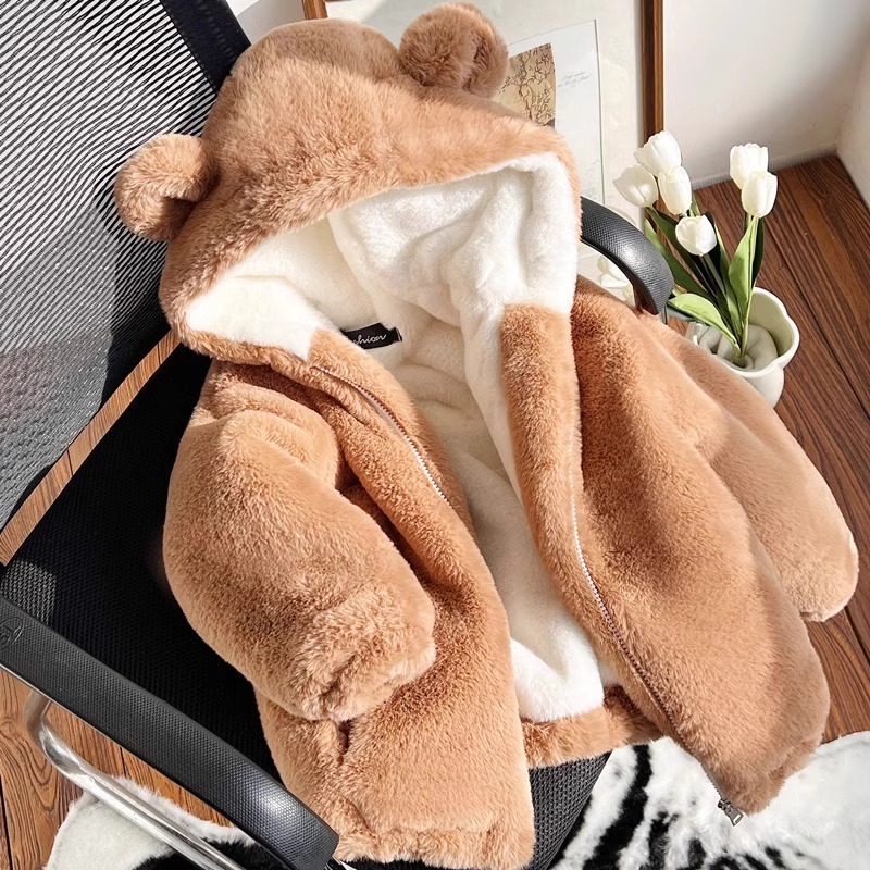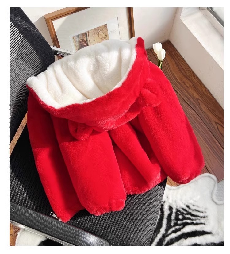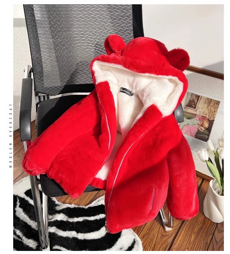소녀 코튼 패딩 코트 겨울 옷 소년 귀여운 후드 모방 토끼 모피 코트 대형 어린이 기모 두꺼운 어린이 면화 패딩 코트스토어 가기