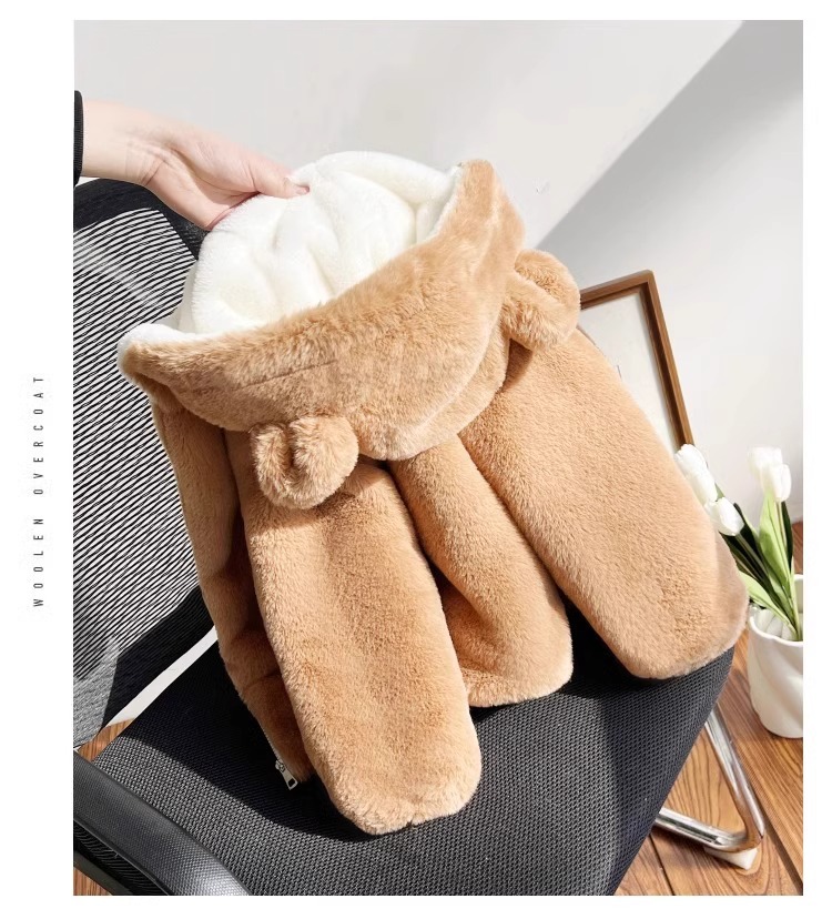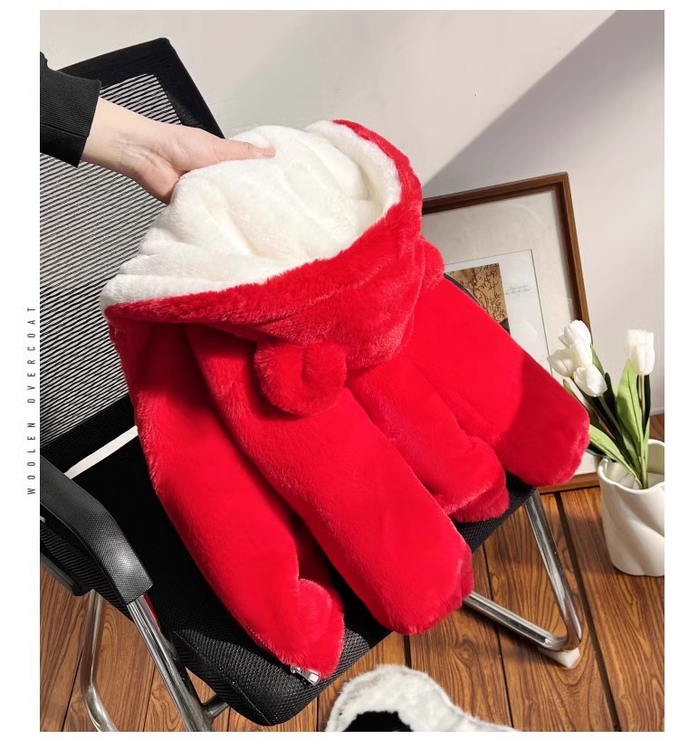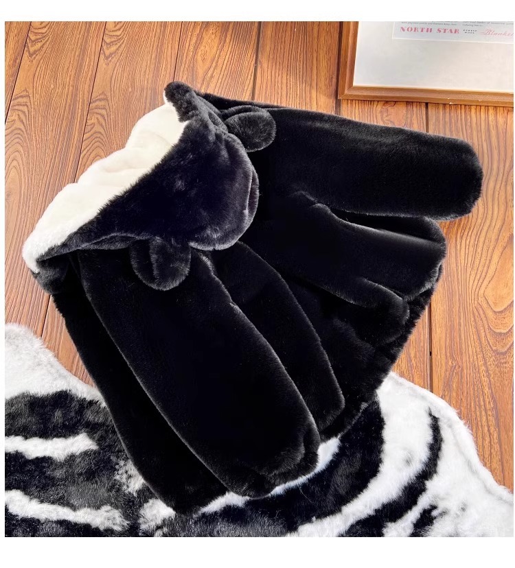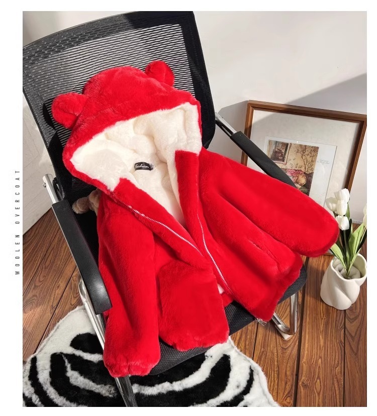 소녀 코튼 패딩 코트 겨울 옷 소년 귀여운 후드 모방 토끼 모피 코트 대형 어린이 기모 두꺼운 어린이 면화 패딩 코트