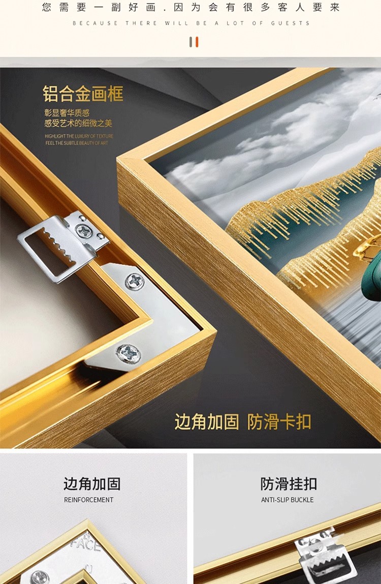 • 소파 2.5m개에 적합 권장: 양면 40*60+중간 60*80CM [알루미늄 합금 골드 프레임 + 캔버스]