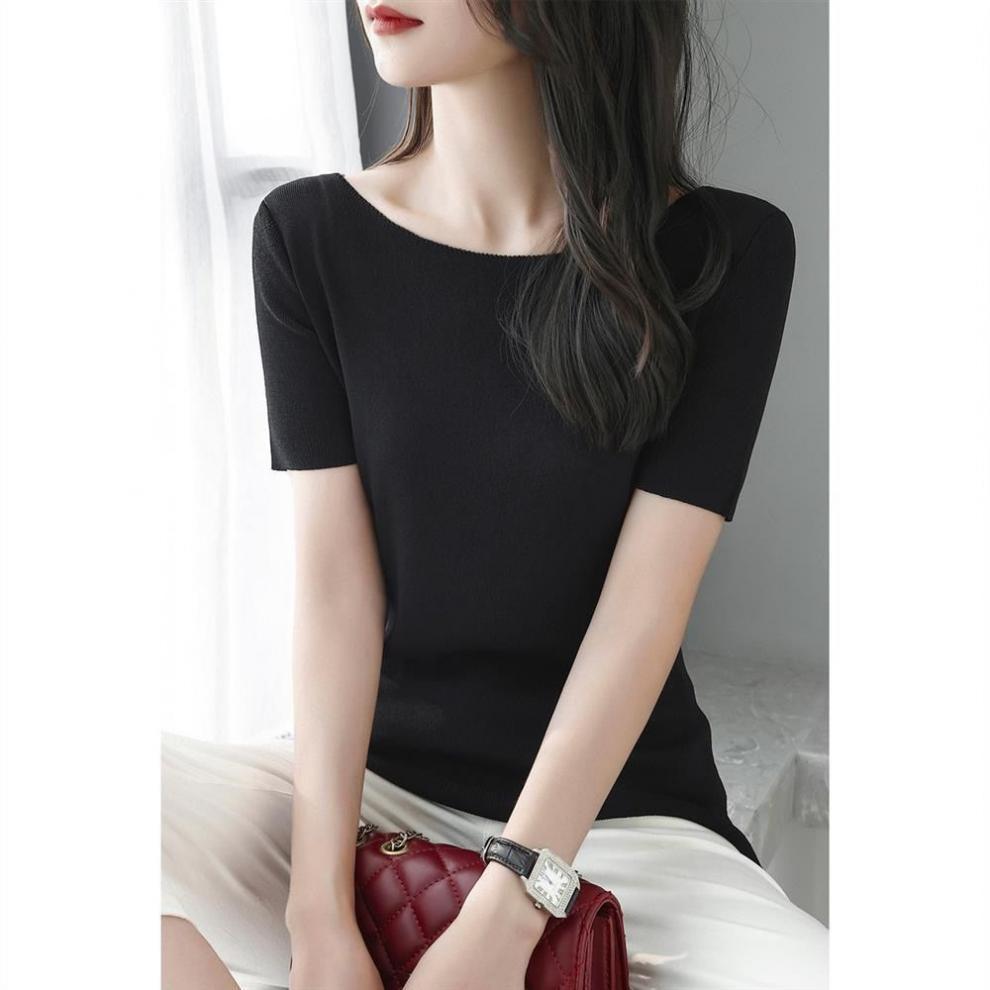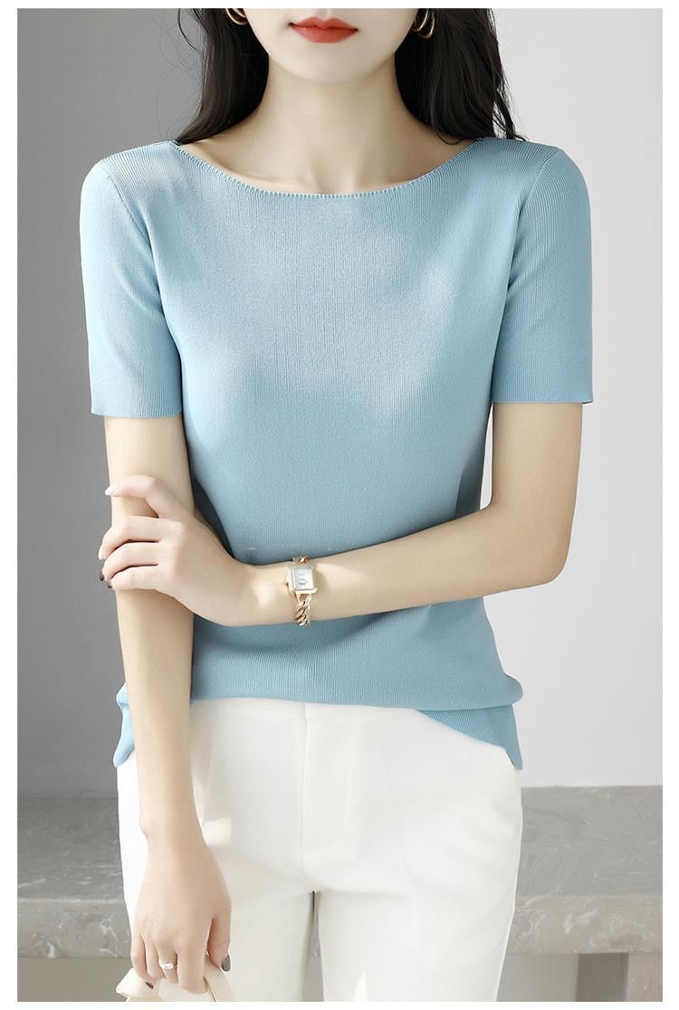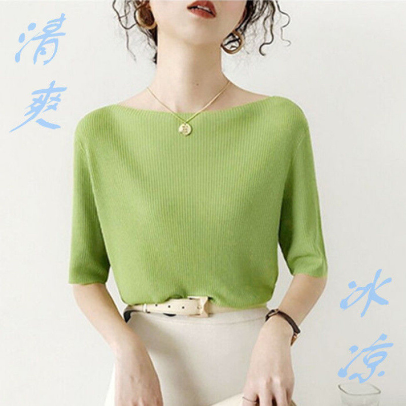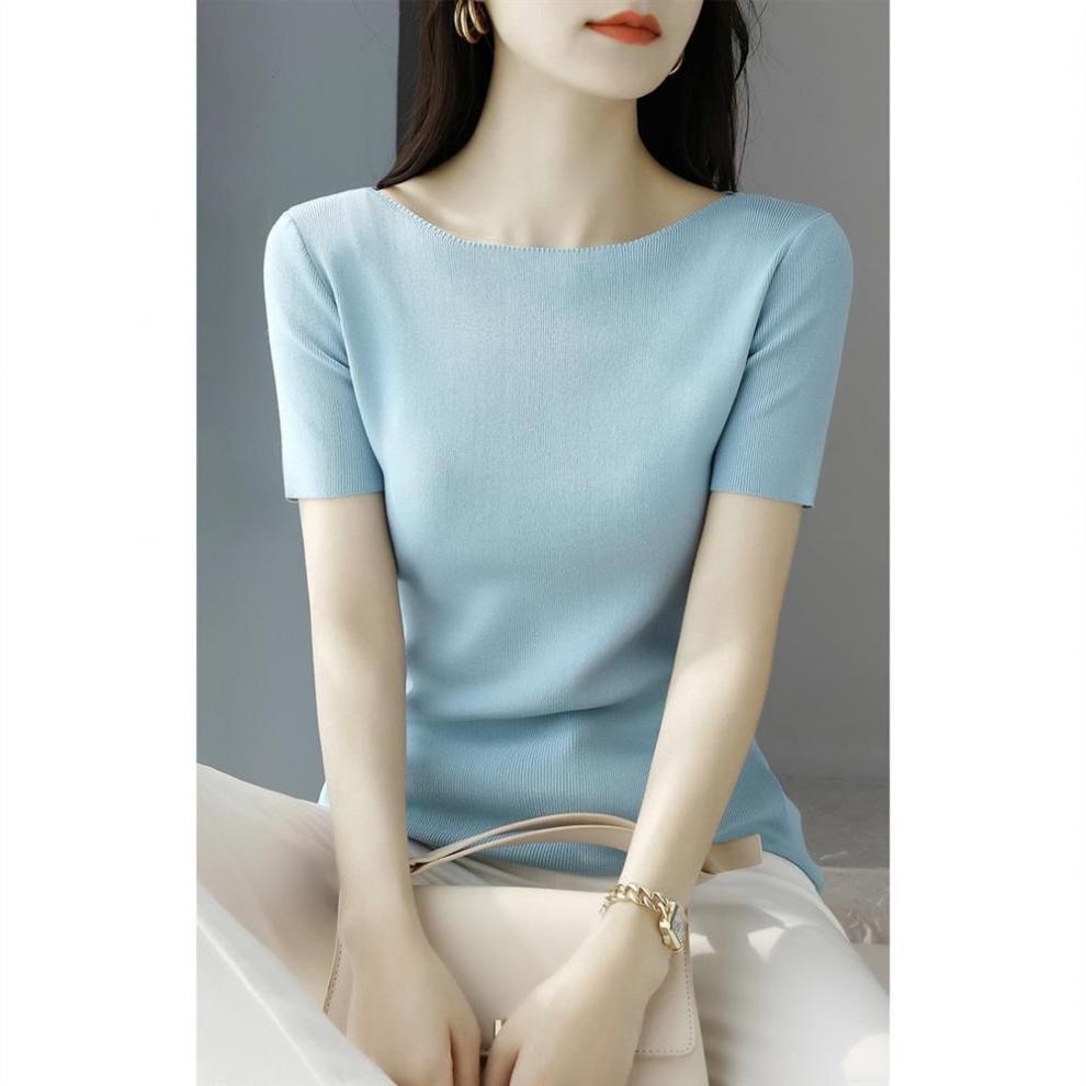 중간 소매 여름 아이스 실크 셔츠 여성용 서양식 벨리 커버 칼라 탑 하이 엔드 컬러 느슨한 반소매 섹시한 탑스토어 가기