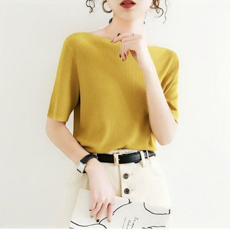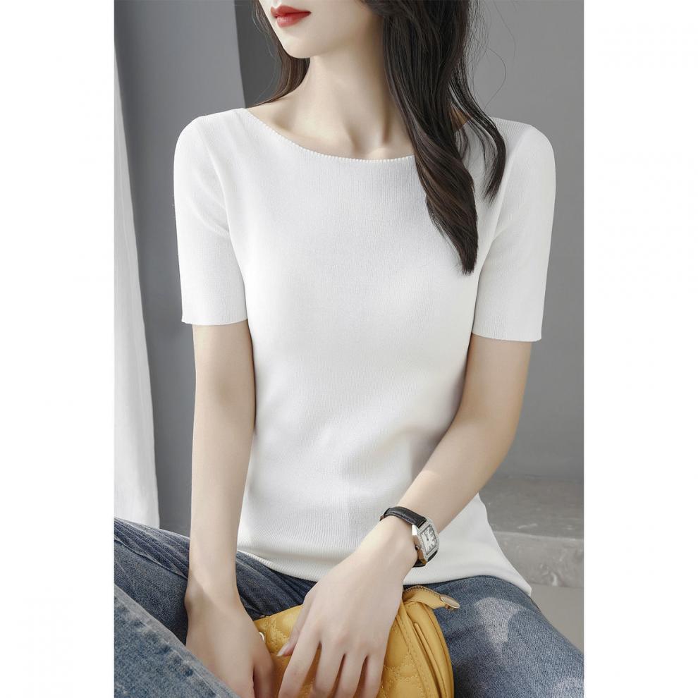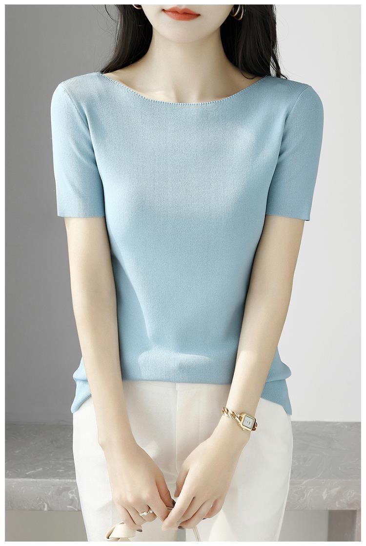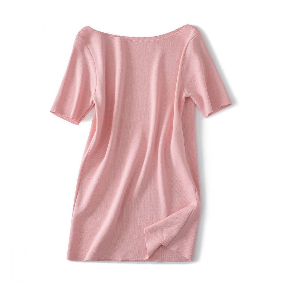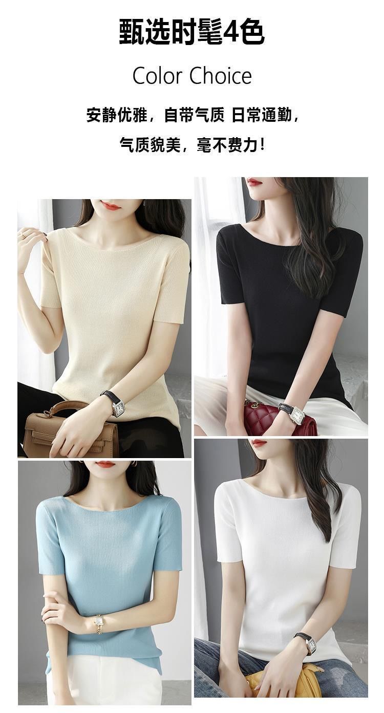 중간 소매 여름 아이스 실크 셔츠 여성용 서양식 벨리 커버 칼라 탑 하이 엔드 컬러 느슨한 반소매 섹시한 탑스토어 가기
