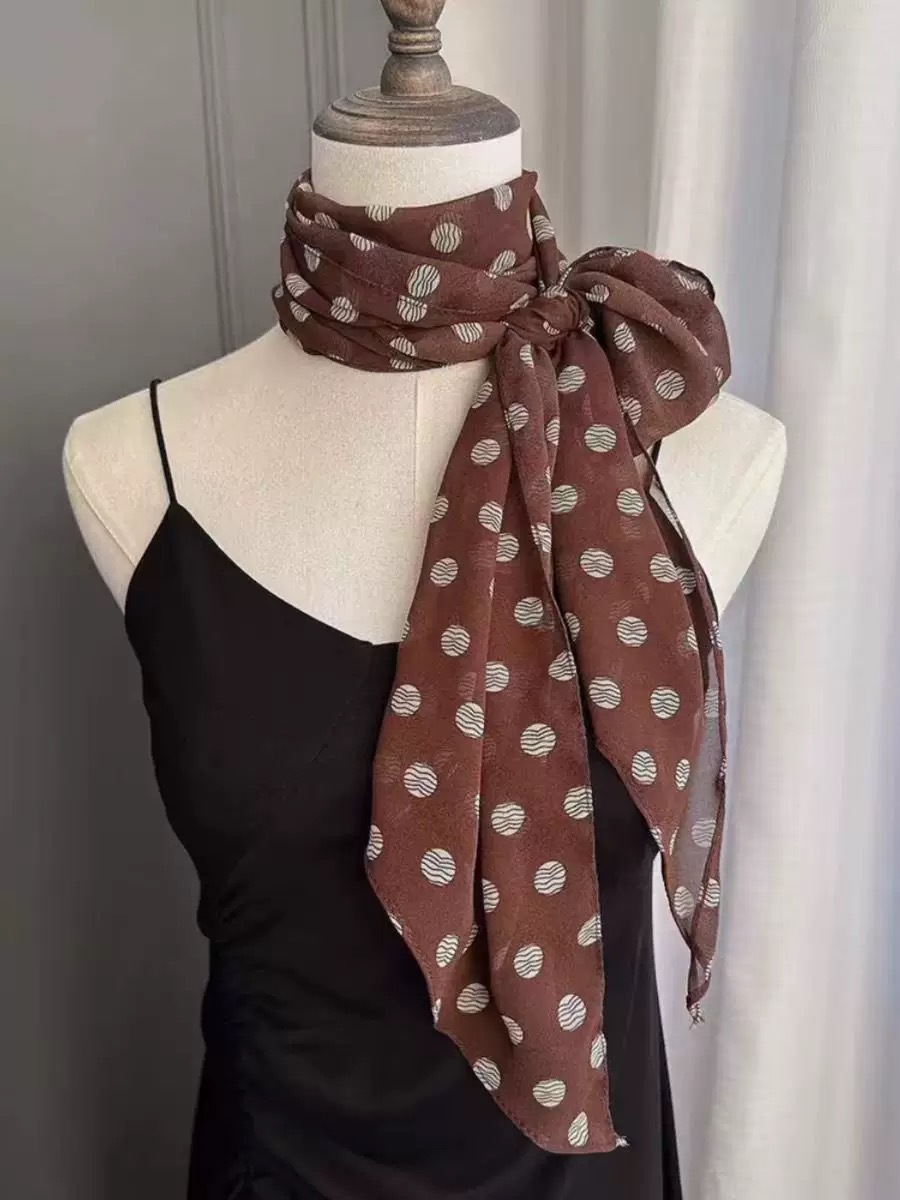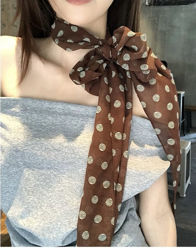 프렌치 레트로 다크 브라운 롱 폴카 도트 스카프 여성용 라이트 럭셔리 하이 엔드 올 매치 넥 얇은 스카프 리본