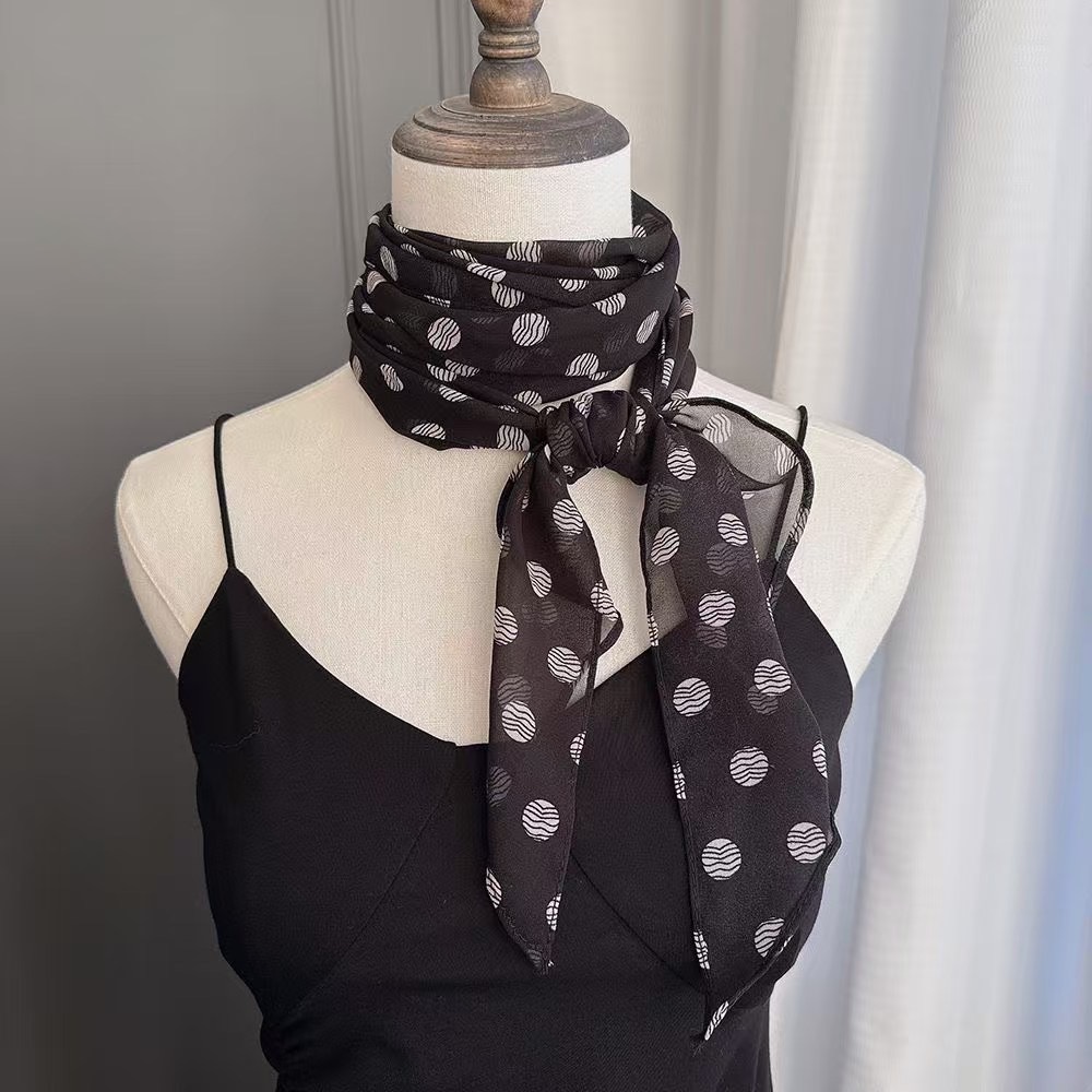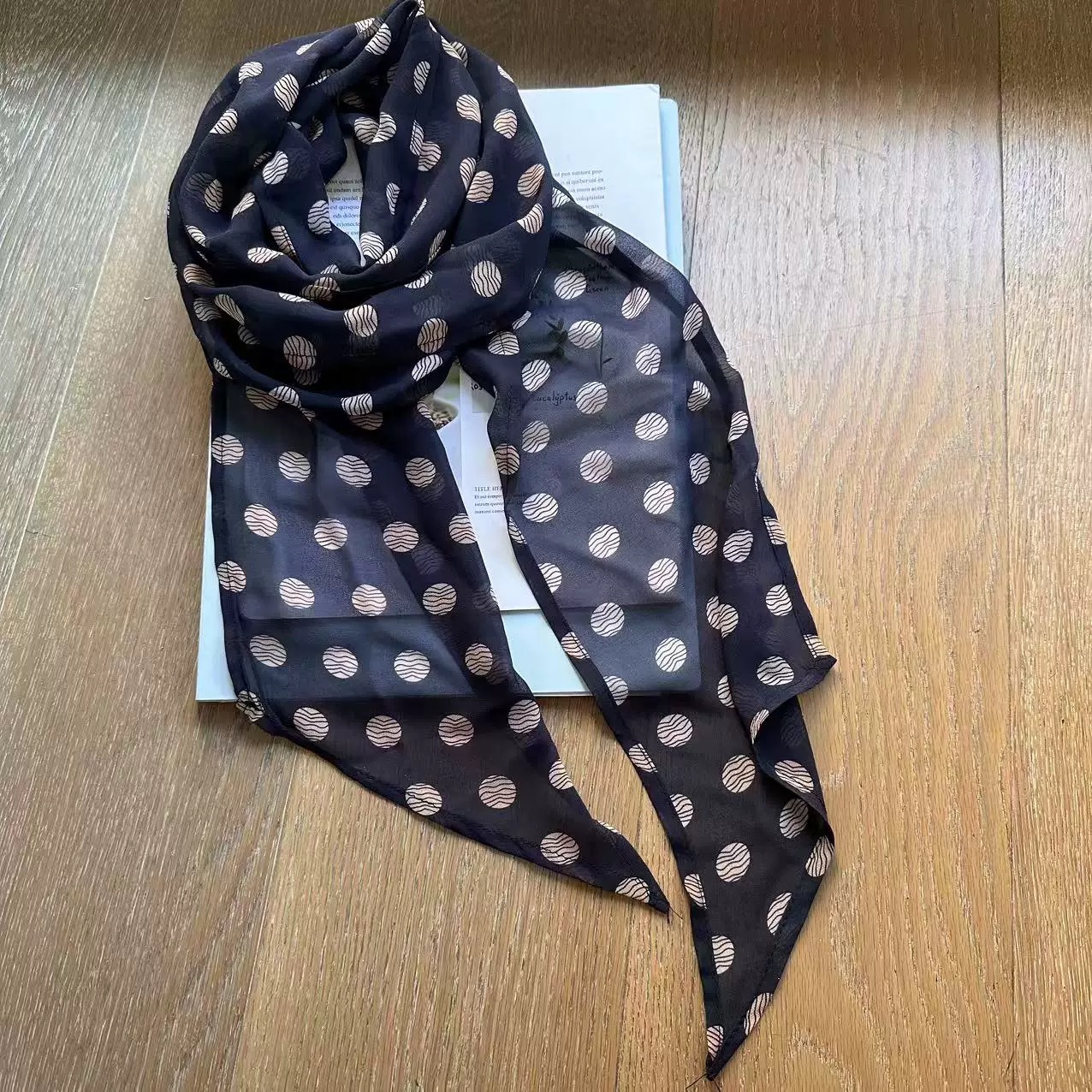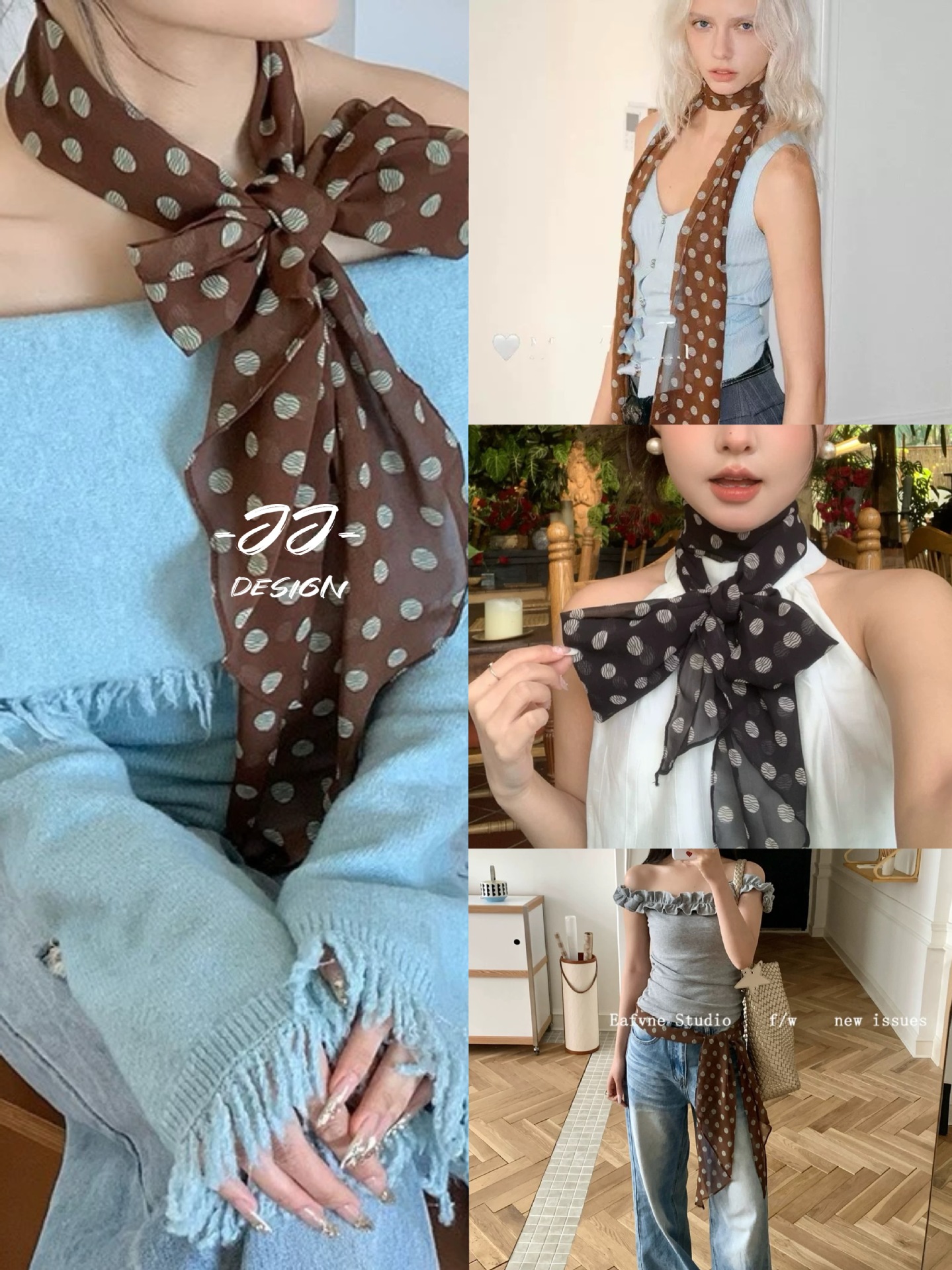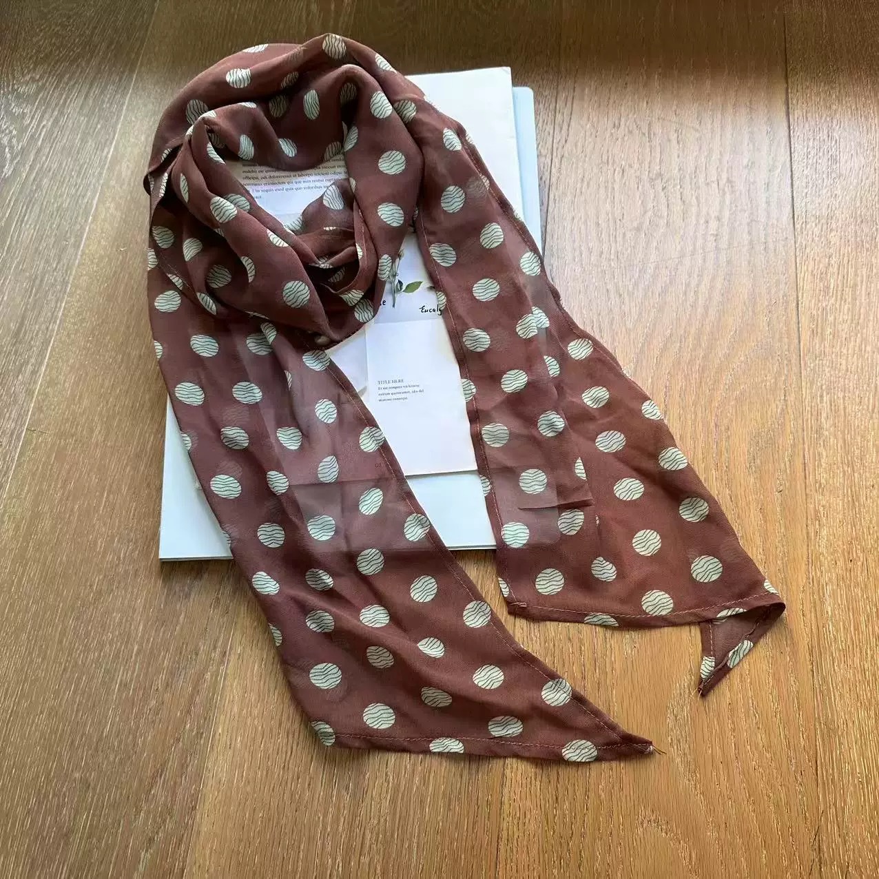 프렌치 레트로 다크 브라운 롱 폴카 도트 스카프 여성용 라이트 럭셔리 하이 엔드 올 매치 넥 얇은 스카프 리본스토어 가기