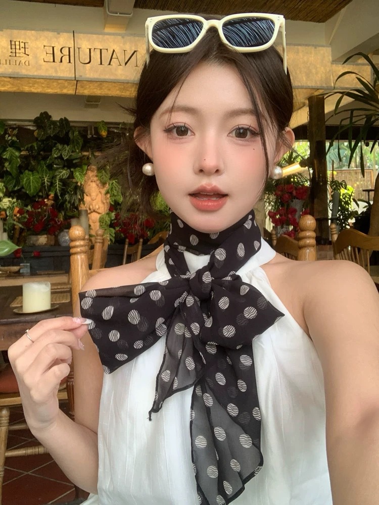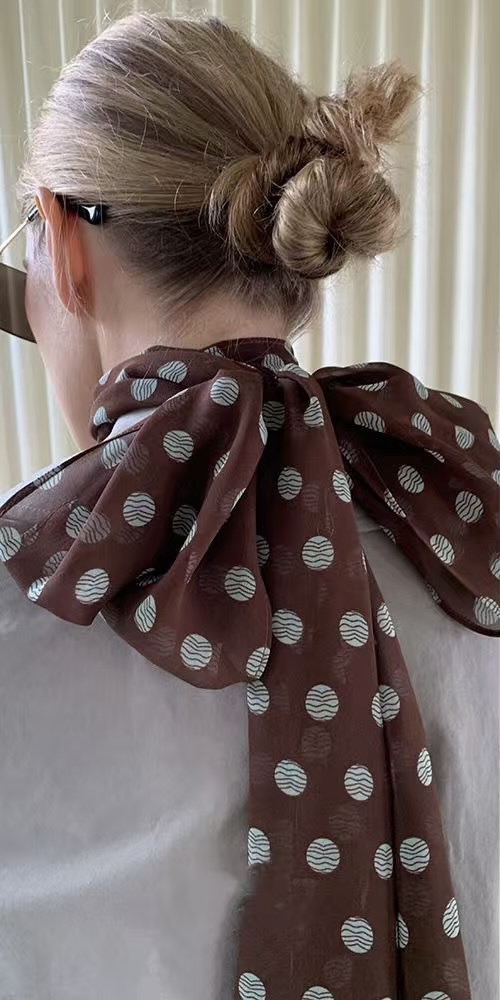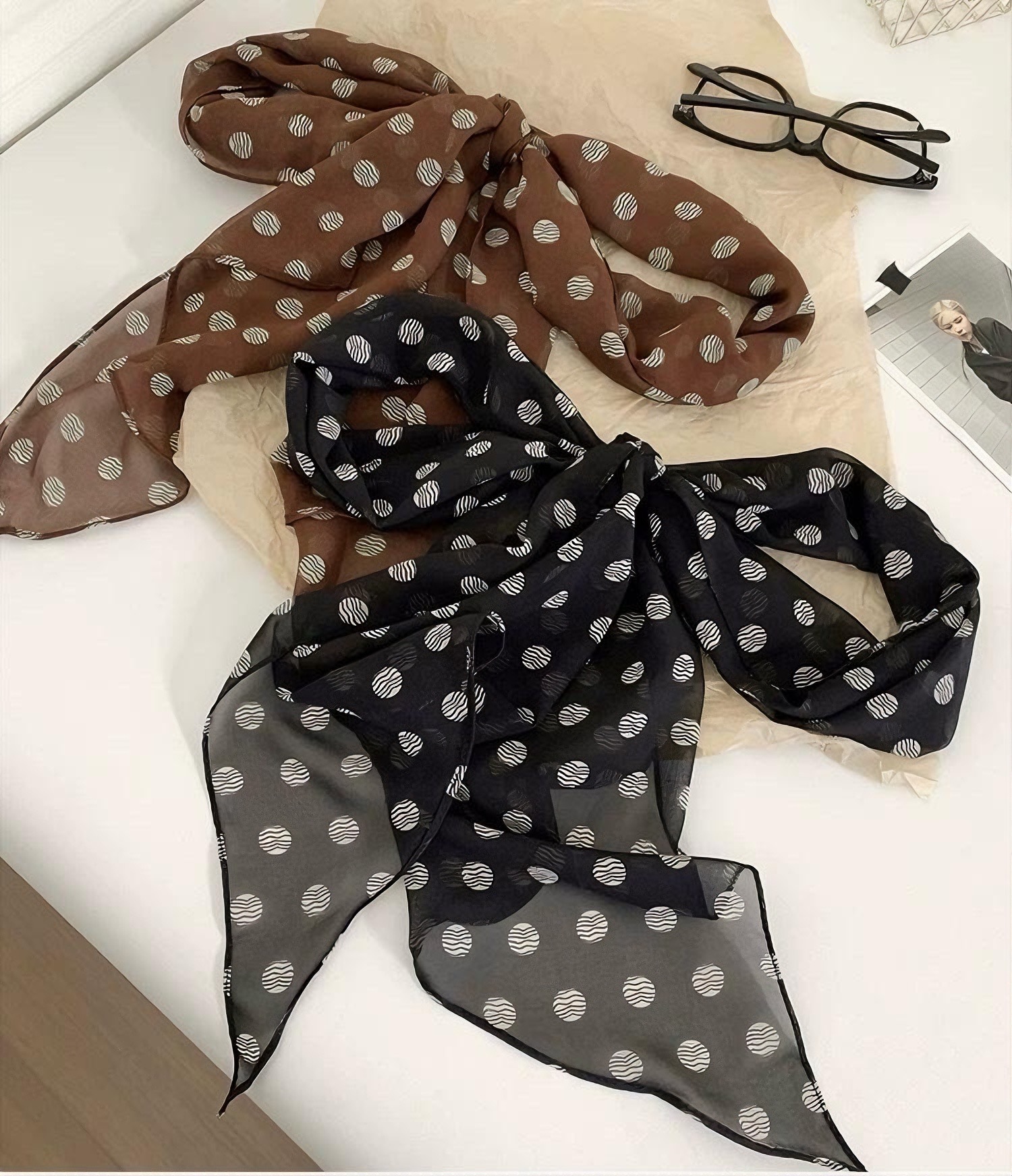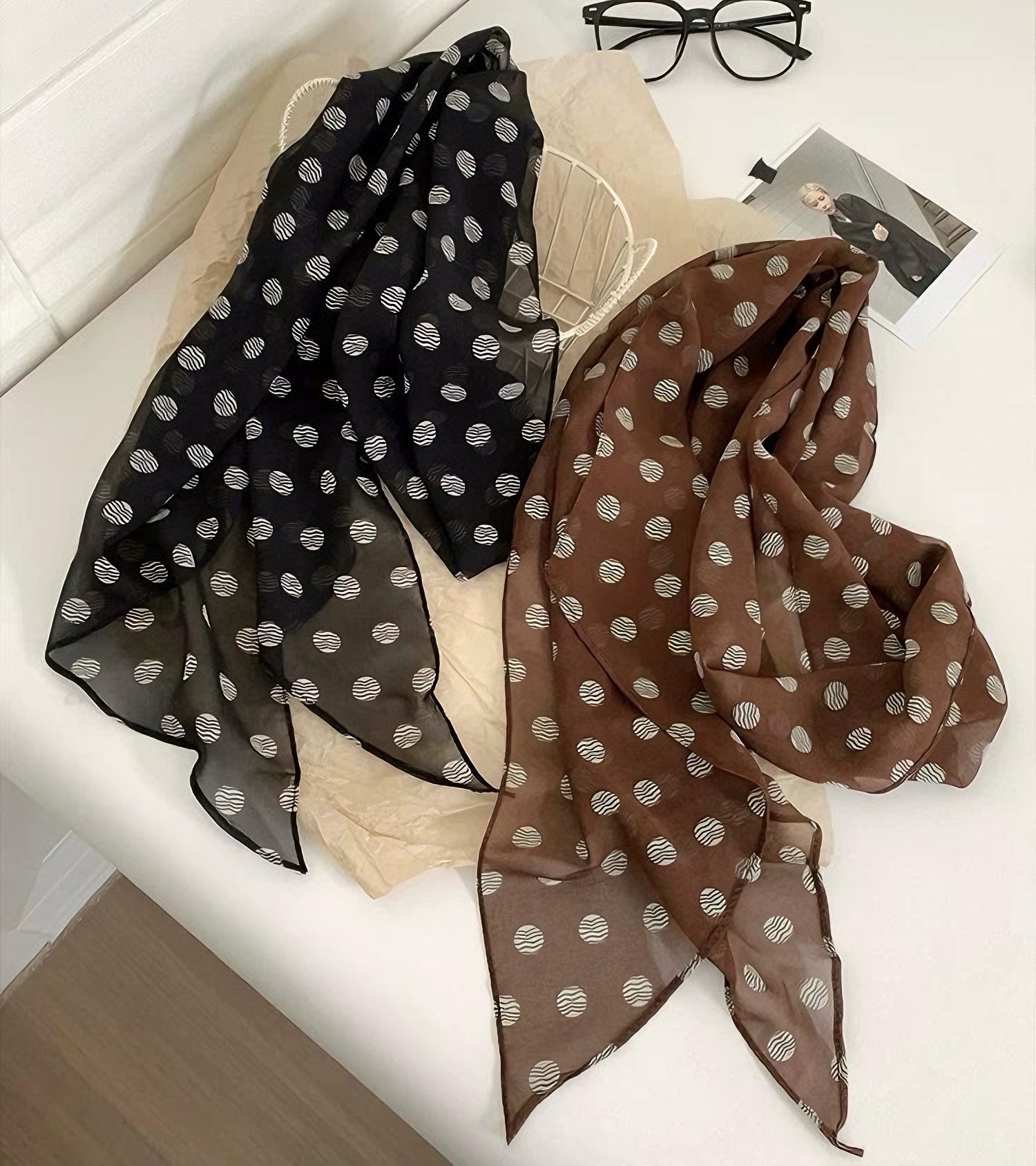 프렌치 레트로 다크 브라운 롱 폴카 도트 스카프 여성용 라이트 럭셔리 하이 엔드 올 매치 넥 얇은 스카프 리본스토어 가기