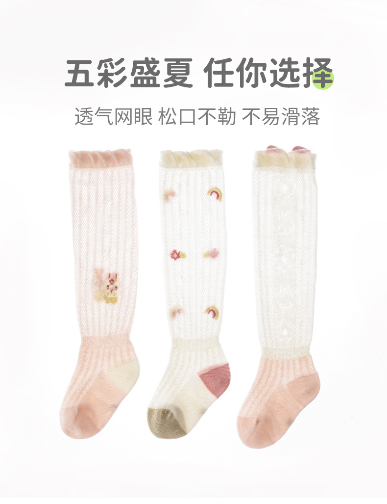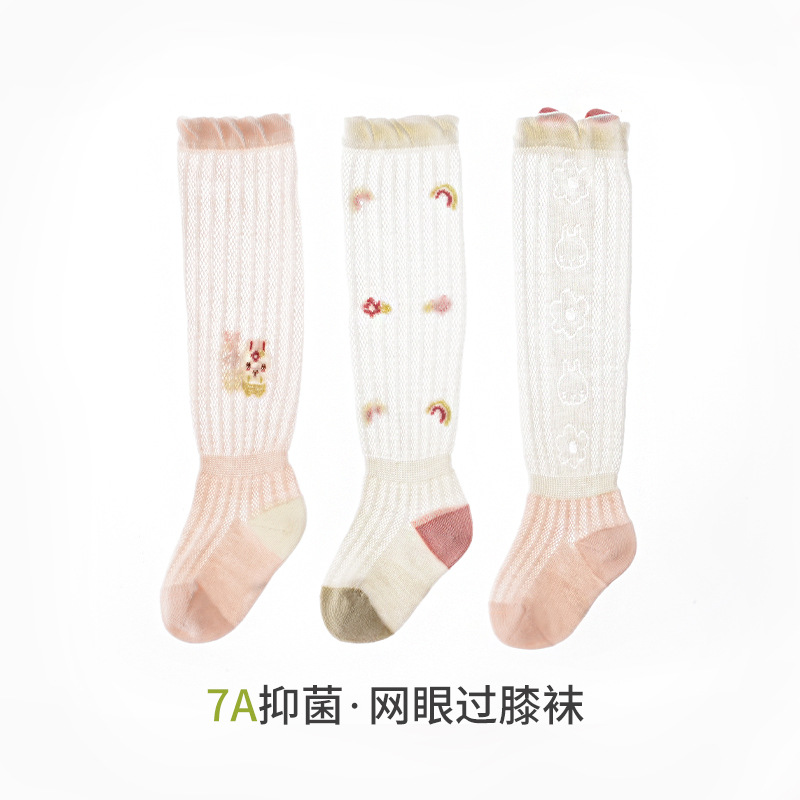 엄선된 유아용 스타킹 3켤레, 유아용 메쉬 무릎 위 모기 방지 양말, 여름용 에어컨 양말, 통기성이 좋고 편안하며 다리를 조이지 않습니다.스토어 가기
