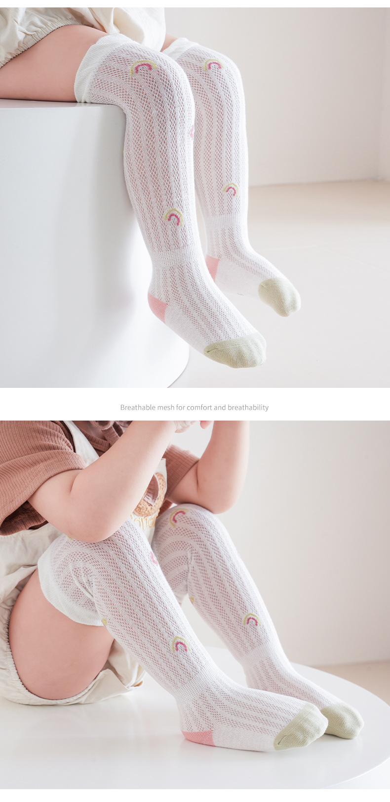 엄선된 유아용 스타킹 3켤레, 유아용 메쉬 무릎 위 모기 방지 양말, 여름용 에어컨 양말, 통기성이 좋고 편안하며 다리를 조이지 않습니다.