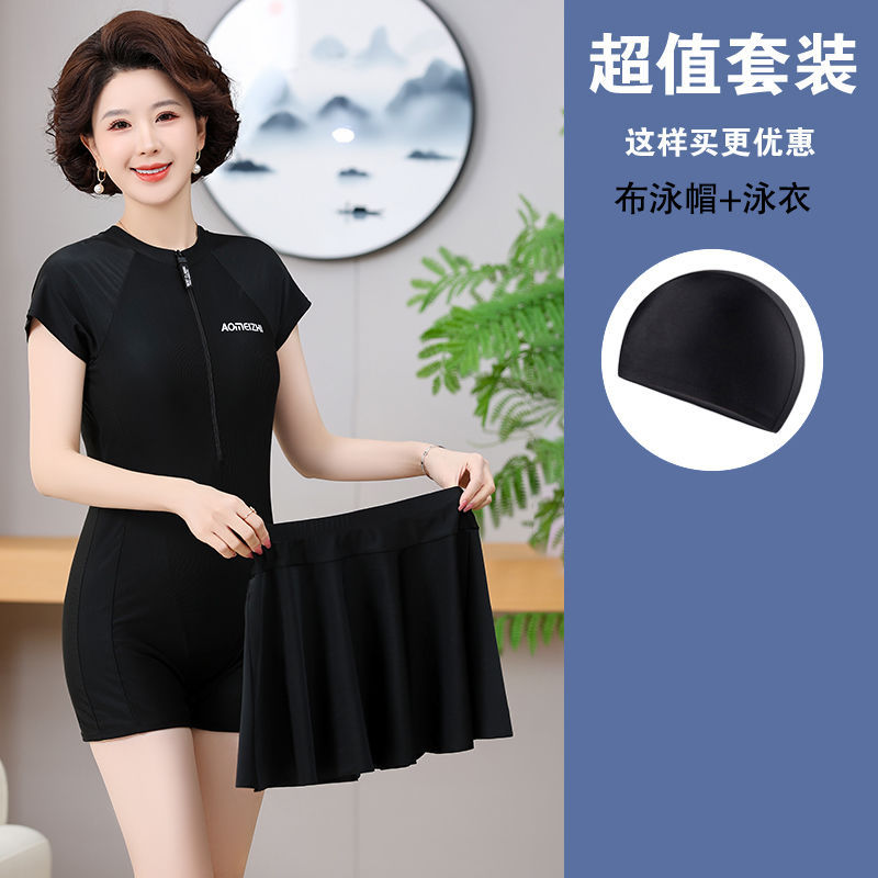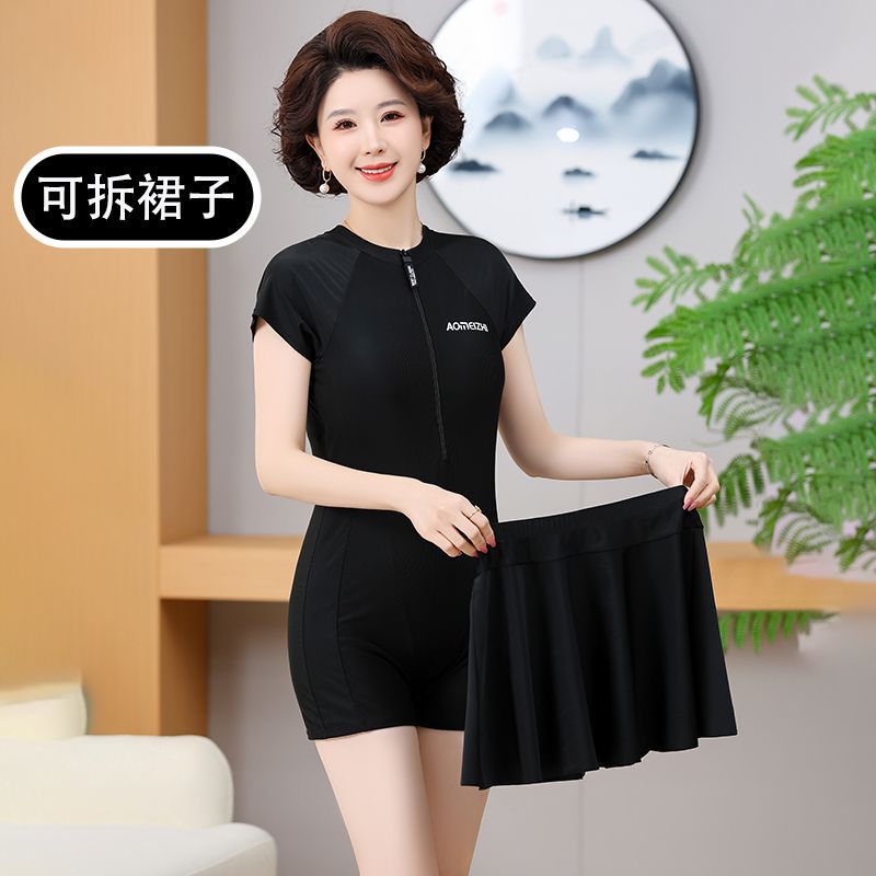 엄마 수영복 여성 보수적 인 중년 2025 년 중년 및 노인을위한 새로운 배꼽 덮개 슬리밍 플러스 사이즈 온천 빠른 건조