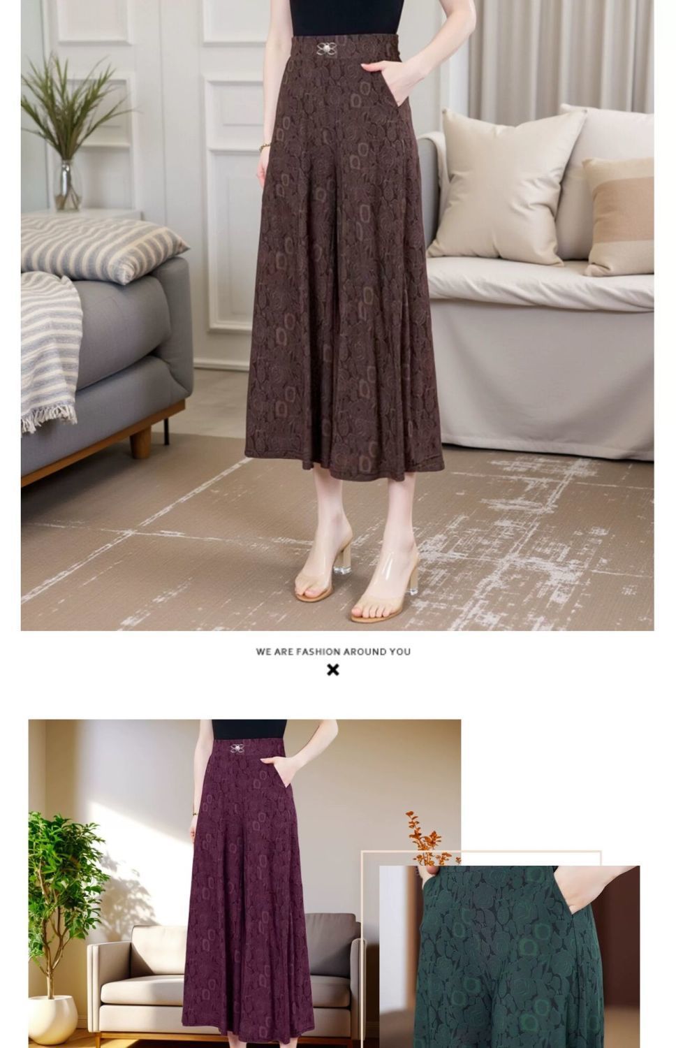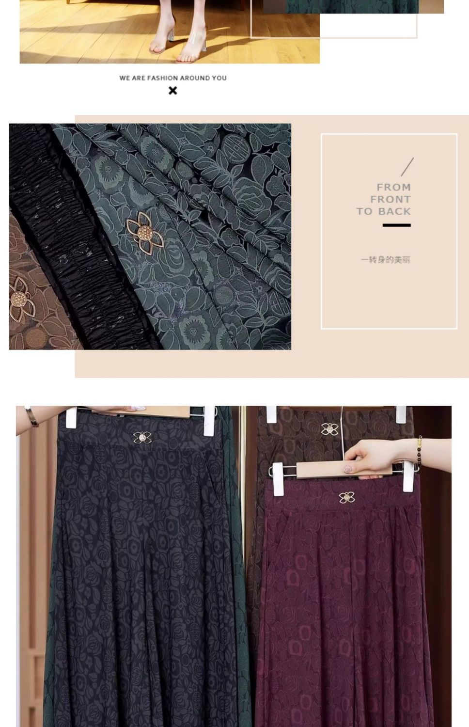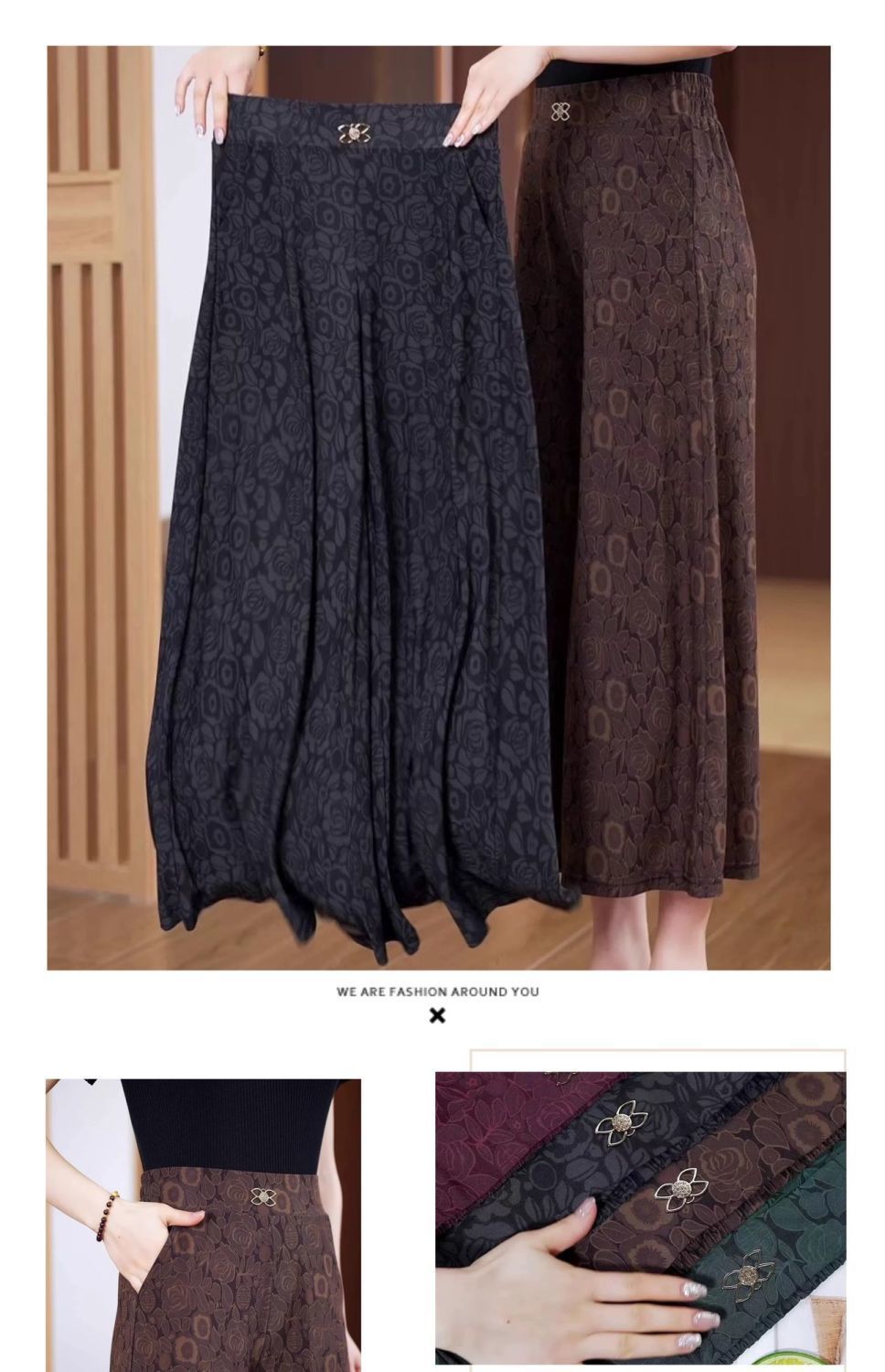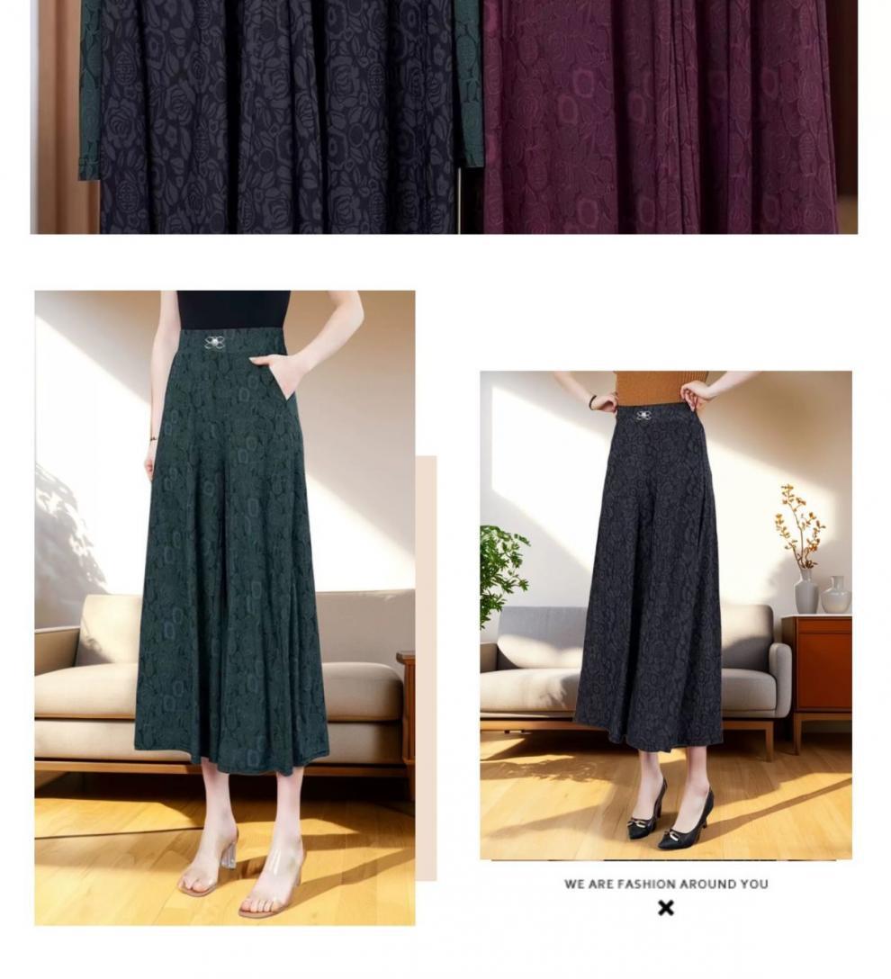 엄마의 여름 바지 얇은 국가 스타일 와이드 레그 바지 높은 허리 새 아이스 실크 데프 중년 및 노인 여성 루프 와이드 레그 바지스토어 가기