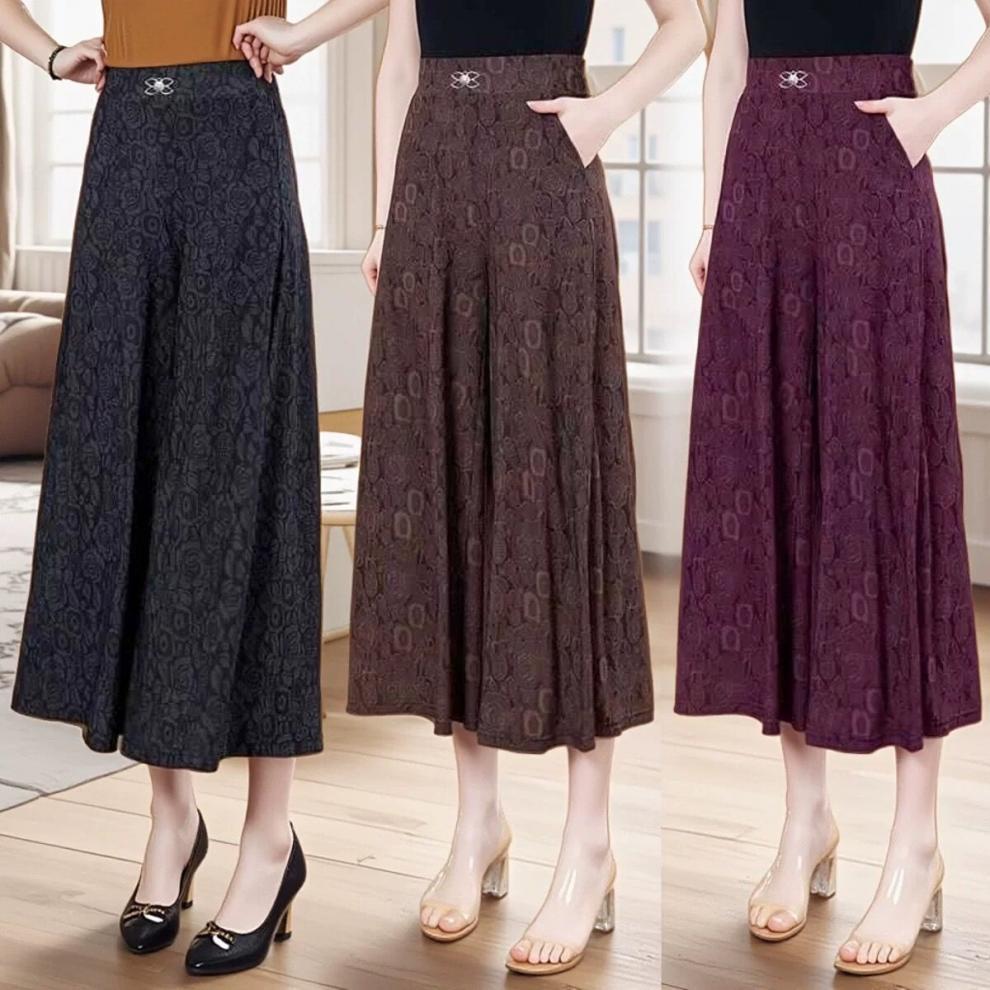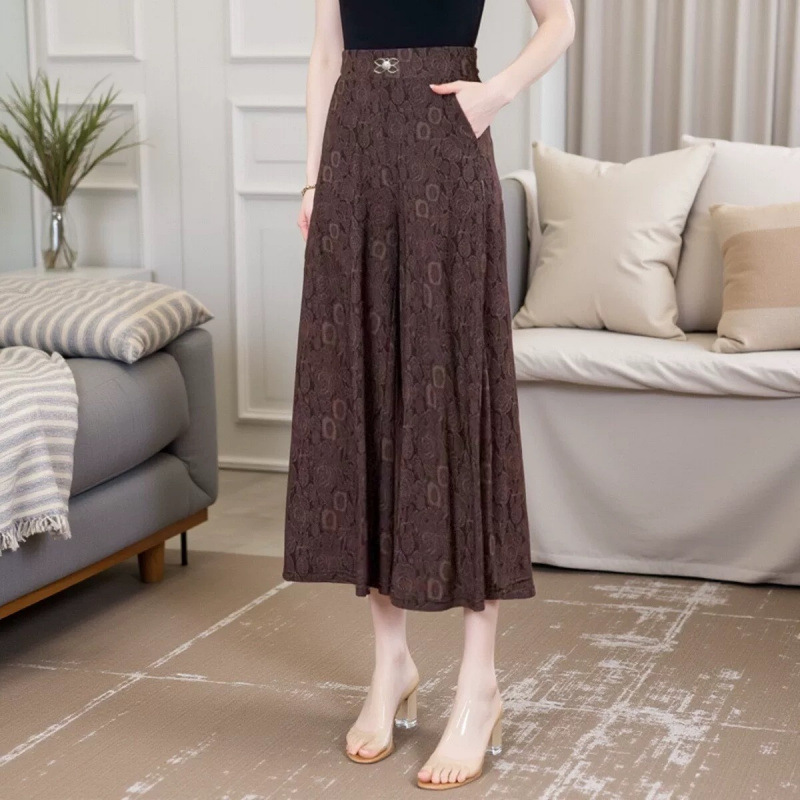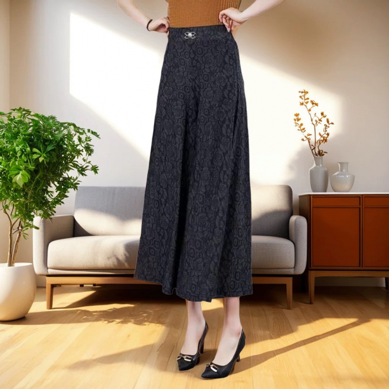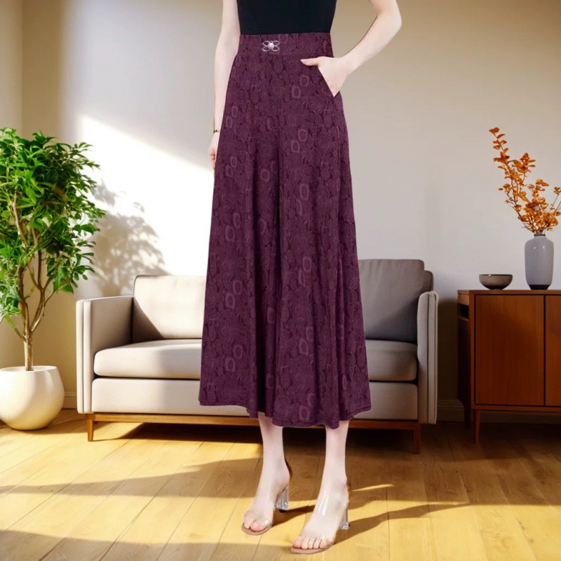 엄마의 여름 바지 얇은 국가 스타일 와이드 레그 바지 높은 허리 새 아이스 실크 데프 중년 및 노인 여성 루프 와이드 레그 바지
