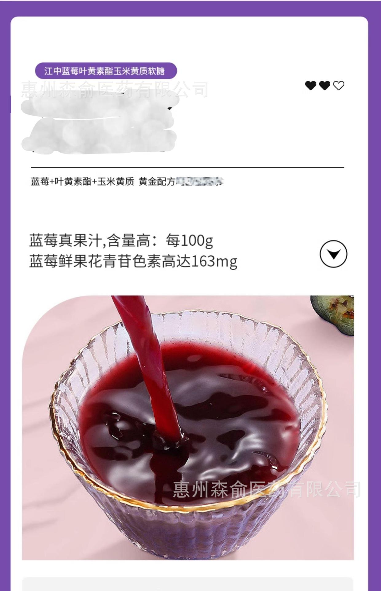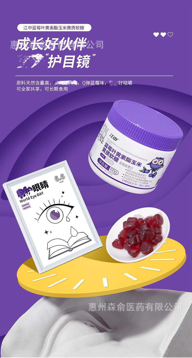 Jiangzhong Blueberry Lutein Ester Zeaxanmedium Gummy Blueberry 주스 농축액 루테인 에스터 씹는 60g