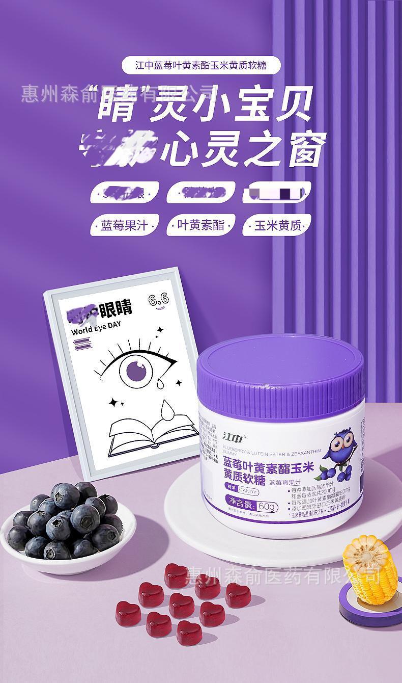 Jiangzhong Blueberry Lutein Ester Zeaxanmedium Gummy Blueberry 주스 농축액 루테인 에스터 씹는 60g스토어 가기