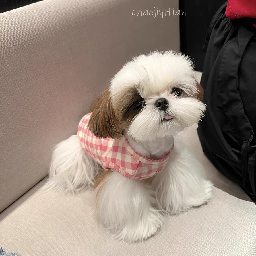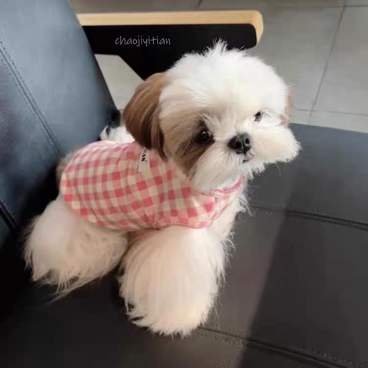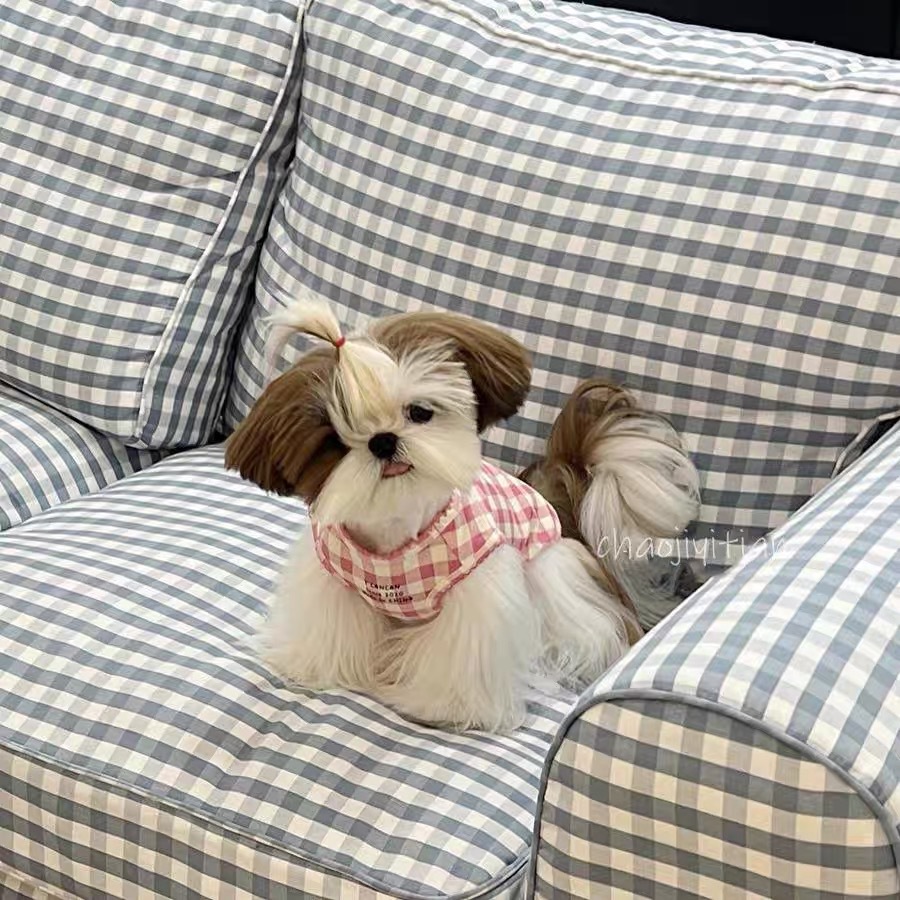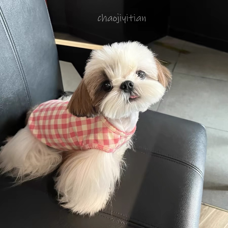 애완 동물 Schnery 고양이와 개 옷 로즈 빨간 격자 무늬 조끼 피부 친화적 인 Marzis Sissy Dog Yorkshire Bears스토어 가기