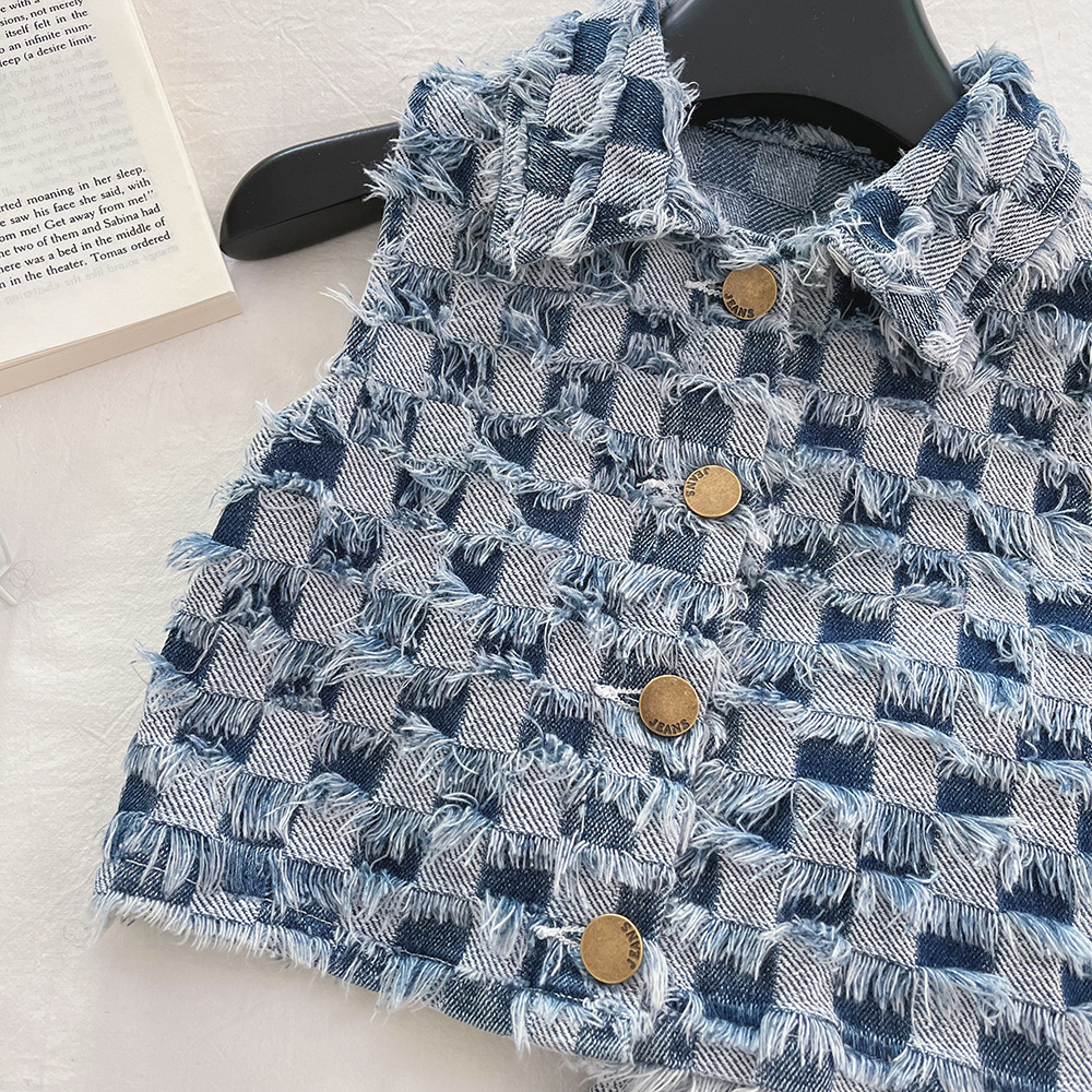 어린이 데님 세트 치마 새 여름 소녀 모피 가장자리 체코판 데님 조끼 스커트 옷깃 투피스 세트