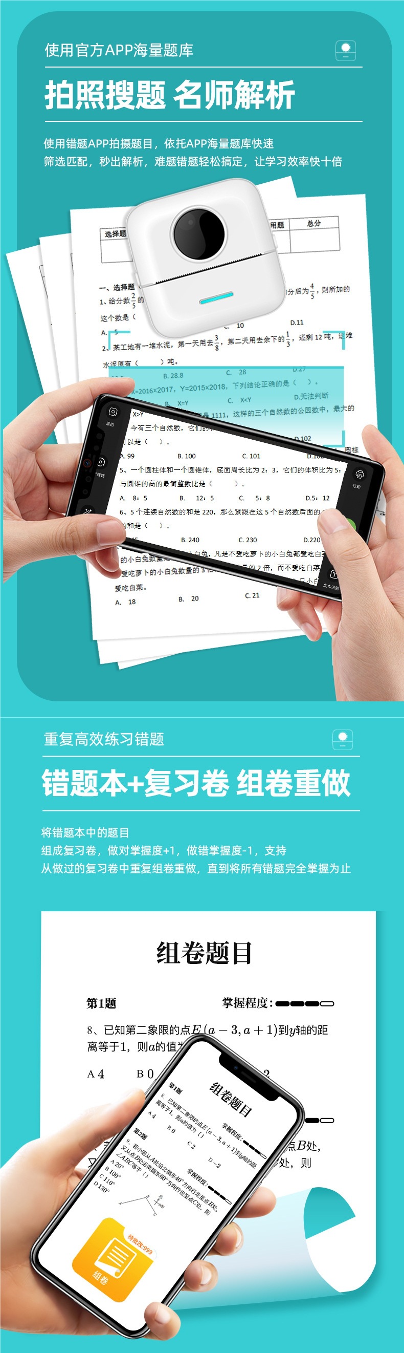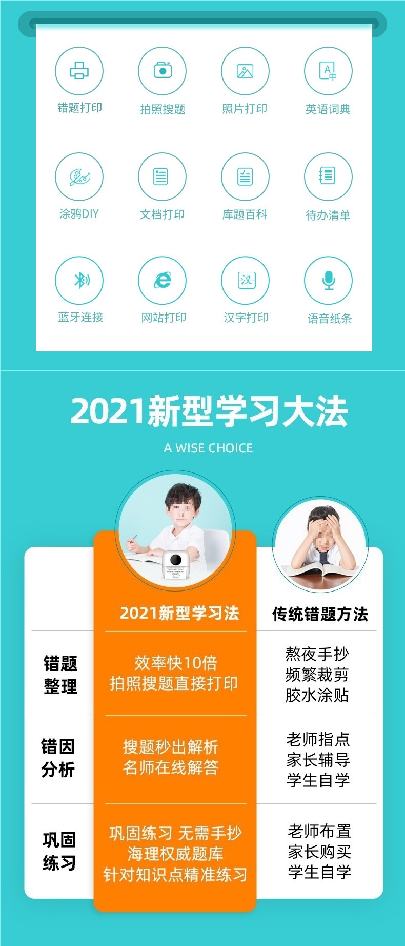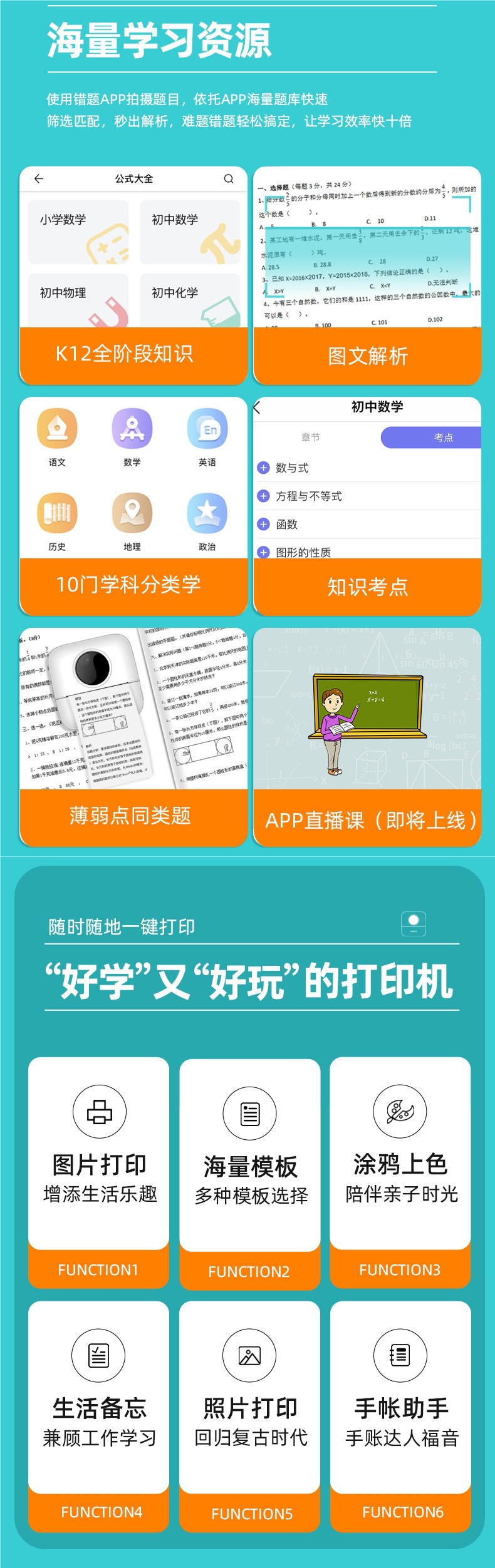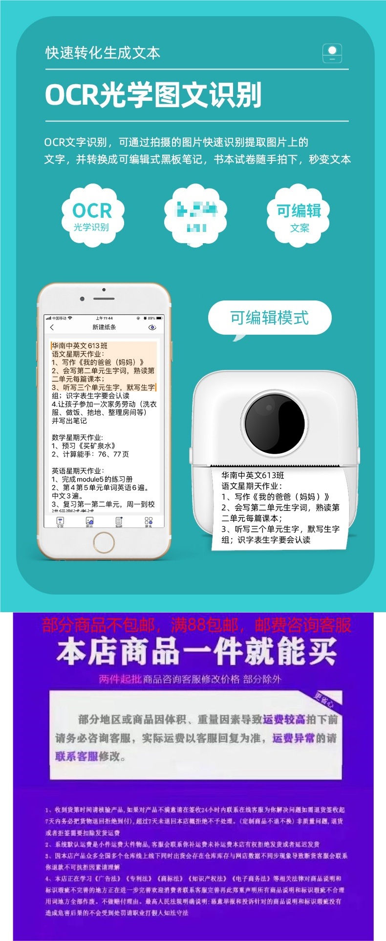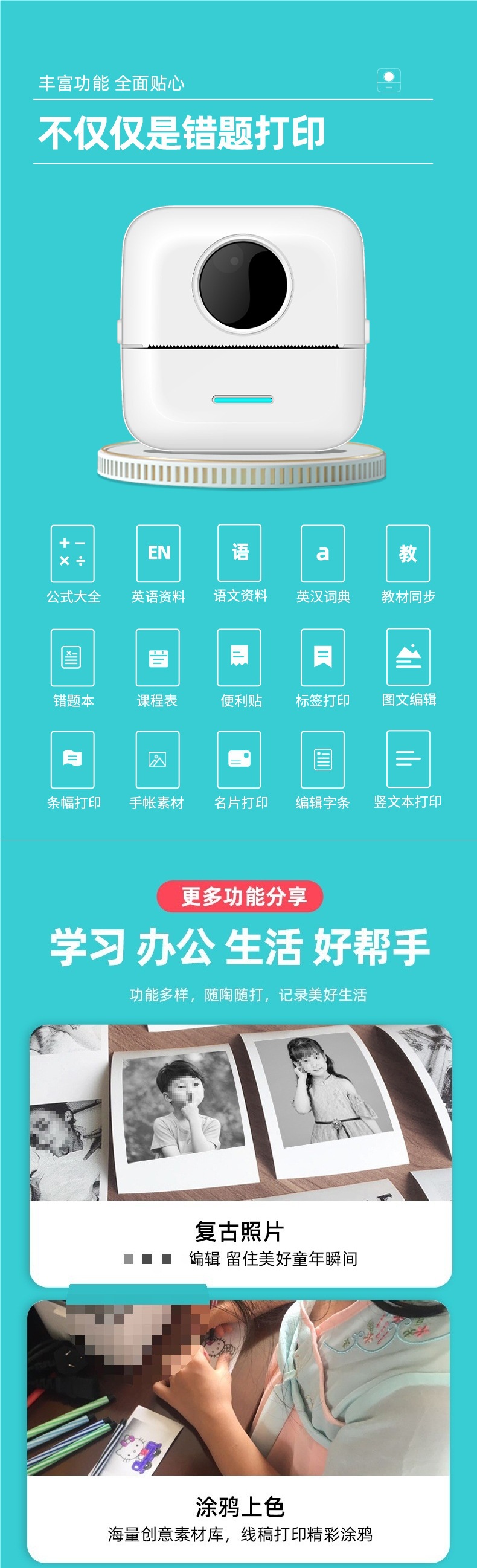 학생 미니 오류 문제 프린터 소형 홈 포켓 휴대용 열 감지 고양이 사진 정리 잉크 없음스토어 가기