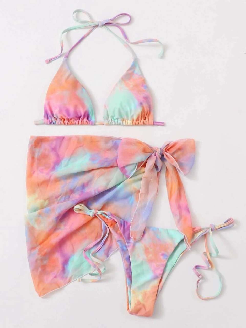 새로운 수영복 비키니 넥타이-염색 3 피스 세트 화려한 쉬폰 패션 섹시한 3 피스 세트 크로스-보더 스페셜 수영복 여성스토어 가기