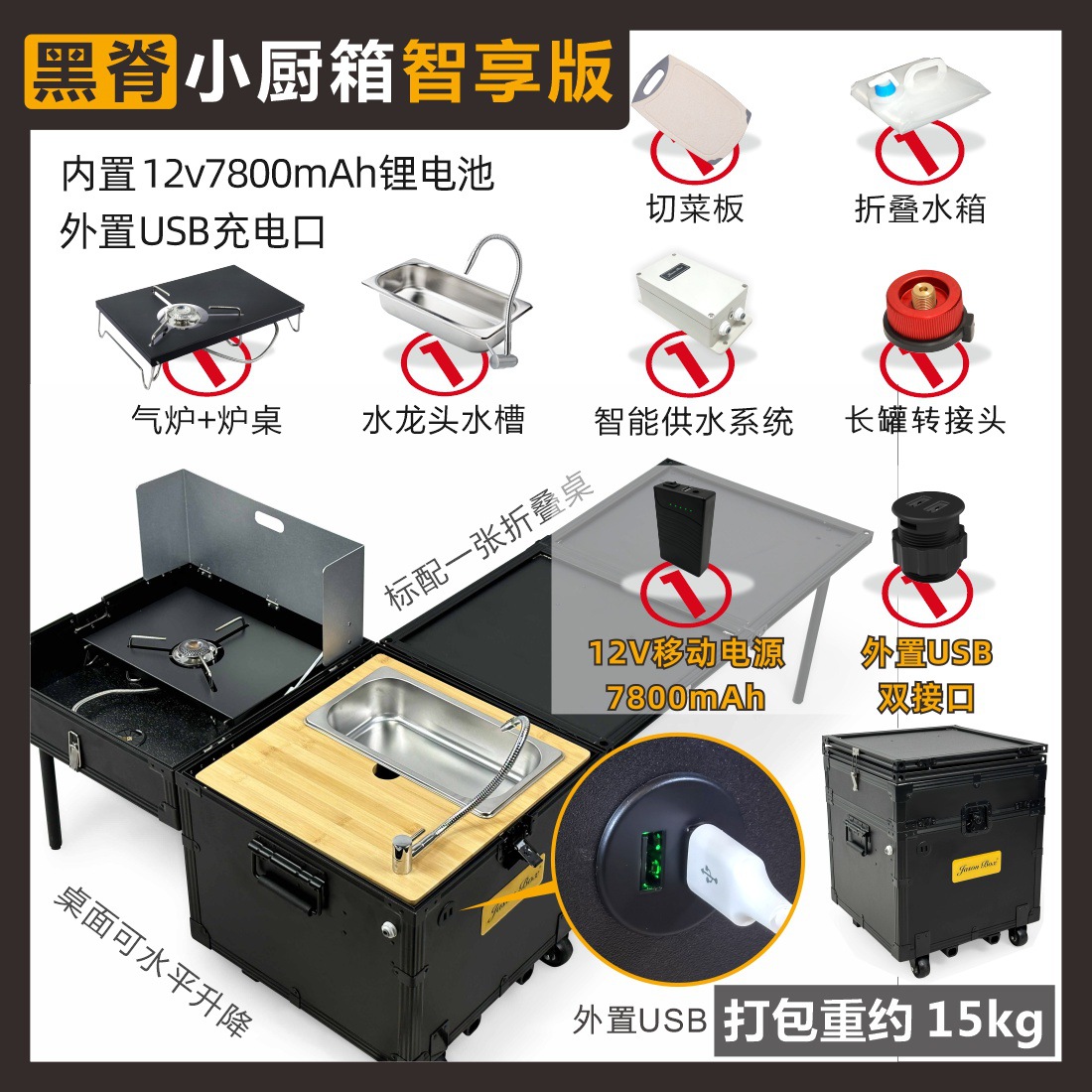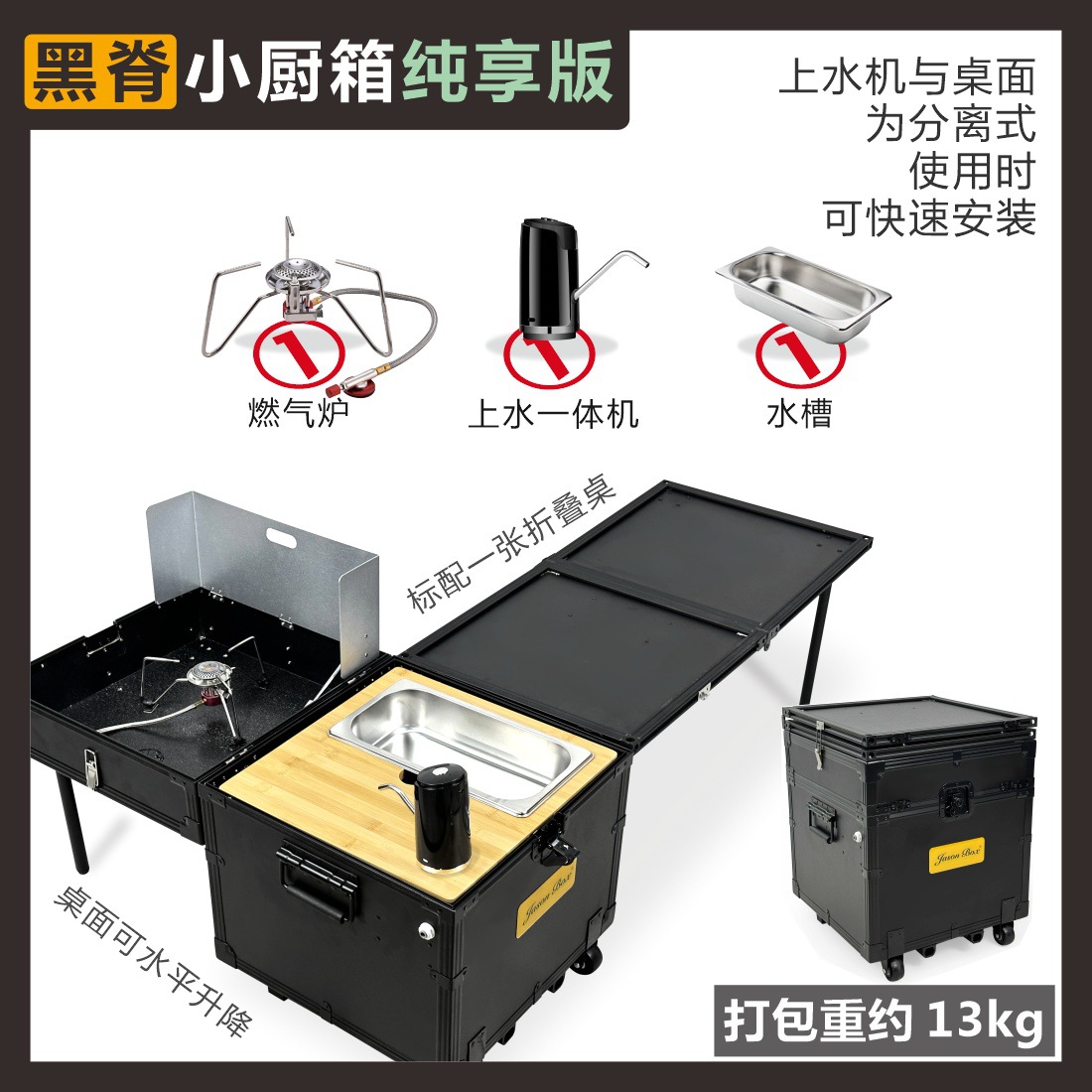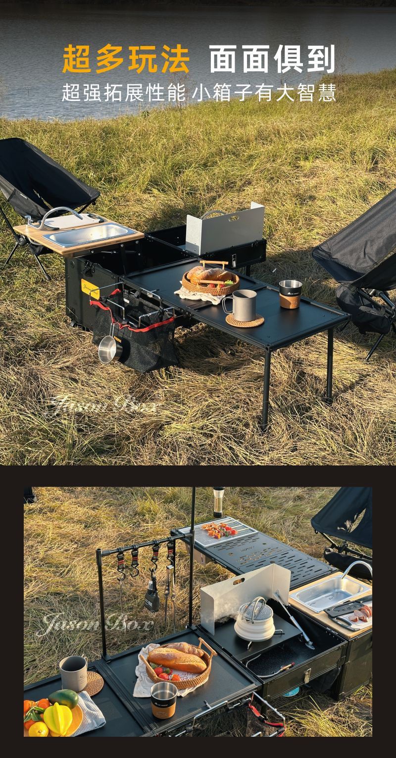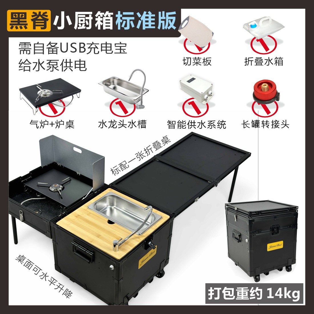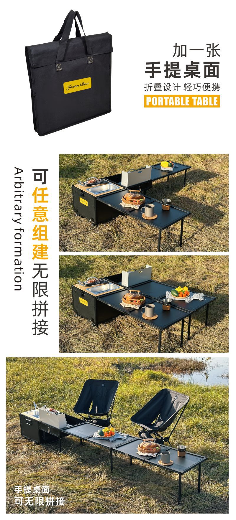 Jensen 야외 모바일 주방 차량 장착 다기능 소형 주방 상자 야영 야생 밥솥 스토브 바베큐 접이식 테이블 휴대용 바퀴스토어 가기