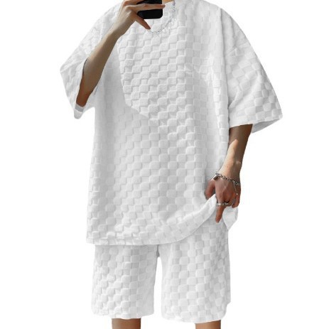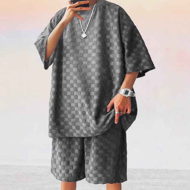 2025 유럽과 미국의 국경 간 트렌디 브랜드 남성 체스 판 봄과 여름 느슨한 스포츠 레저 투피스 세트 남성 대외 무역 도매