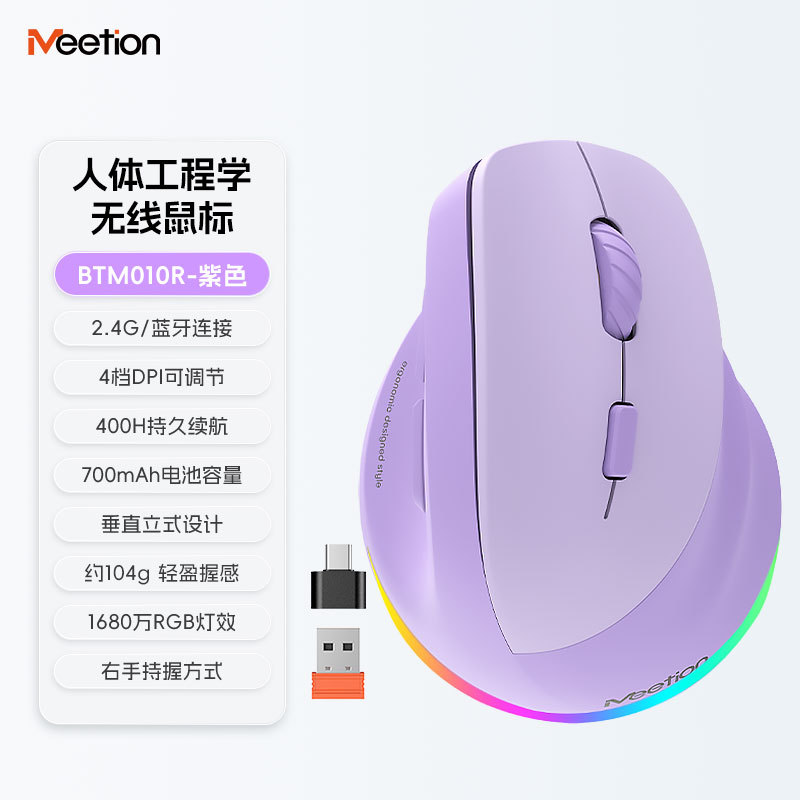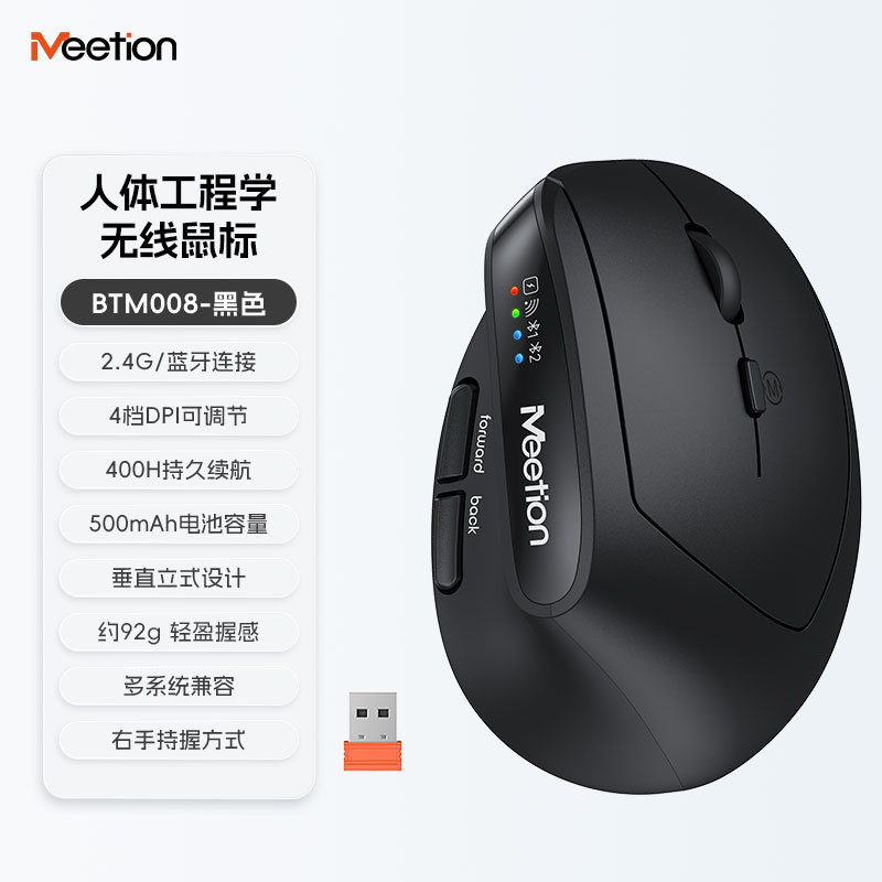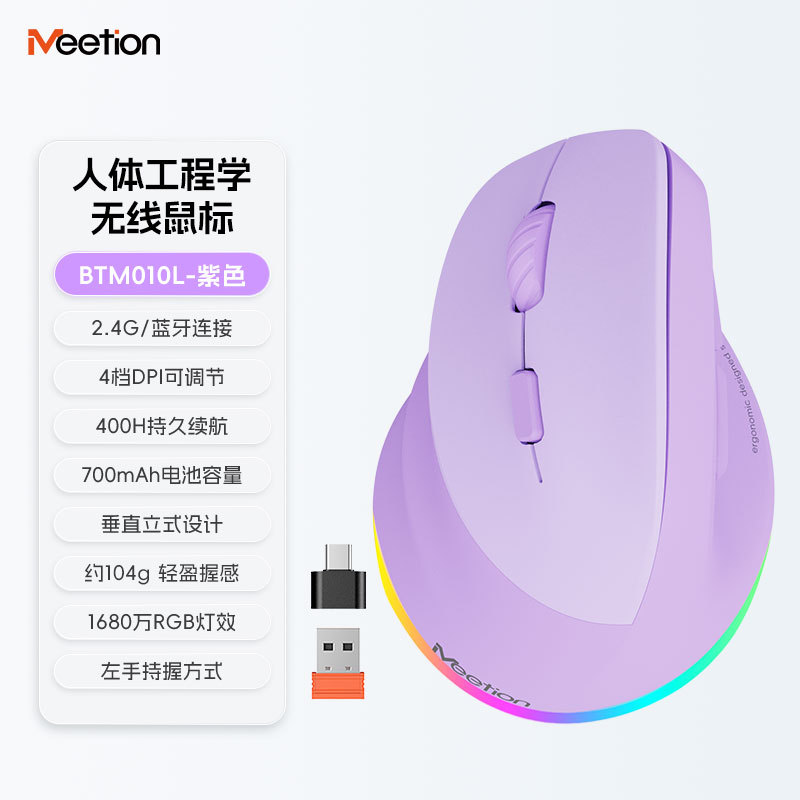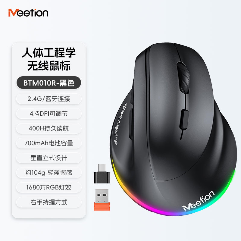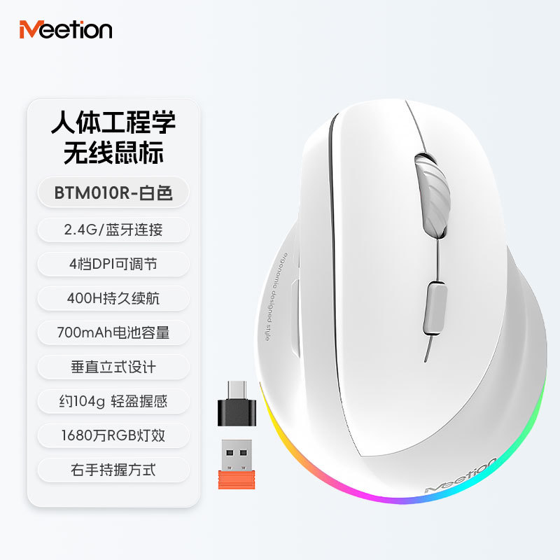 MEETION Mi Shen 인체 공학적 수직 마우스 무선 듀얼 모드 충전 노트북 사무실 마우스 왼쪽 및 오른손스토어 가기